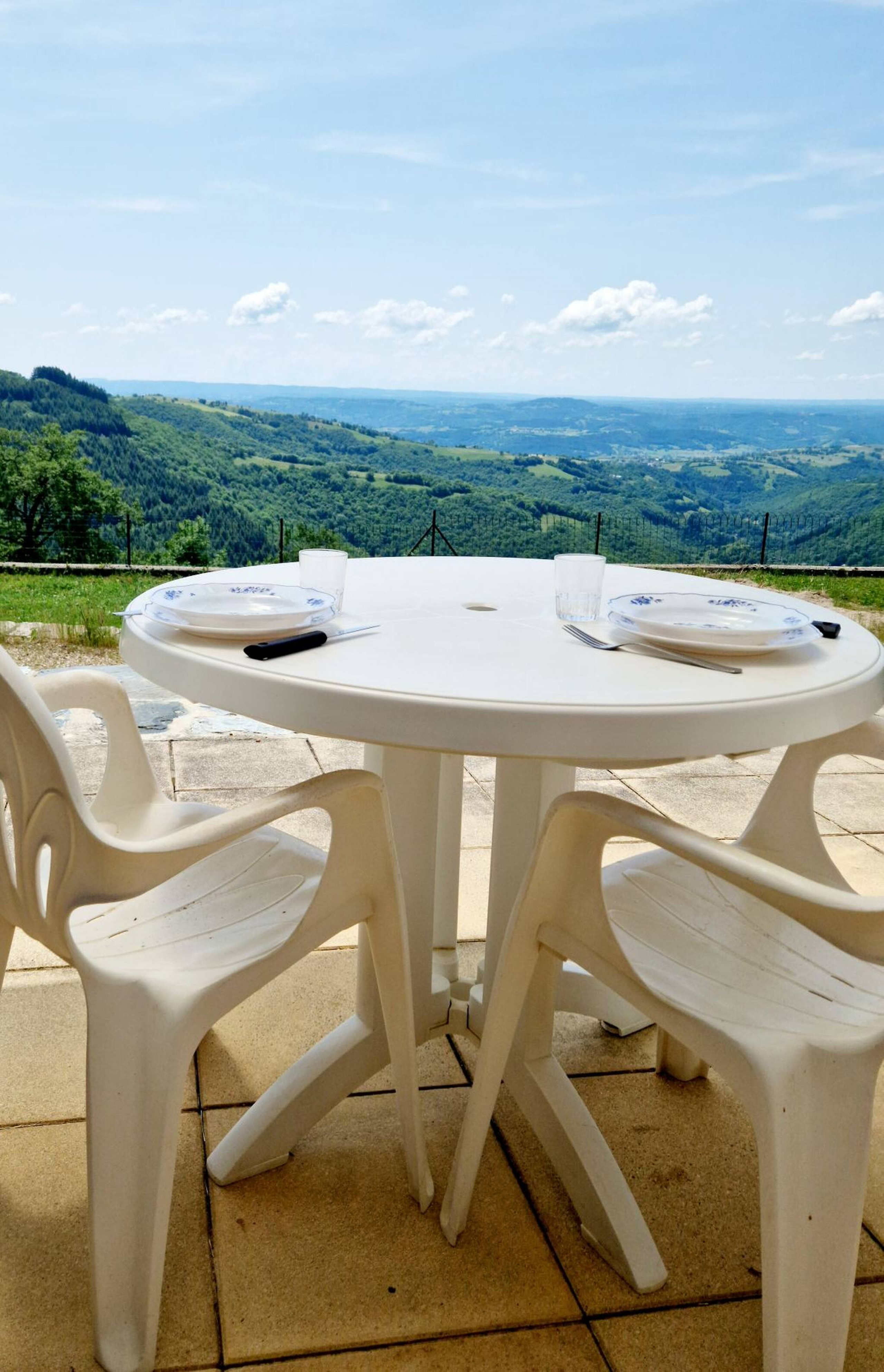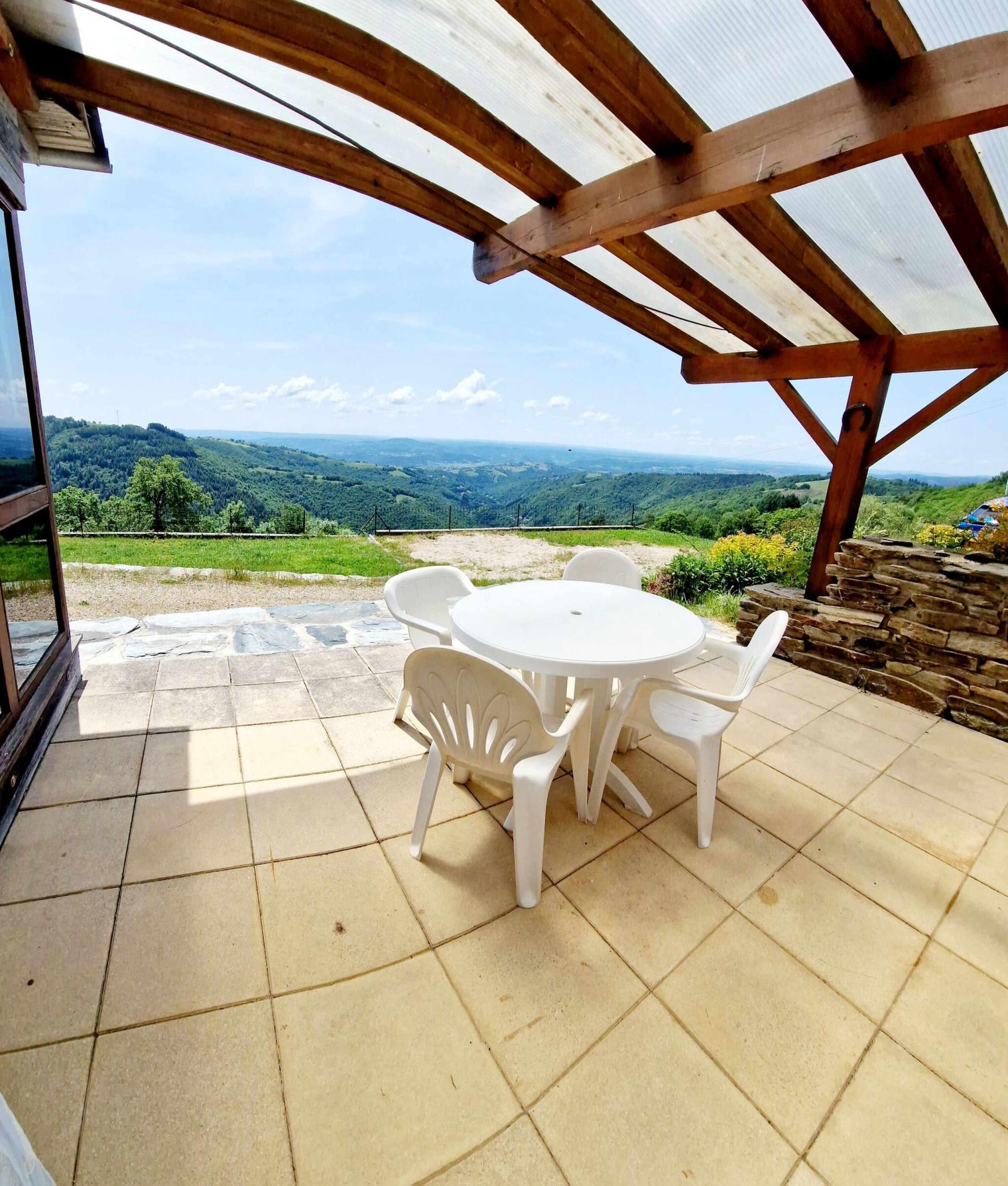 Terrasse privée avec mobilier de jardin pour se détendre face au paysage