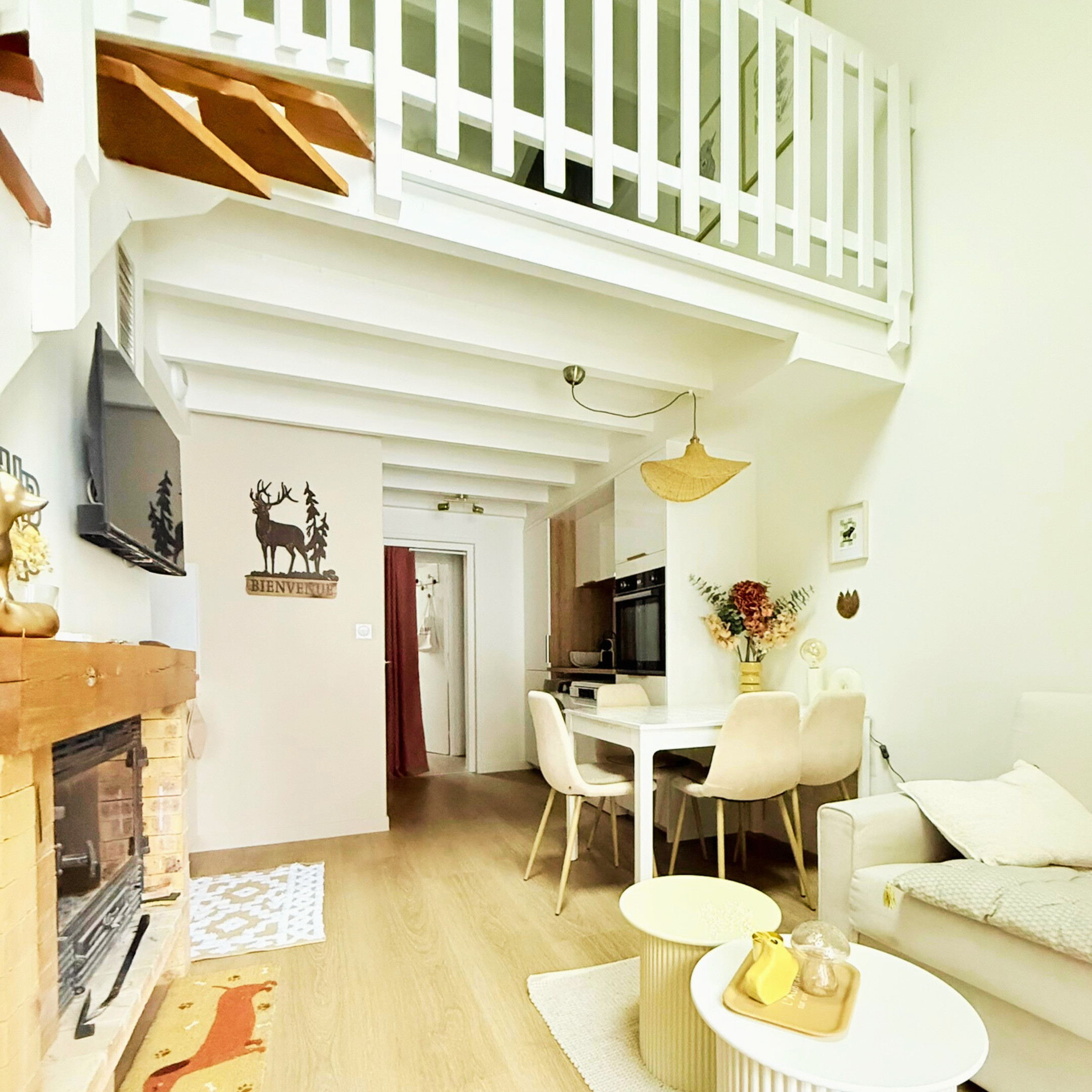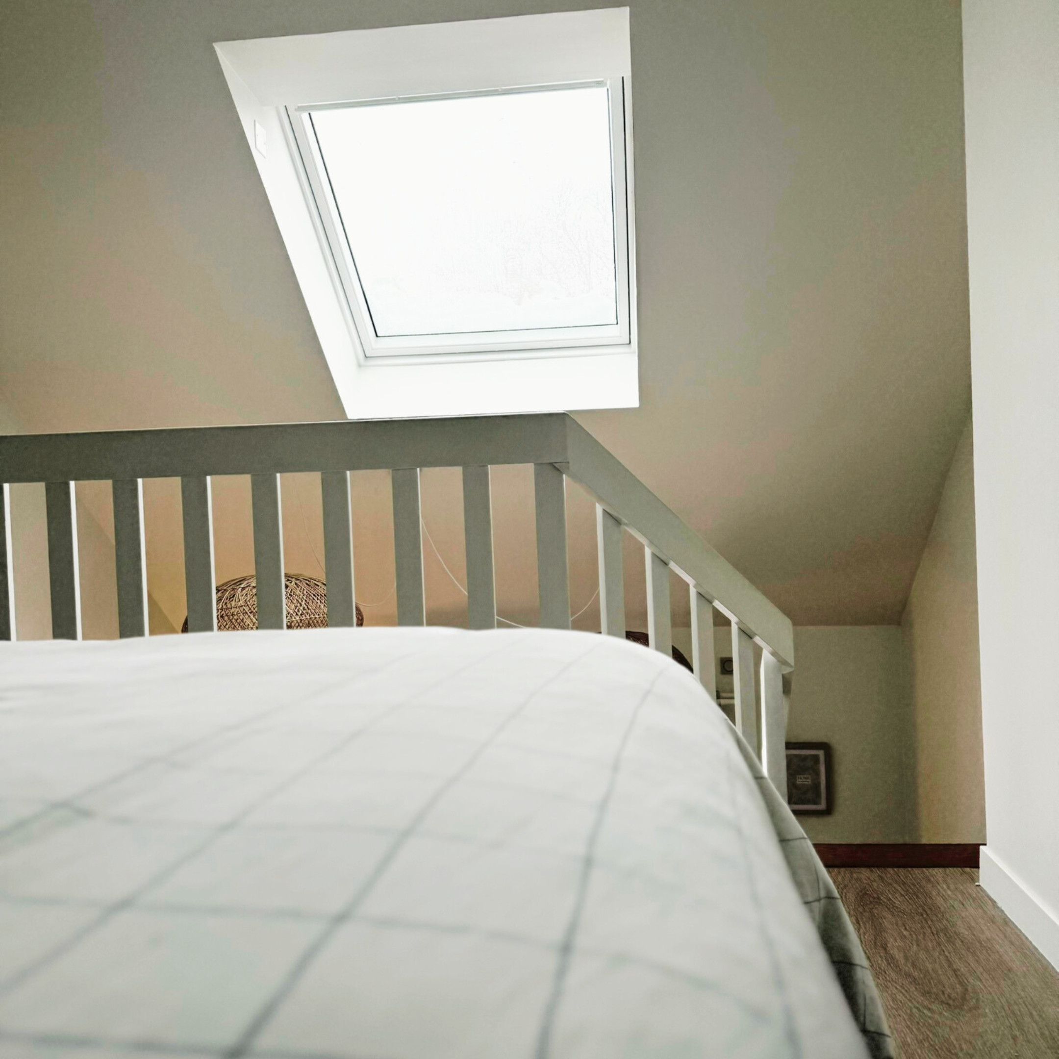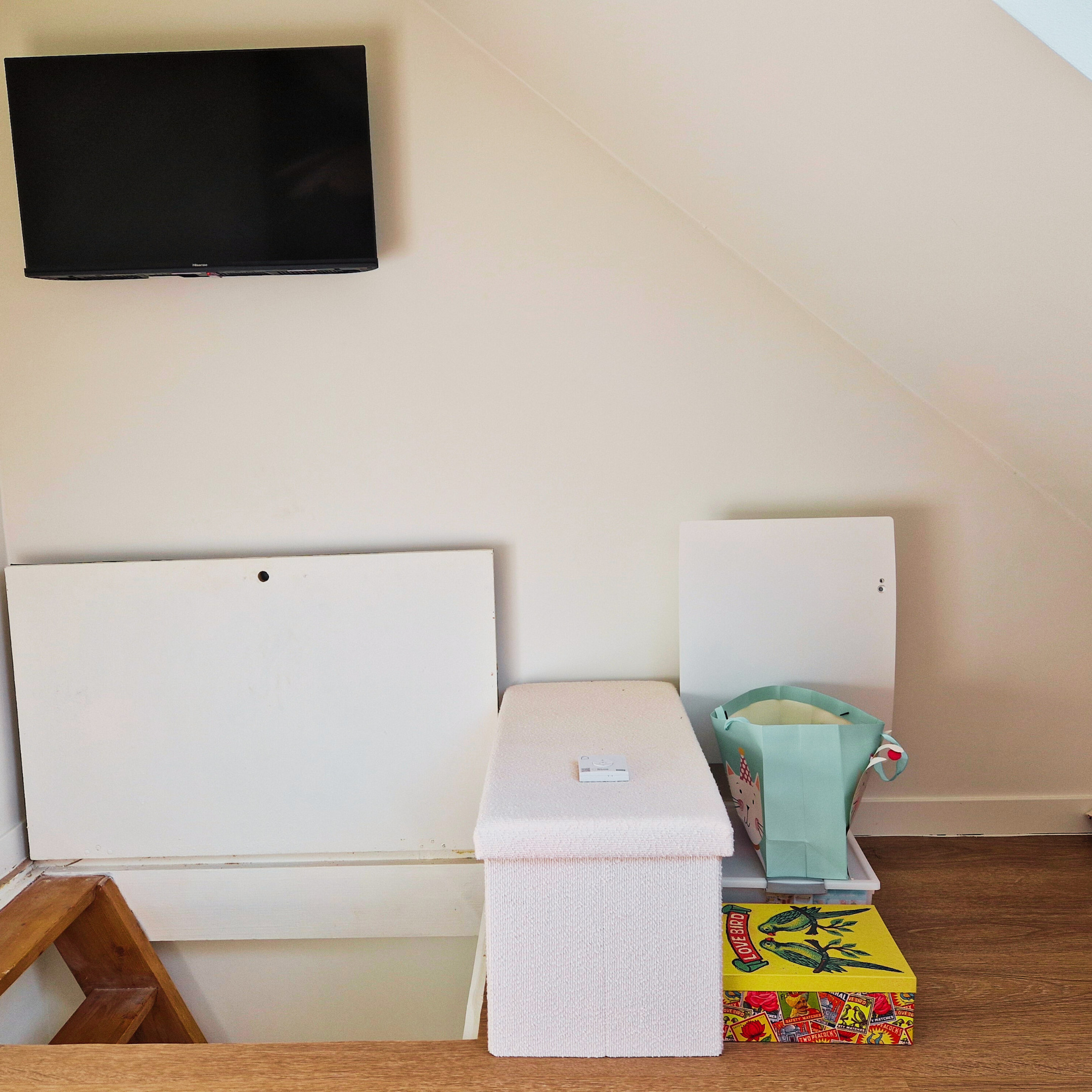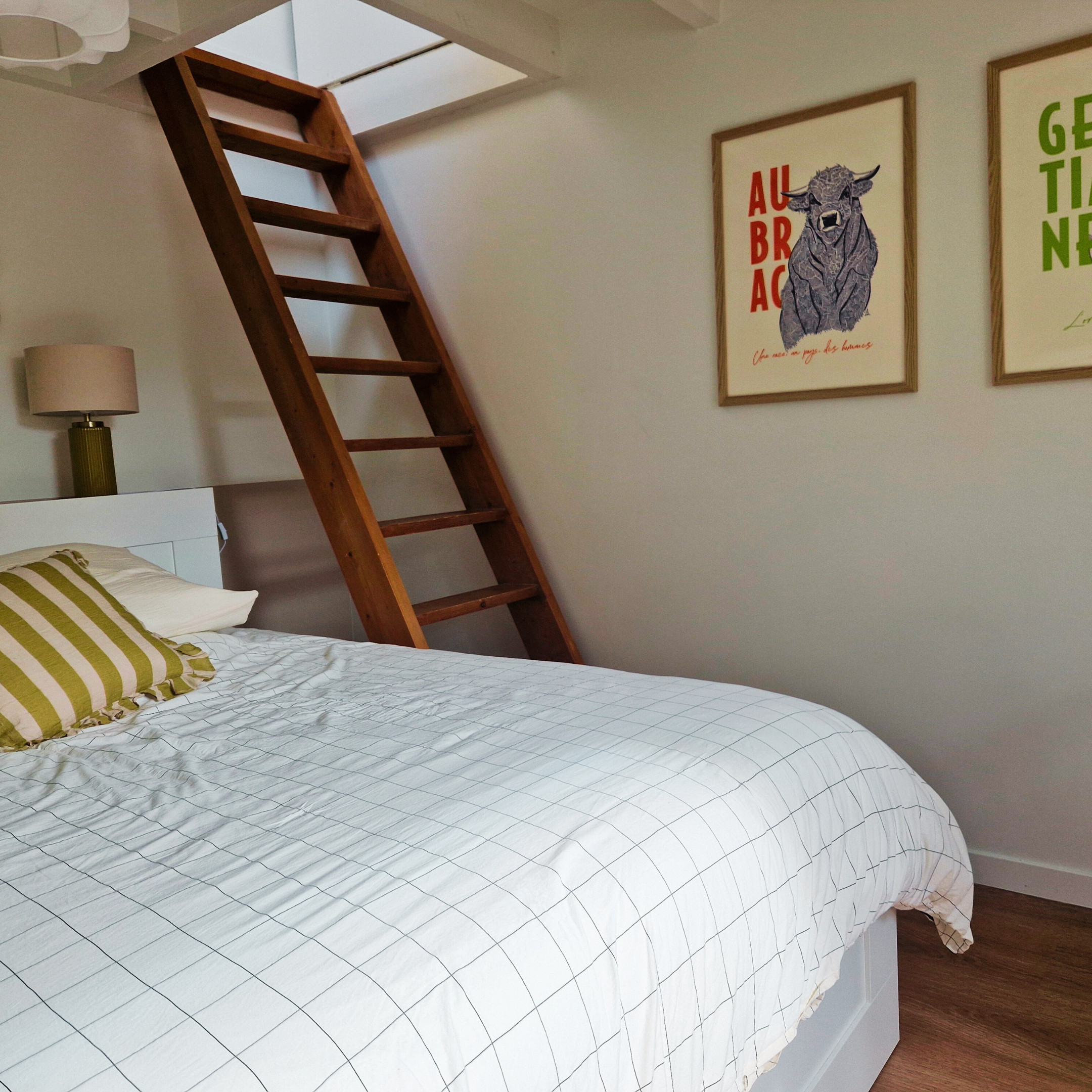 À l’étage, une seconde chambre avec lit double offre un espace nuit cosy et calme. Au dernier niveau, une salle TV supplémentaire permet de créer un coin détente apprécié après une journée en extérieur. À noter : l’escalier est raide, ce qui demande une vigilance particulière avec de jeunes enfants.
