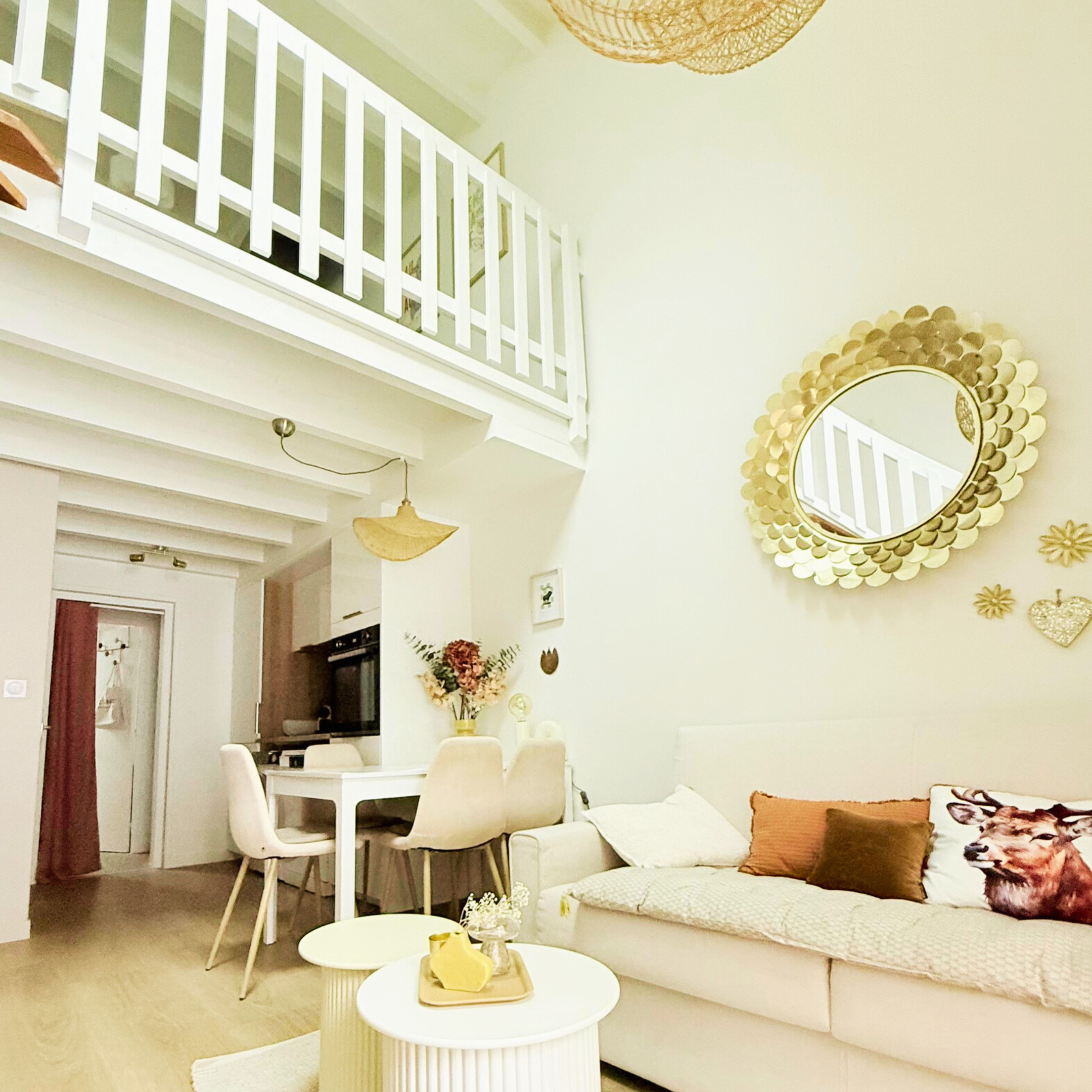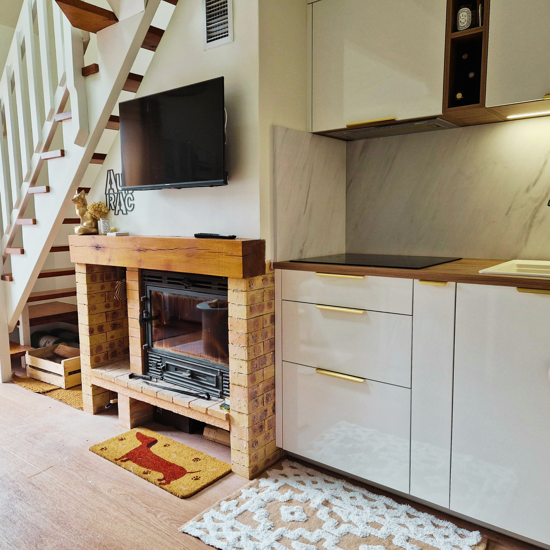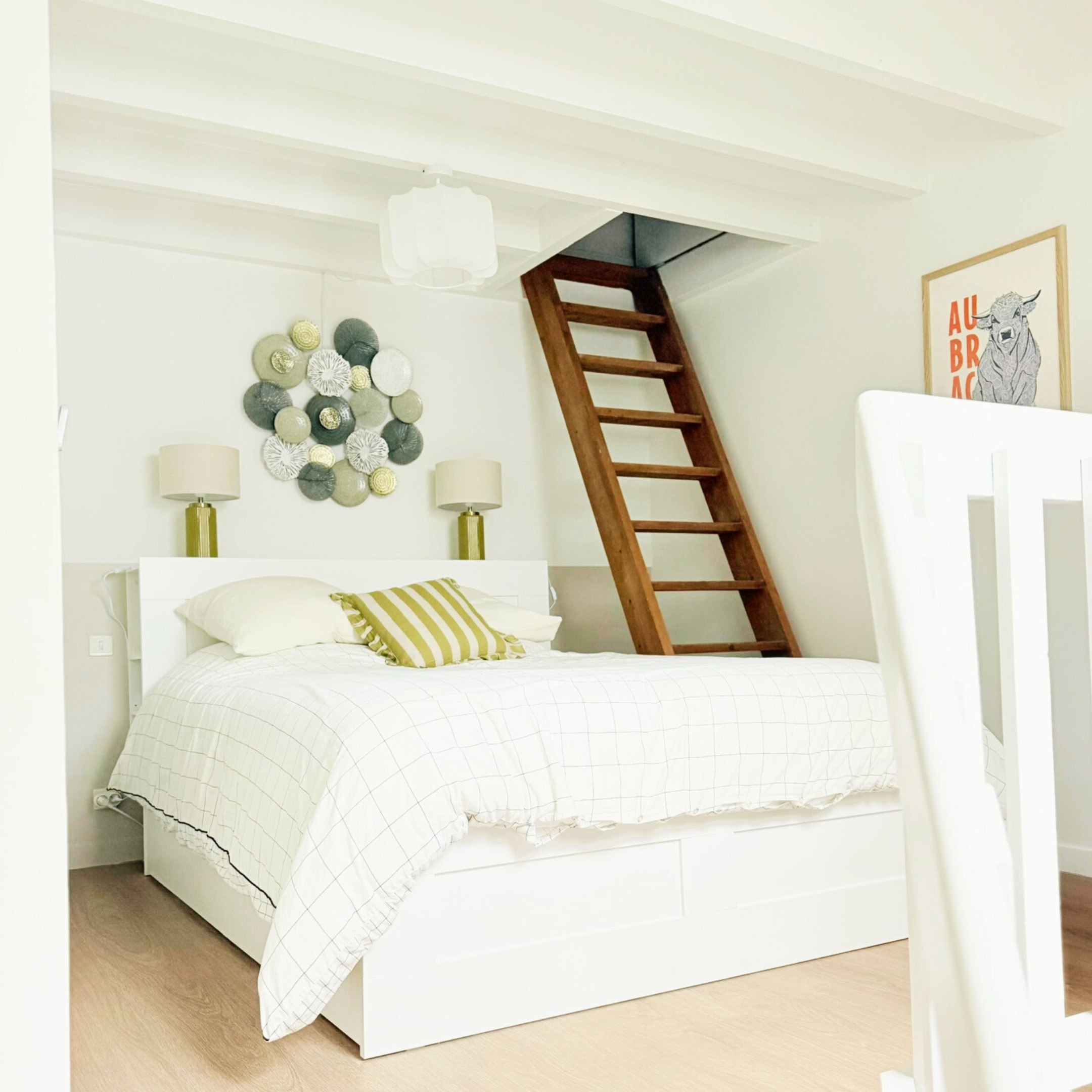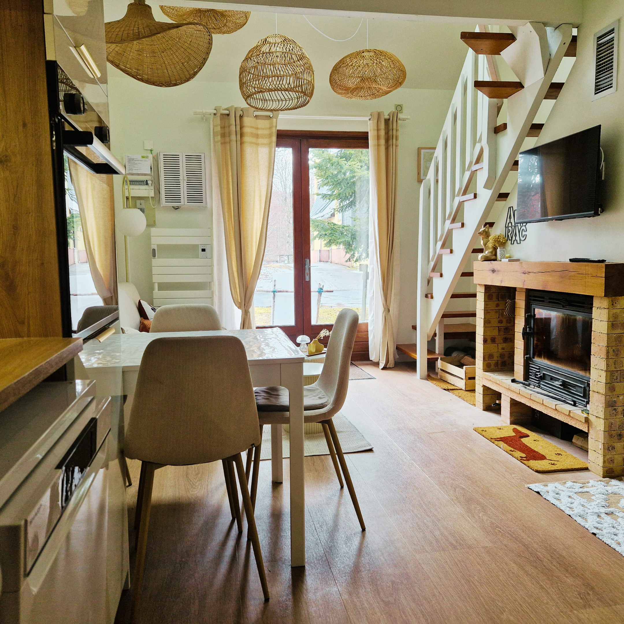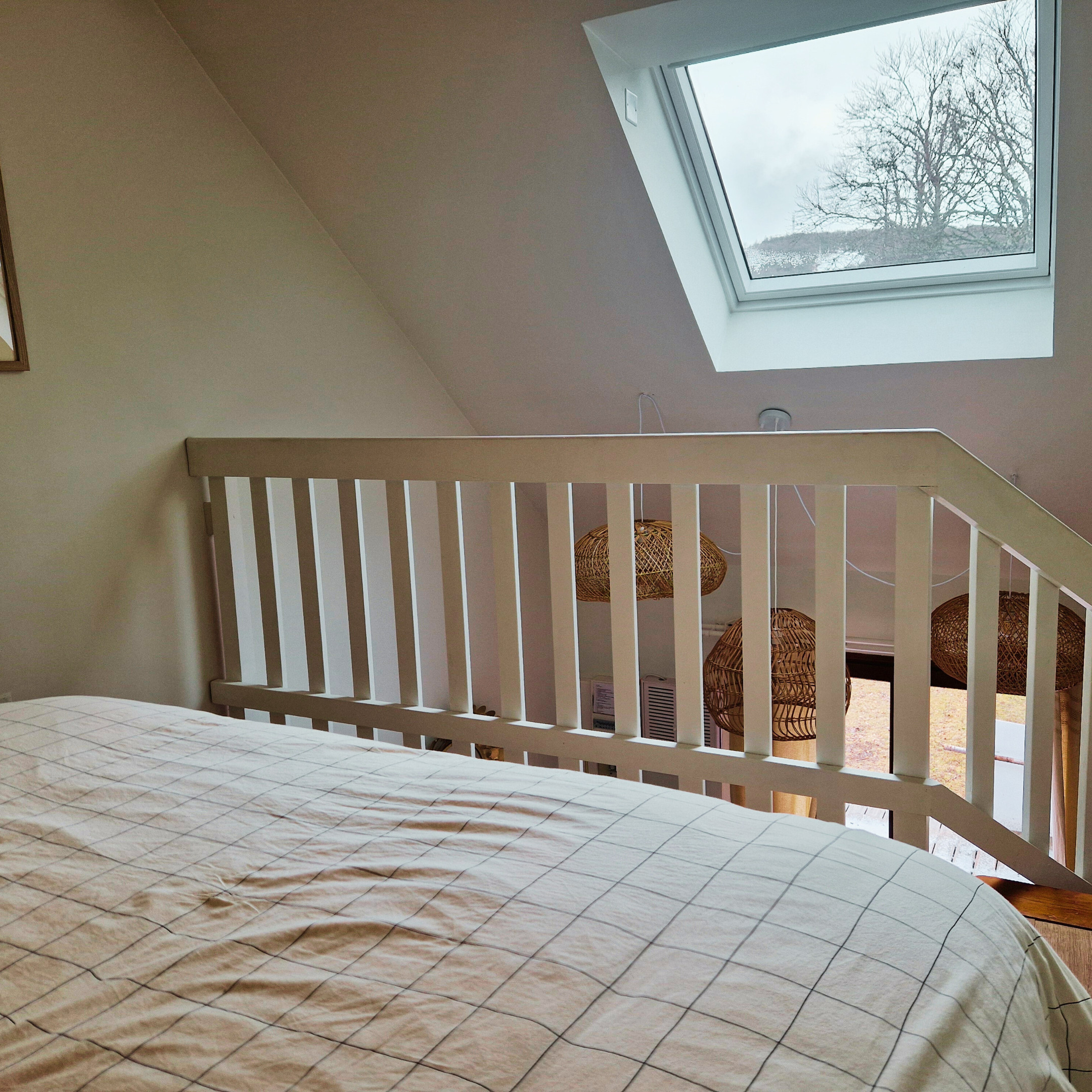 À l’étage, une seconde chambre avec lit double offre un espace nuit cosy et calme. Au dernier niveau, une salle TV supplémentaire permet de créer un coin détente apprécié après une journée en extérieur. À noter : l’escalier est raide, ce qui demande une vigilance particulière avec de jeunes enfants.