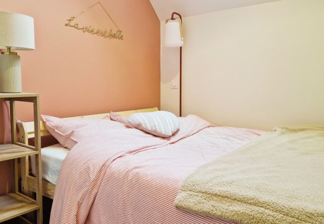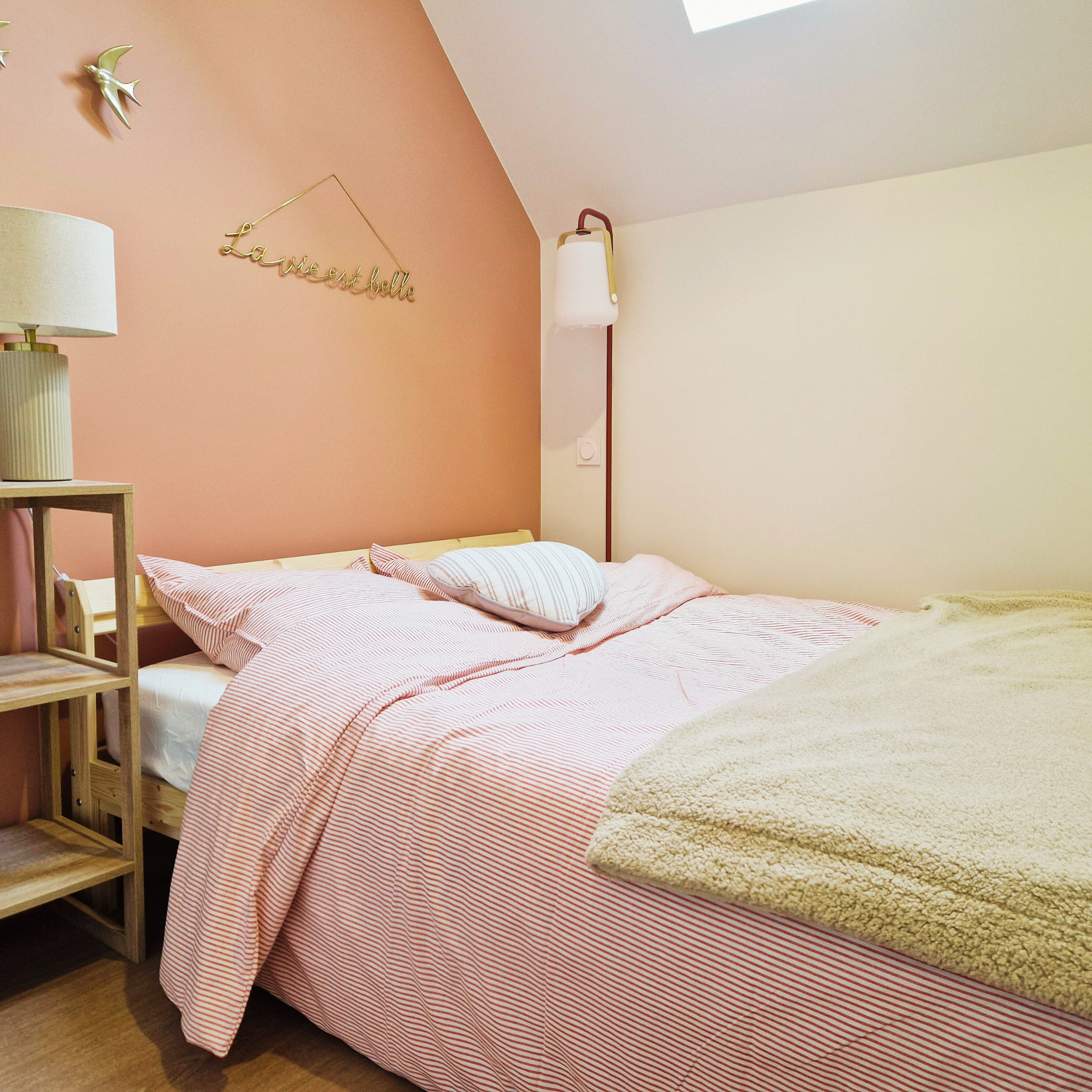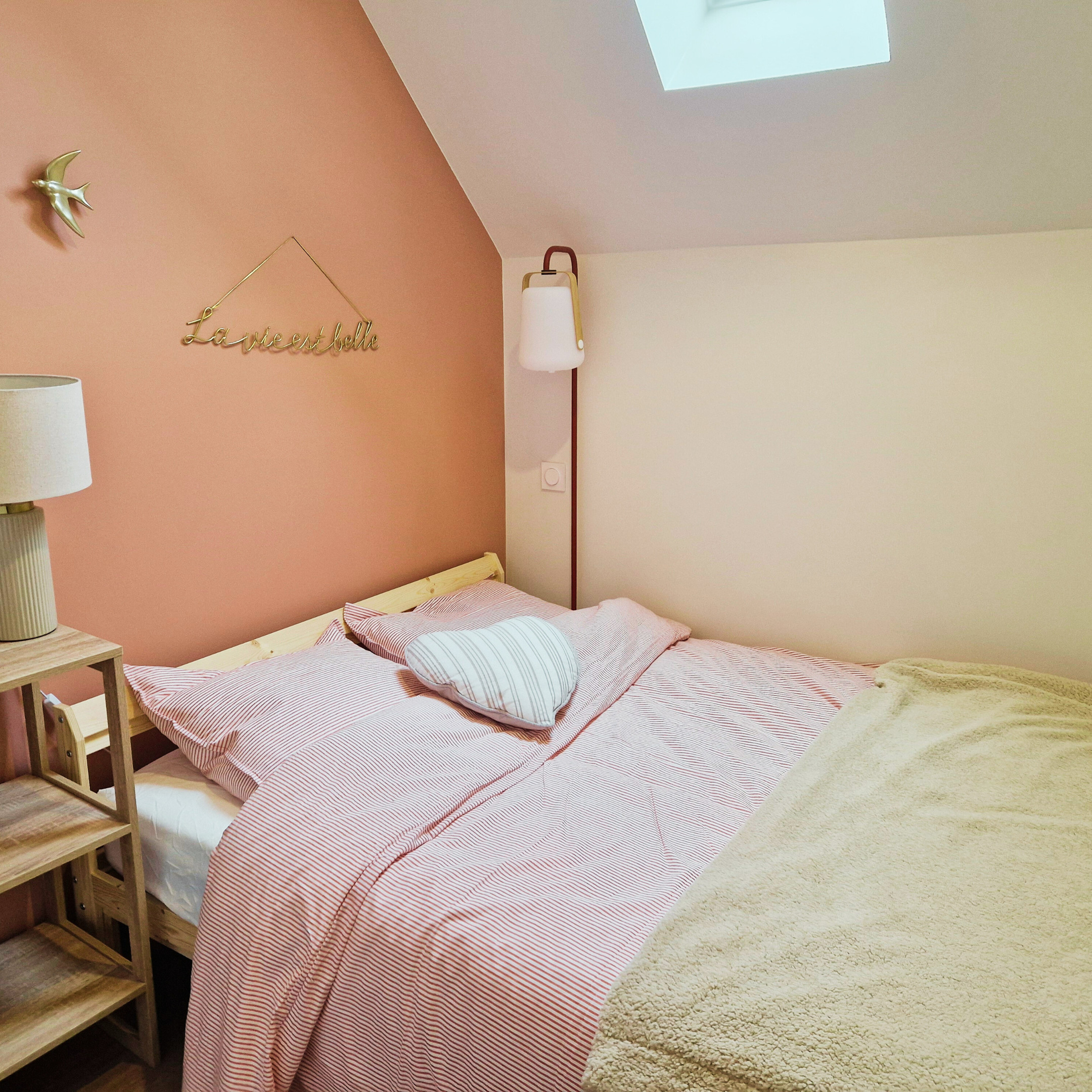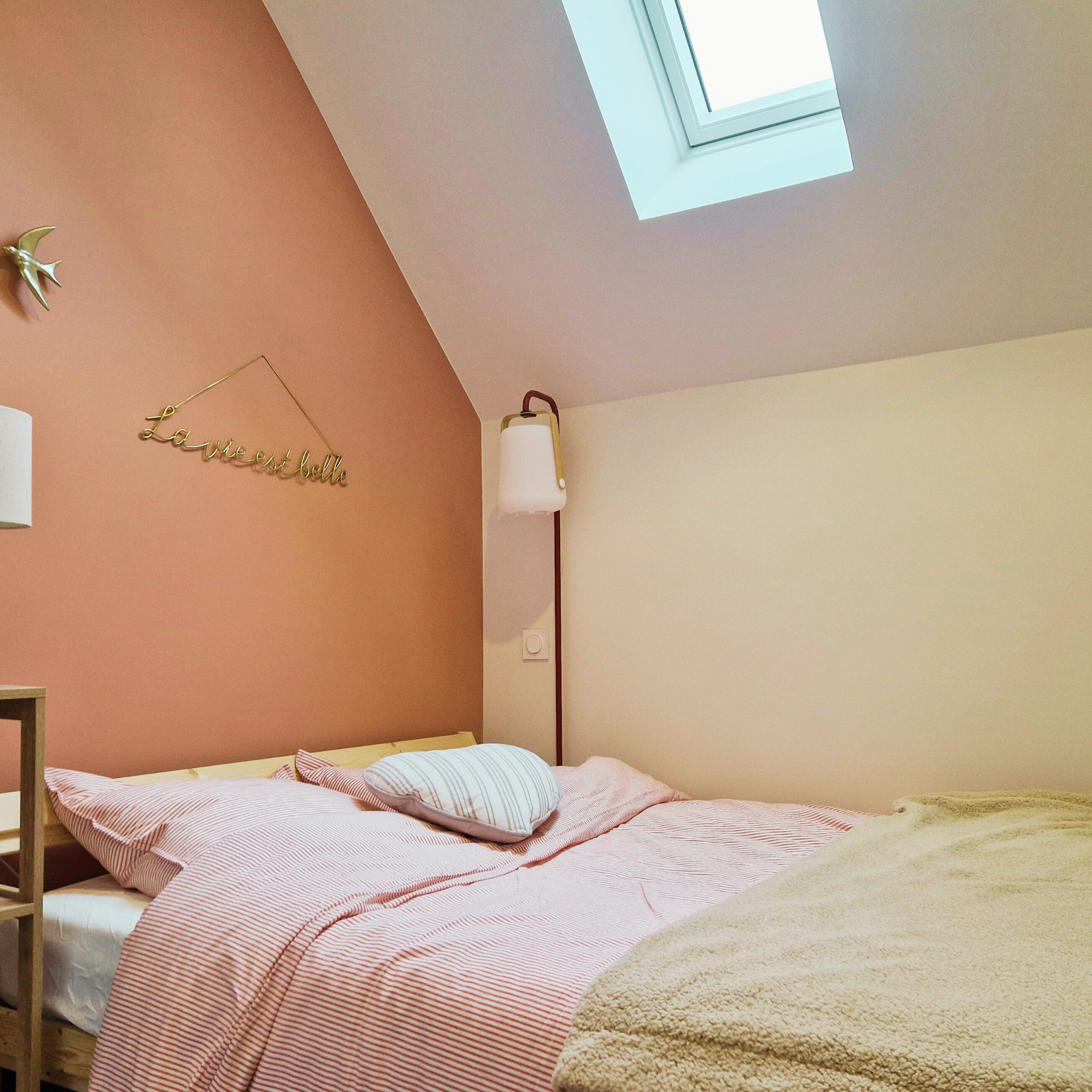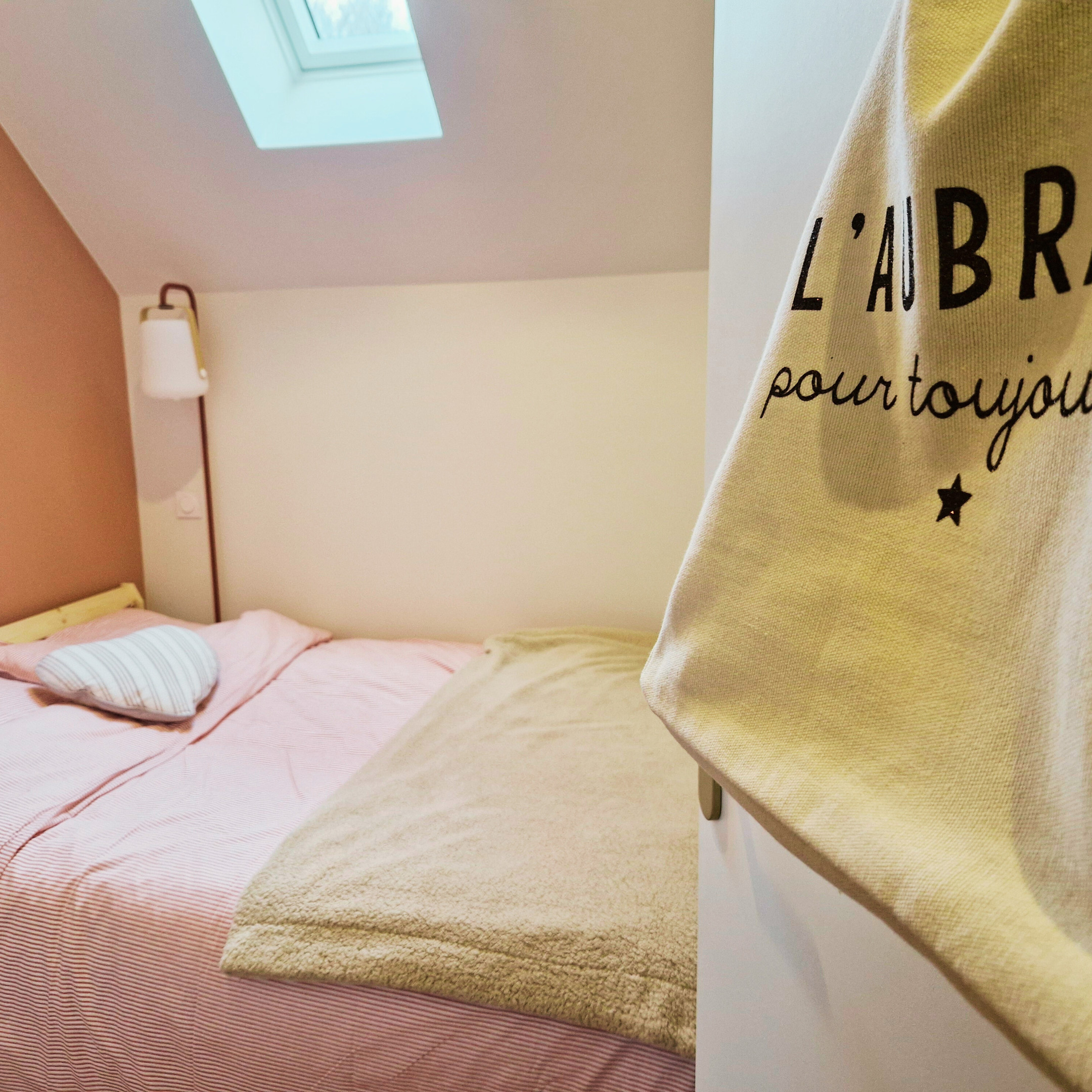 La chambre dispose d’un lit double ainsi que d’un lit gigogne, parfait pour accueillir une famille dans les meilleures conditions.