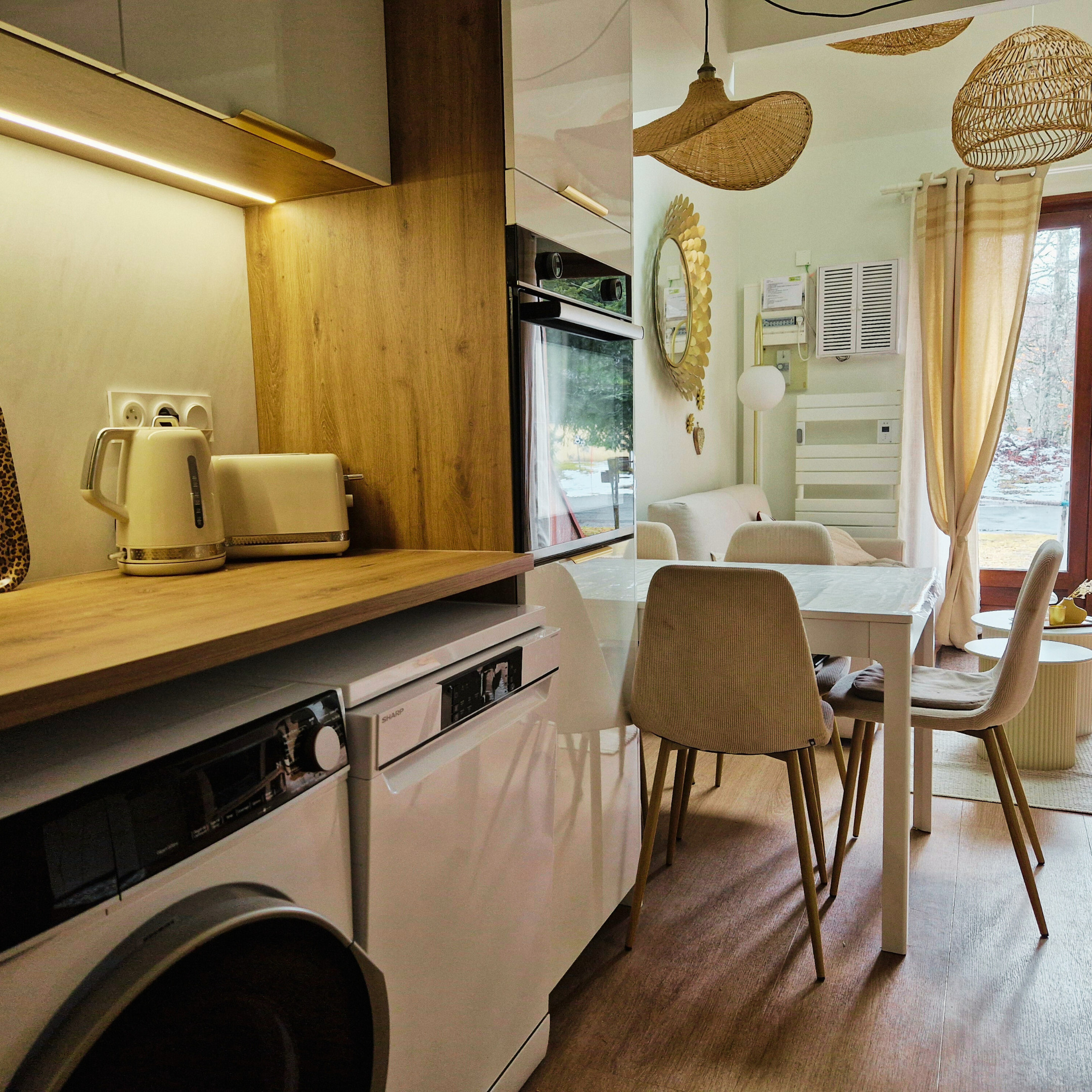 Au Chalet de Laguiole, tout est pensé pour passer un séjour confortable et tranquille. Il dispose d’une TV, du Wi-Fi, d’une machine à laver, ainsi que de tout le nécessaire pour cuisiner et se détendre. Le poêle à bois apporte chaleur et ambiance, idéal pour les soirées cocooning après une journée de randonnée ou de découverte de l’Aubrac.