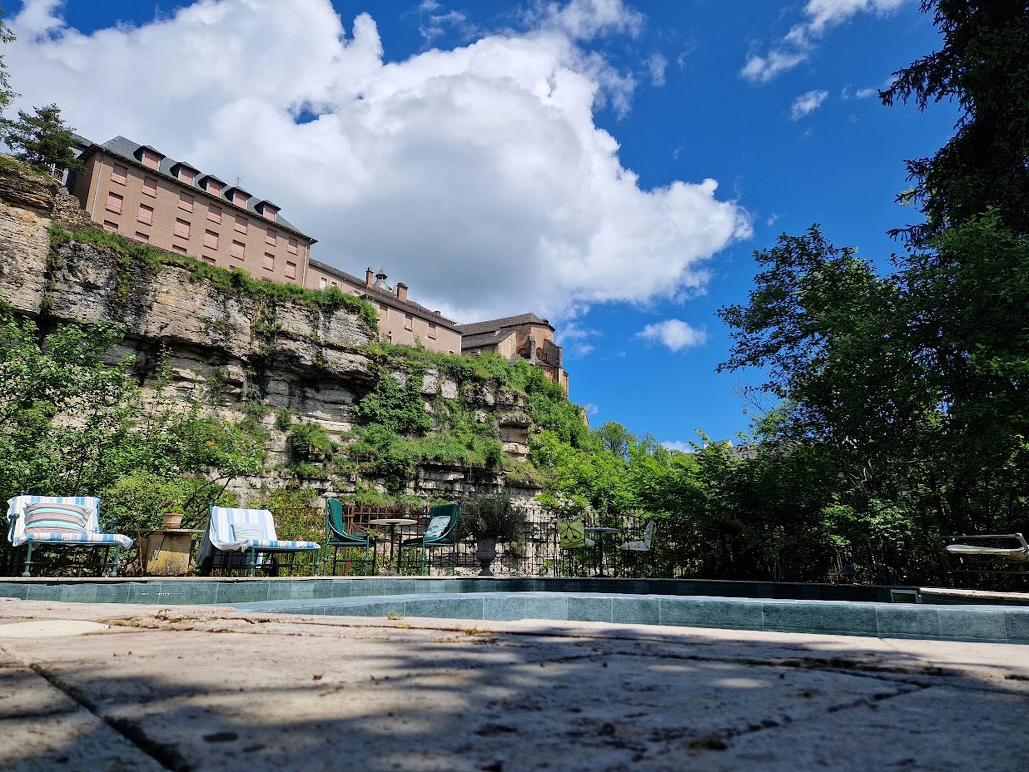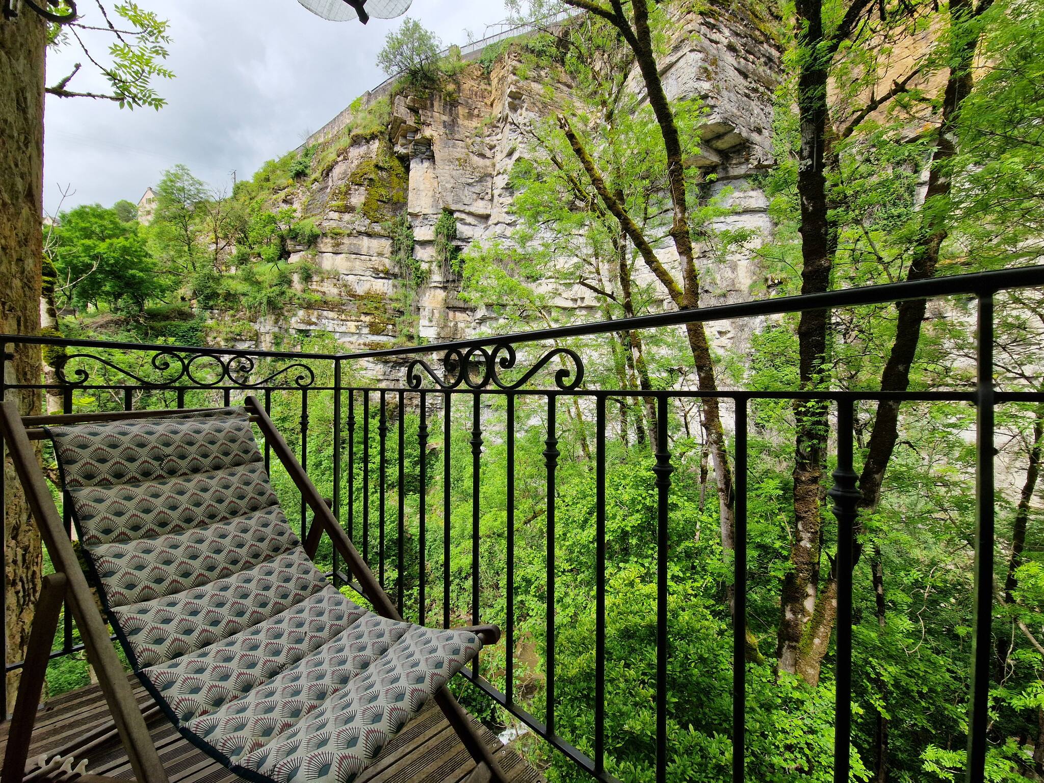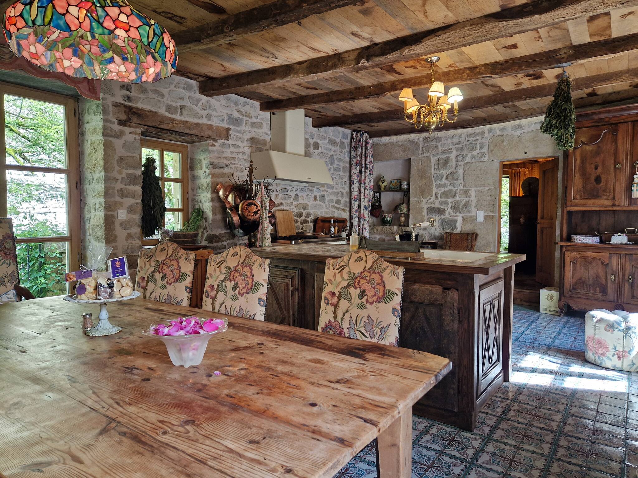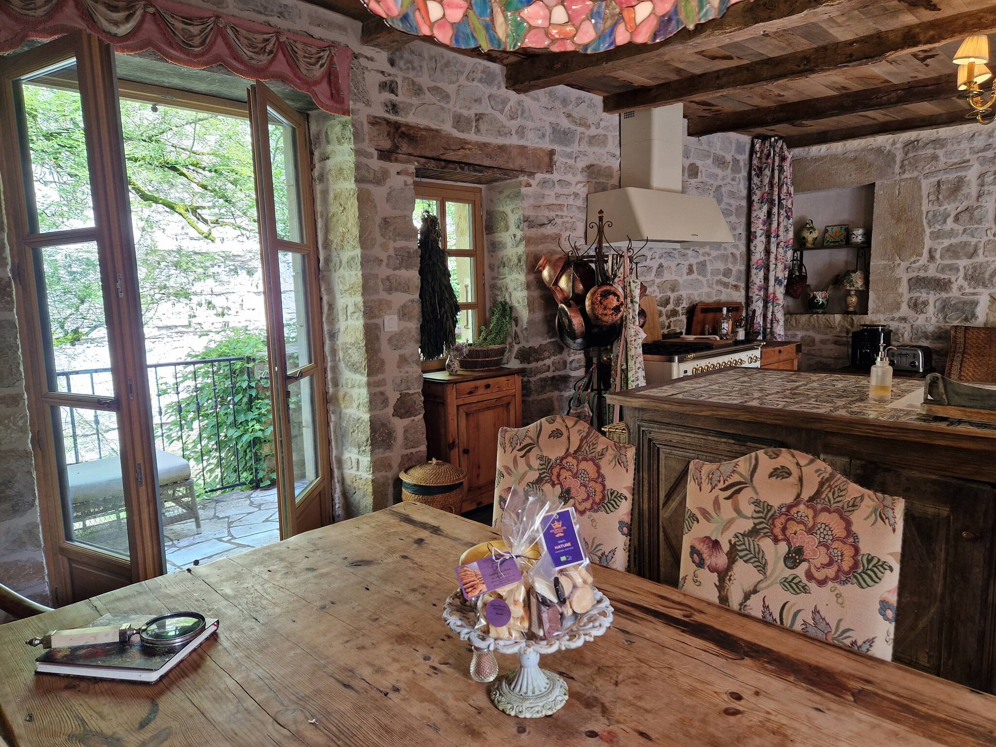 La propriété offre une piscine et un jacuzzi avec une vue imprenable sur l'église Sainte Fauste ; une église romane du XIIème siècle, bâtie sur un promontoire, au cœur elle aussi du canyon de Bozouls. La cuisine est toute équipée, y compris une cafetière à grains pour les amoureux de café. Une connexion Wi-Fi est disponible, bien qu'il n'y ait pas de télévision pour garantir une déconnexion totale et un séjour paisible. La décoration authentique avec des meubles chinés confère à cet endroit une atmosphère atypique et remplie de charme.