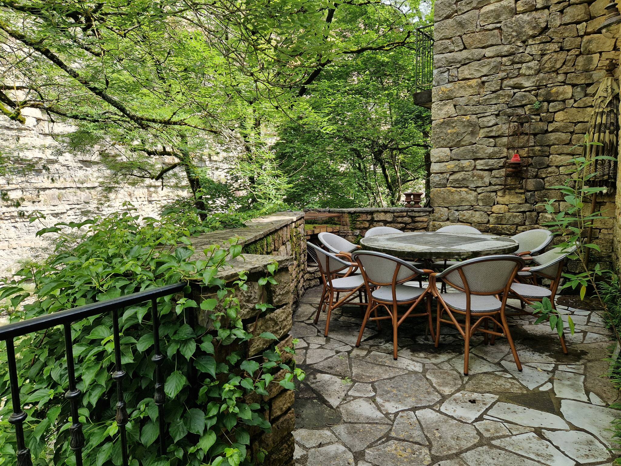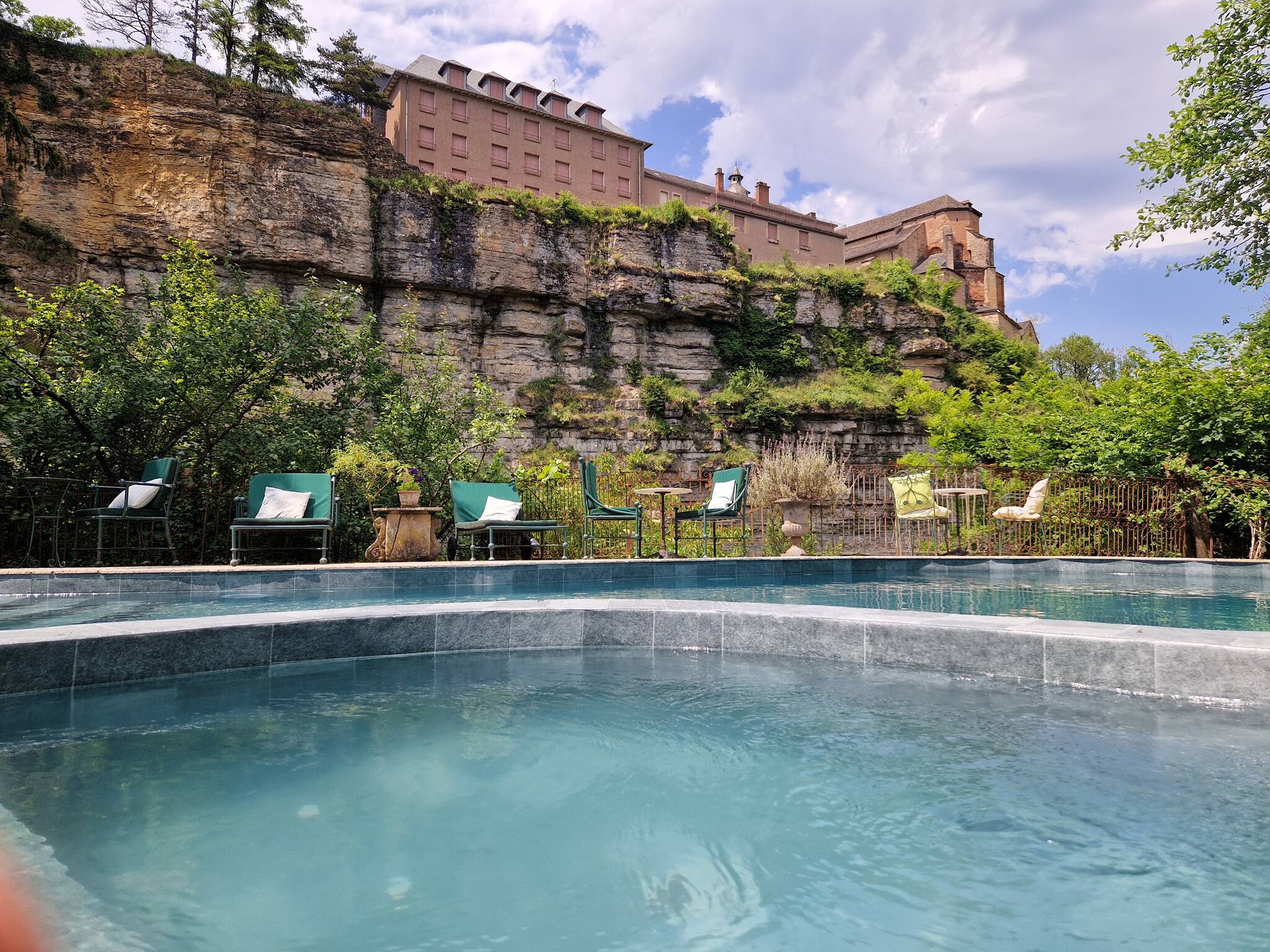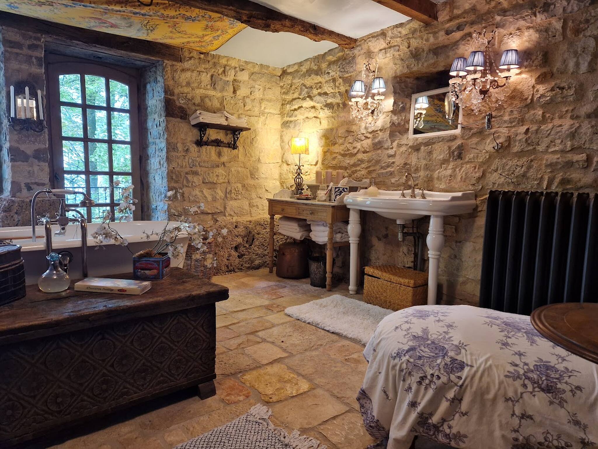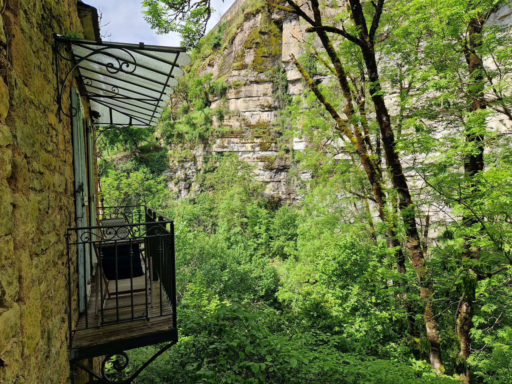 La propriété offre une piscine et un jacuzzi avec une vue imprenable sur l'église Sainte Fauste ; une église romane du XIIème siècle, bâtie sur un promontoire, au cœur elle aussi du canyon de Bozouls. La cuisine est toute équipée, y compris une cafetière à grains pour les amoureux de café. Une connexion Wi-Fi est disponible, bien qu'il n'y ait pas de télévision pour garantir une déconnexion totale et un séjour paisible. La décoration authentique avec des meubles chinés confère à cet endroit une atmosphère atypique et remplie de charme.