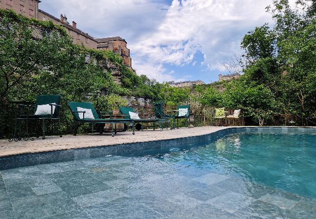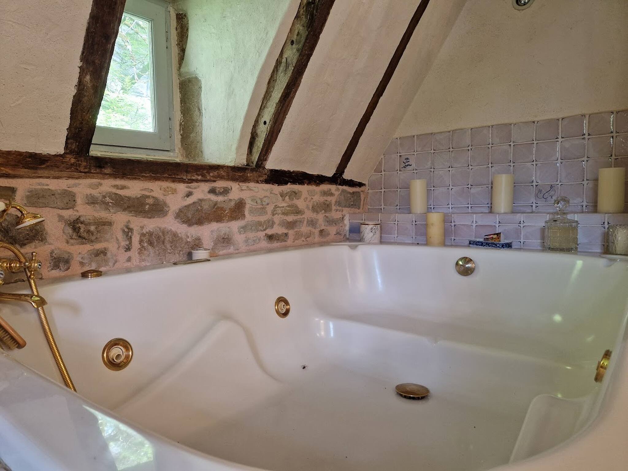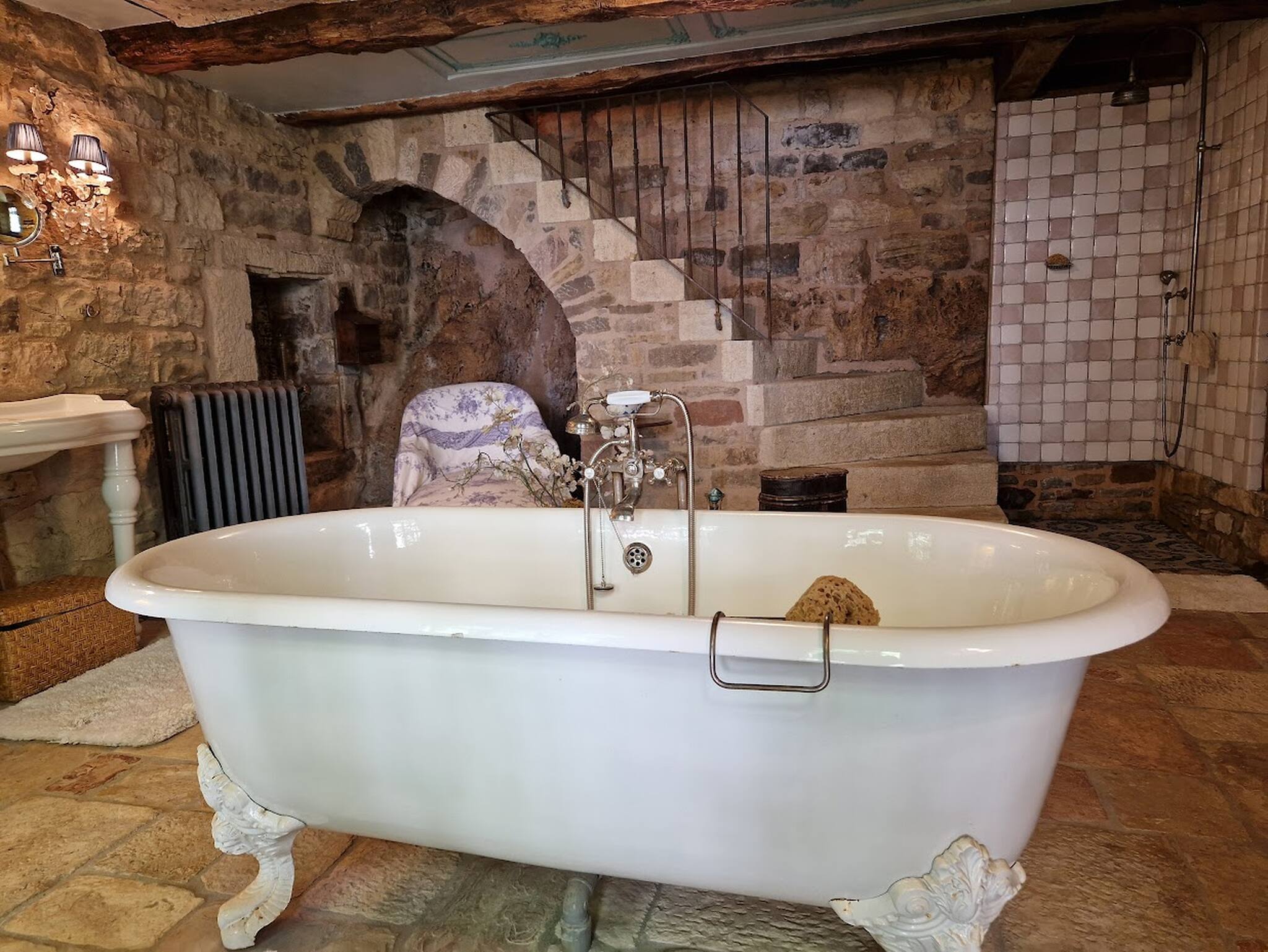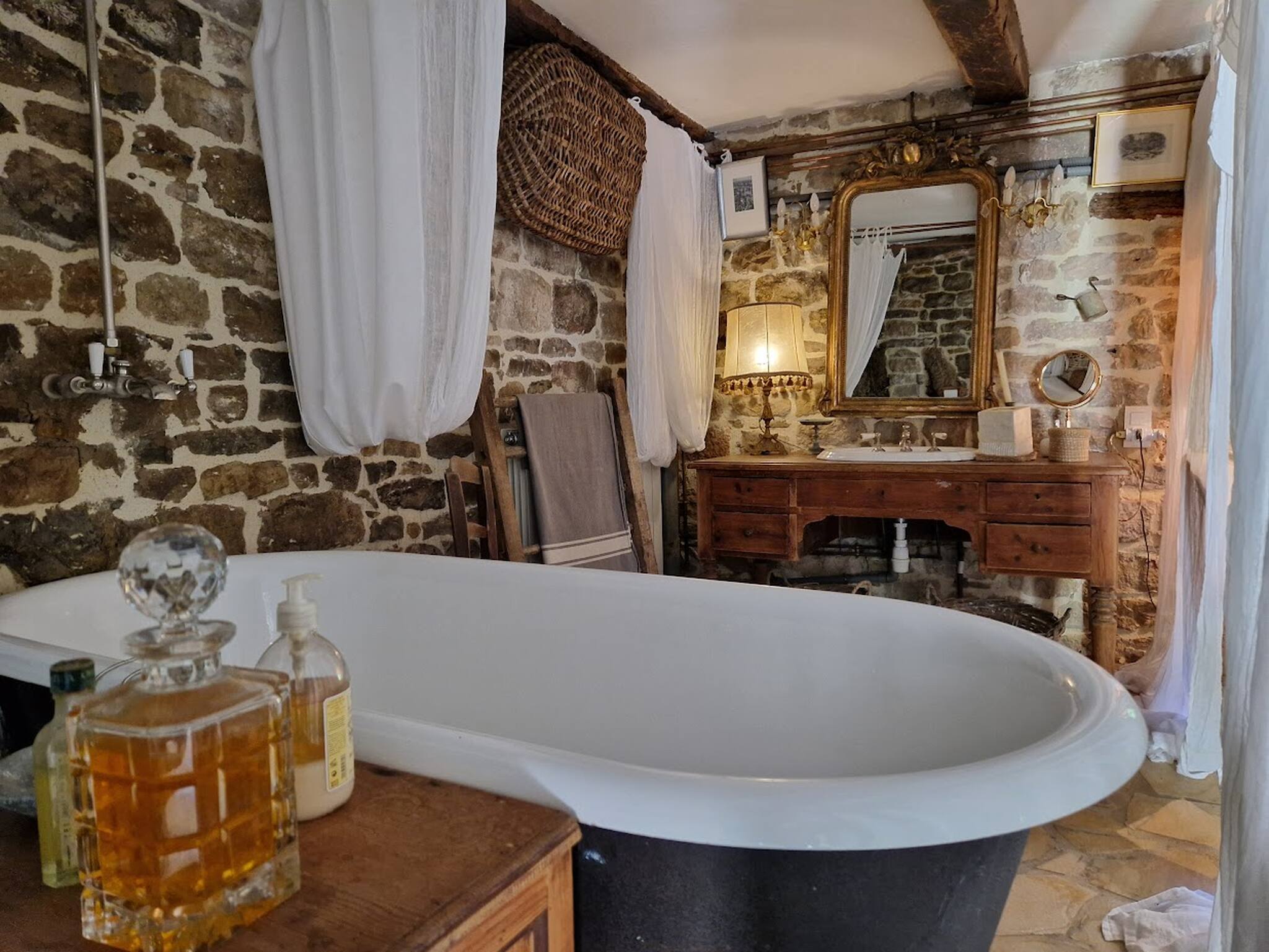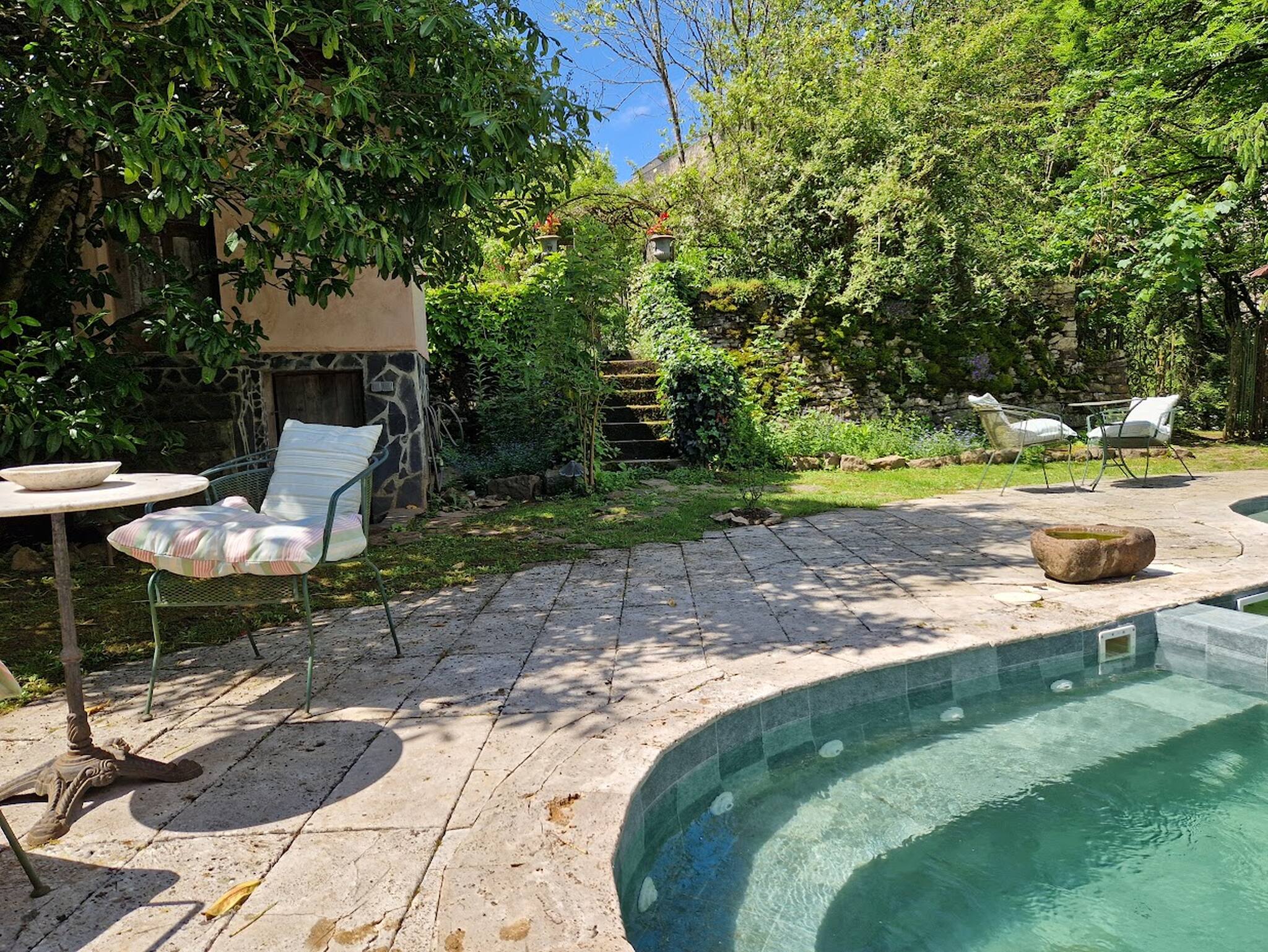 La propriété offre une piscine et un jacuzzi avec une vue imprenable sur l'église Sainte Fauste ; une église romane du XIIème siècle, bâtie sur un promontoire, au cœur elle aussi du canyon de Bozouls. La cuisine est toute équipée, y compris une cafetière à grains pour les amoureux de café. Une connexion Wi-Fi est disponible, bien qu'il n'y ait pas de télévision pour garantir une déconnexion totale et un séjour paisible. La décoration authentique avec des meubles chinés confère à cet endroit une atmosphère atypique et remplie de charme.