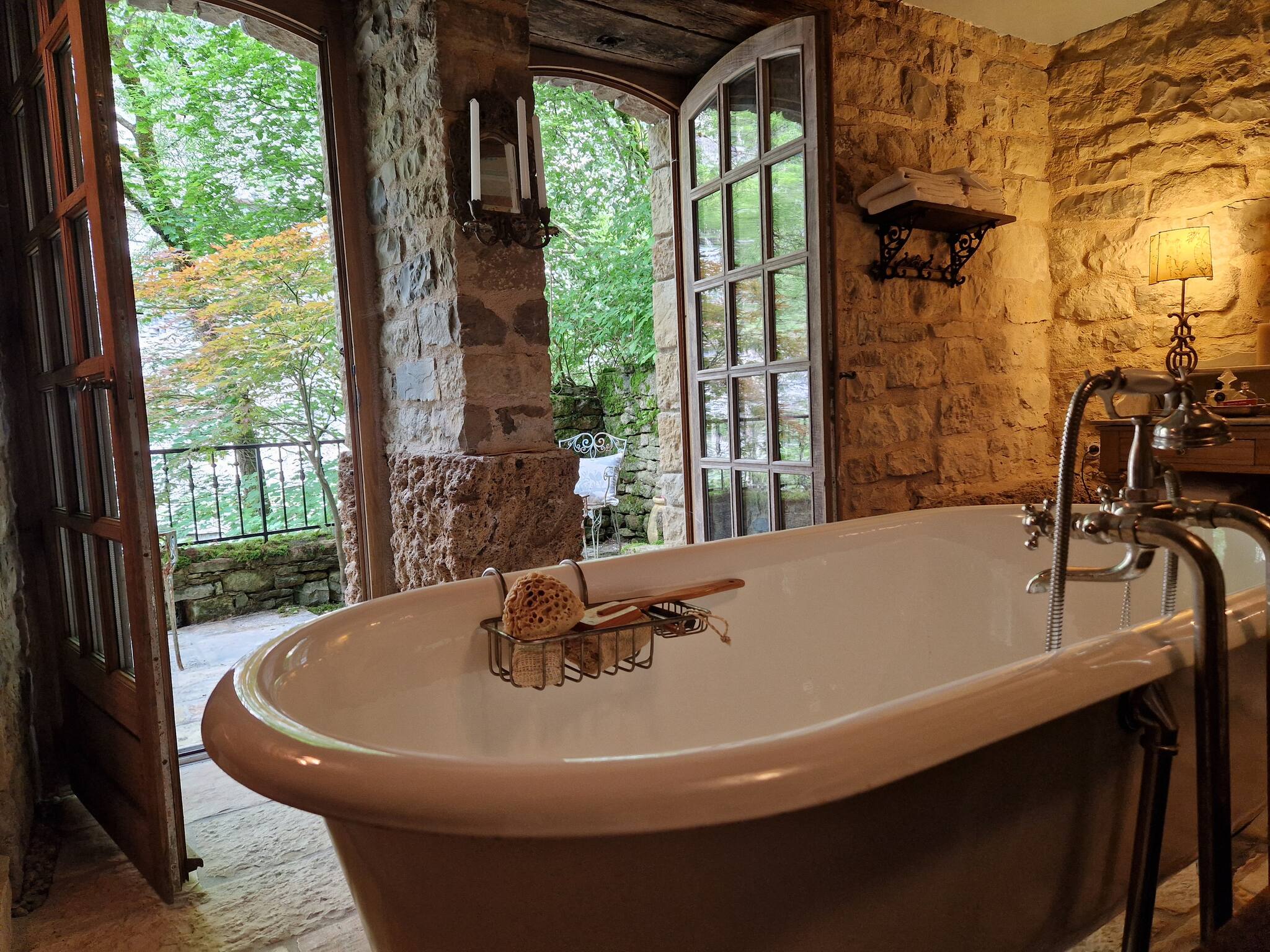 La propriété offre une piscine et un jacuzzi avec une vue imprenable sur l'église Sainte Fauste ; une église romane du XIIème siècle, bâtie sur un promontoire, au cœur elle aussi du canyon de Bozouls.