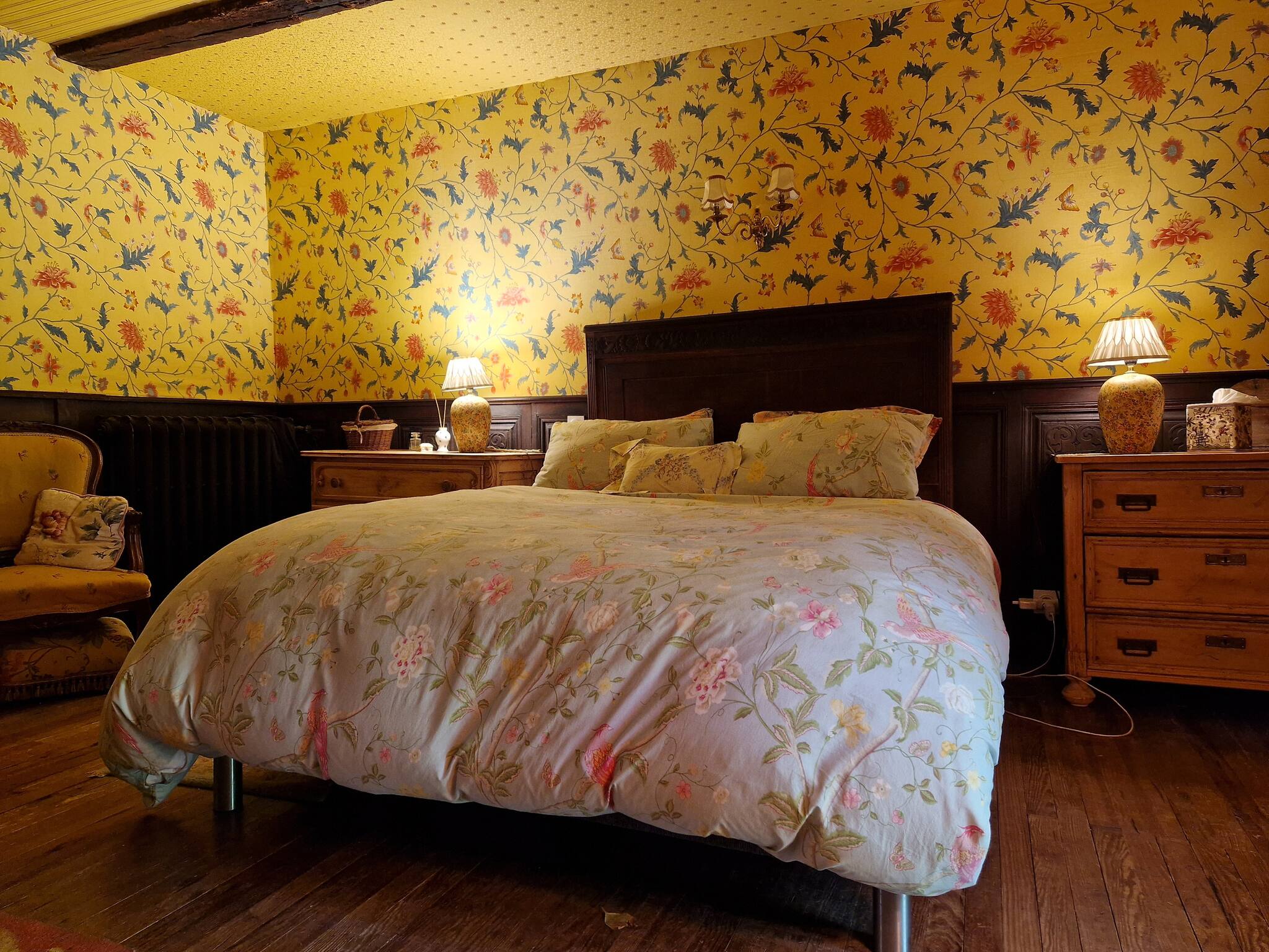 Au premier niveau, vous trouverez une chambre pour 2 personnes (lit double) décorée chaleureusement dans le respect du lieu. Ainsi qu’une salle de bain comprenant une baignoire, une douche et un WC, accessible par un escalier au -1.