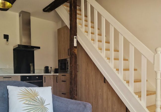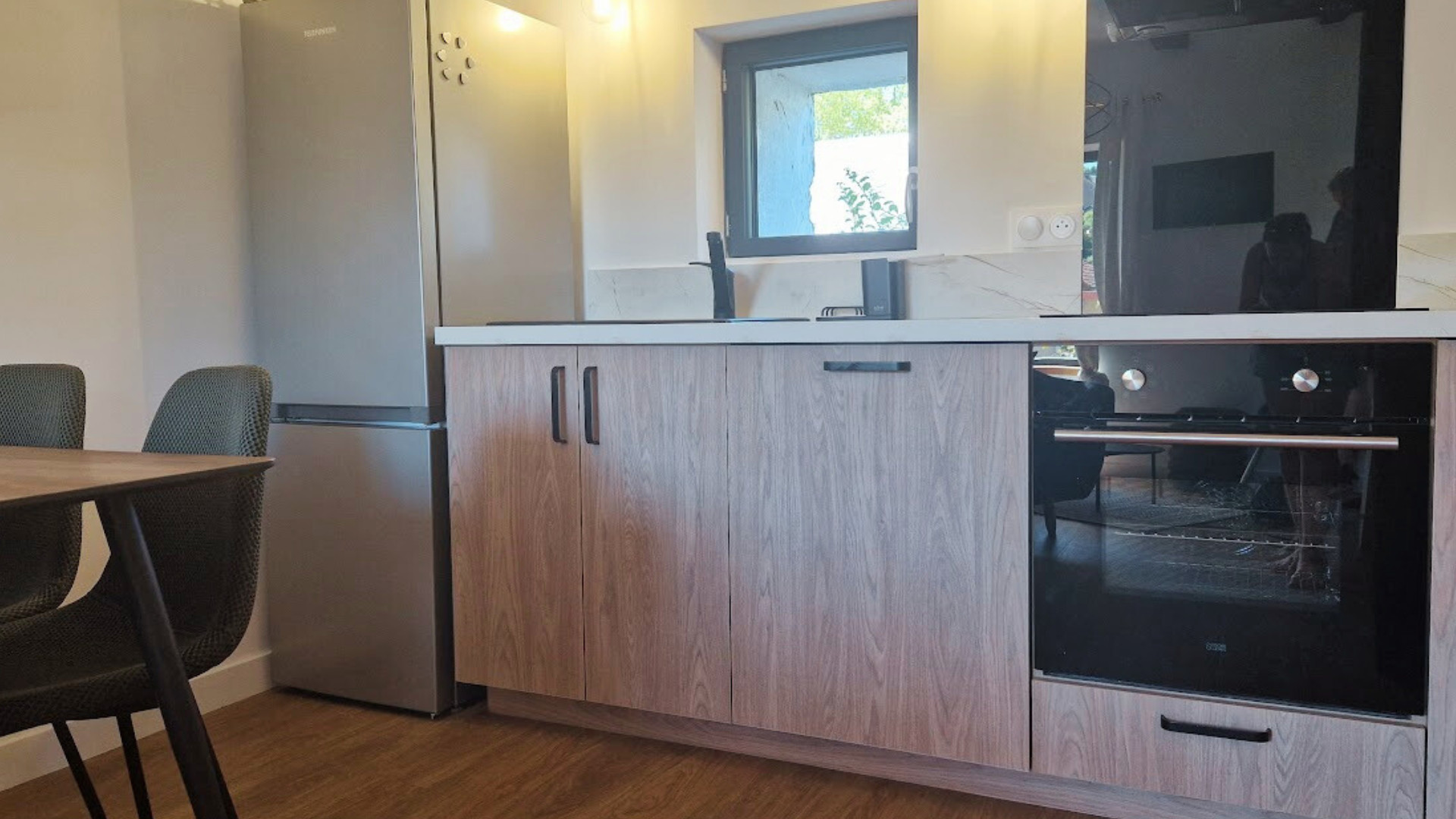 * Literie neuve pour des nuits confortables. Cuisine équipée, salon cosy, salle de bain moderne, TV, wifi (fibre) et clim. Petit extérieur avec salon de jardin.
