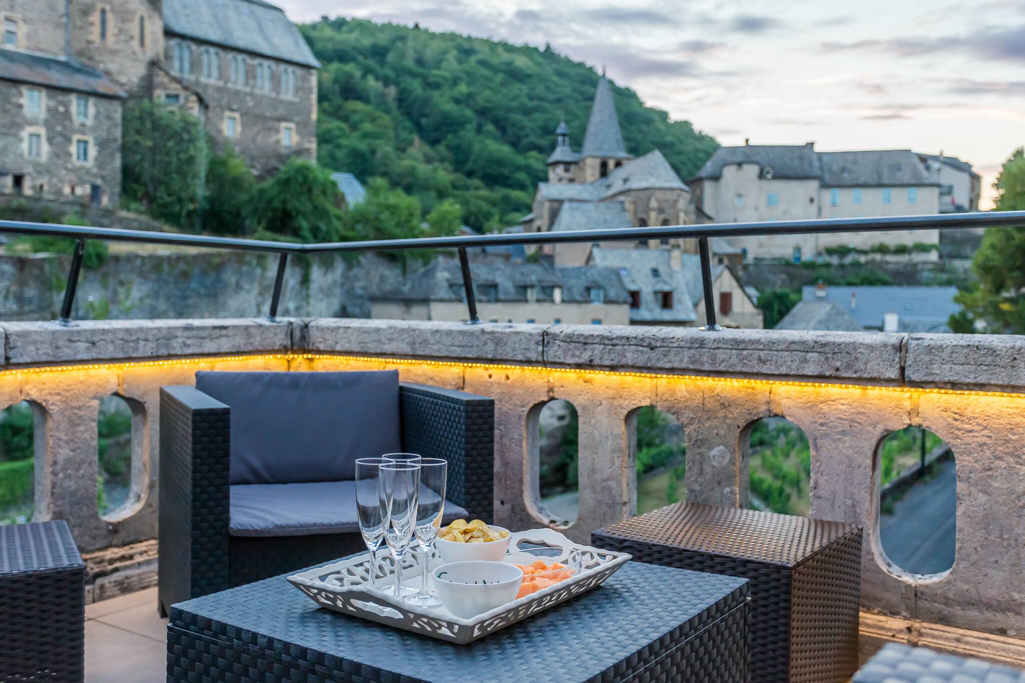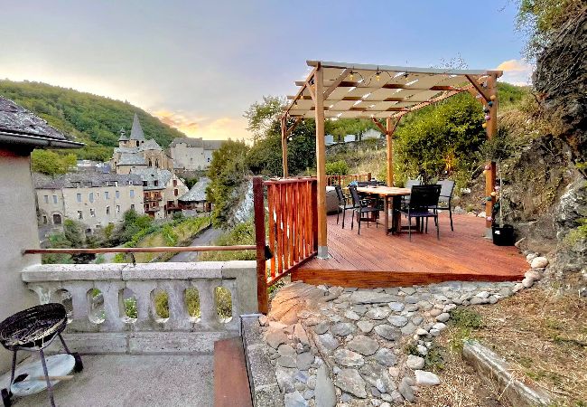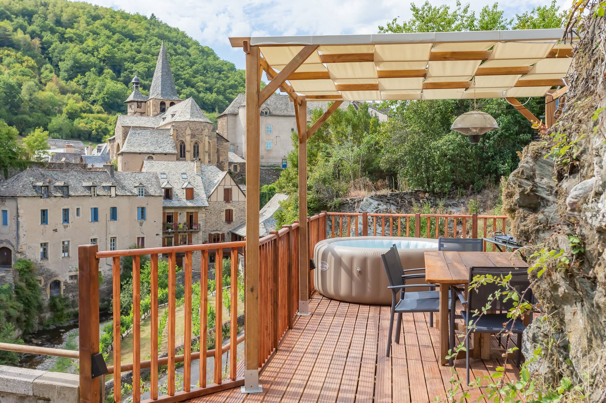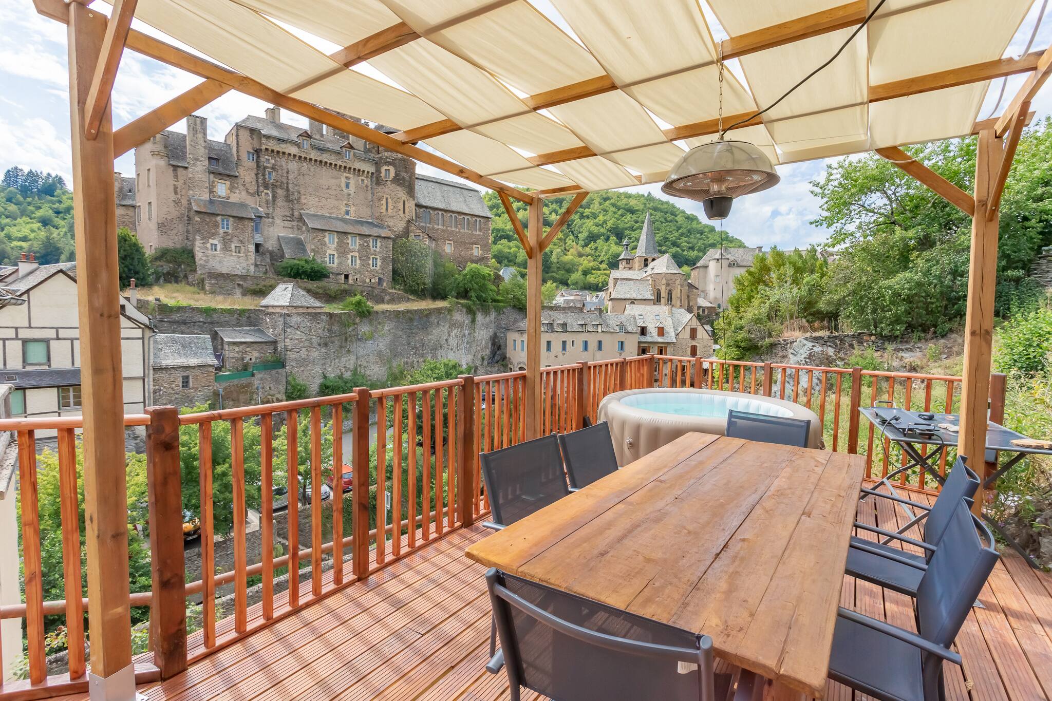 Séjournez dans cette maison atypique accolée à la roche face au château d'Estaing, l'un des plus beaux villages de France. La maison à étage vient juste d'être refaite avec cœur en mêlant déco tendance et traditions. Deux terrasses vous permettront d'admirer le château, une des plus jolies vue de l'Aveyron. Profitez d'un moment détente avec jacuzzi/hammam.