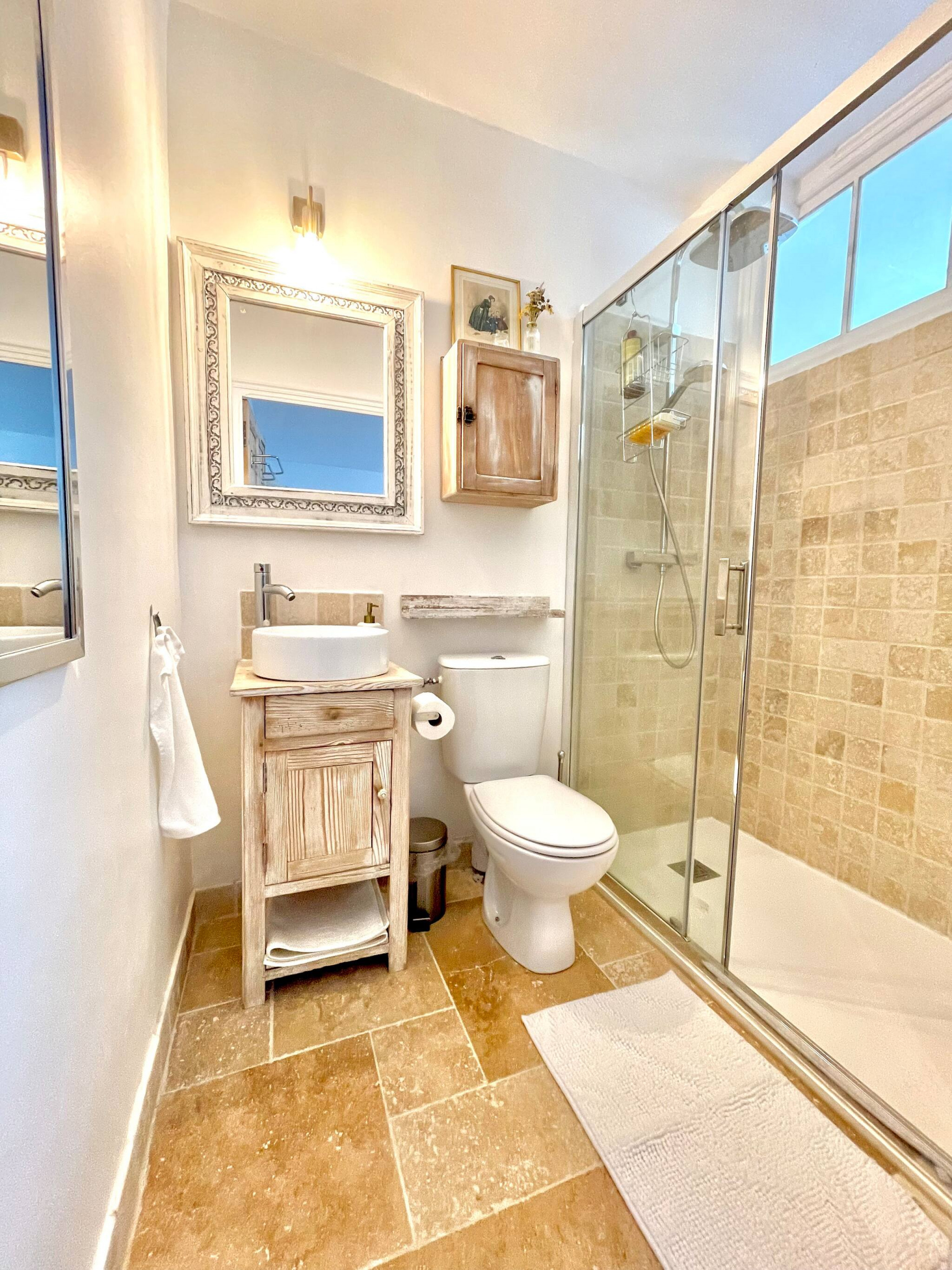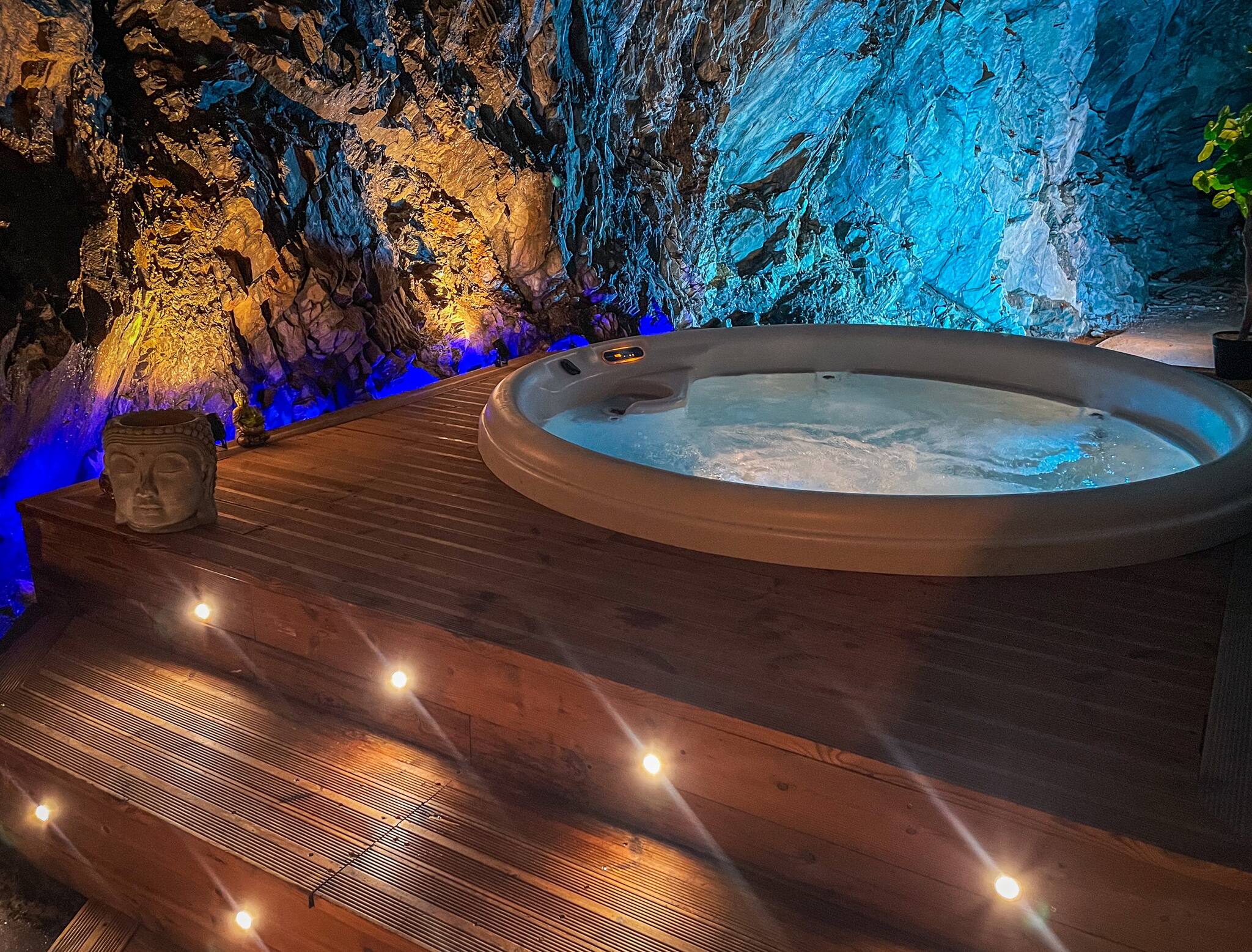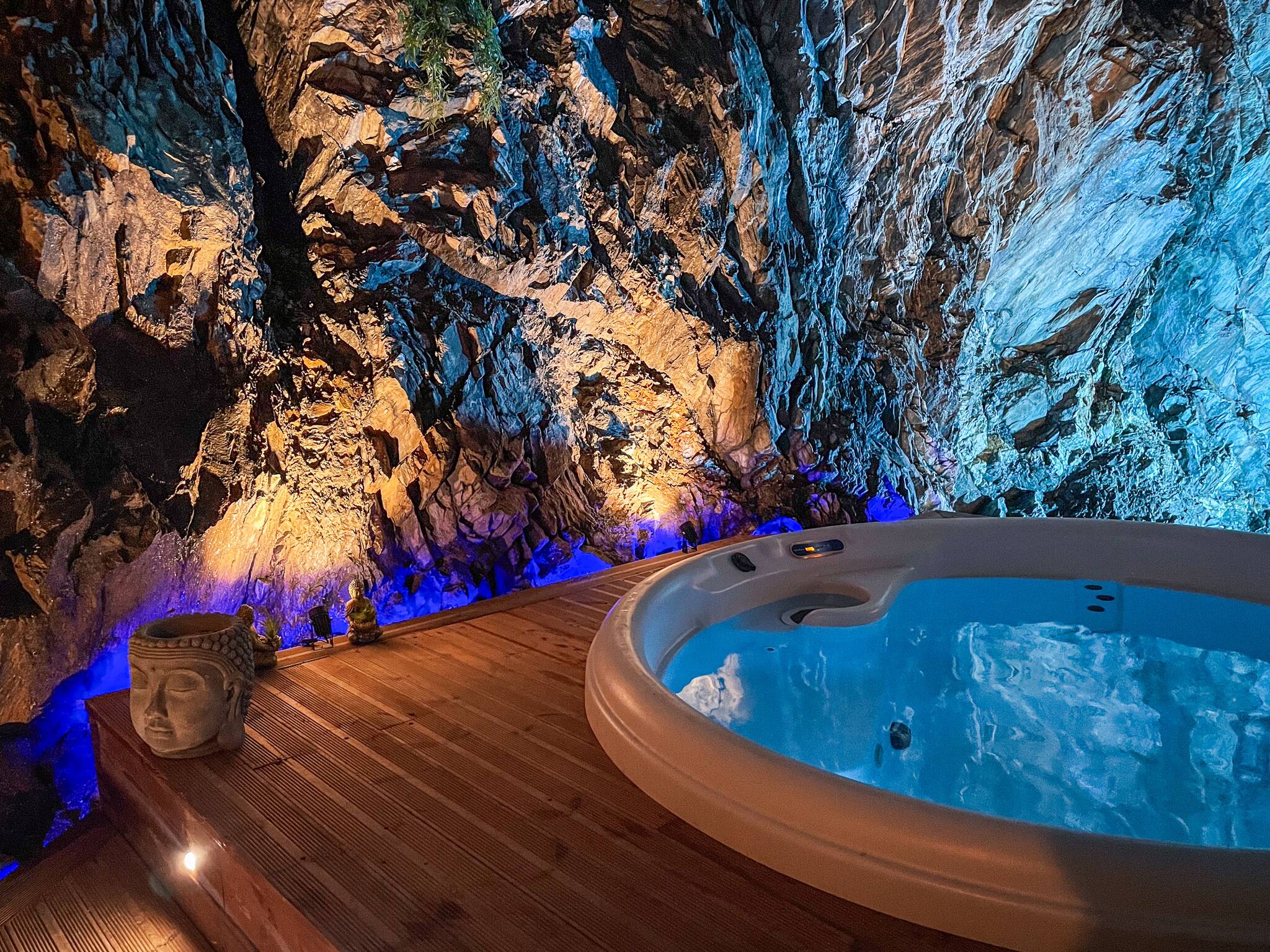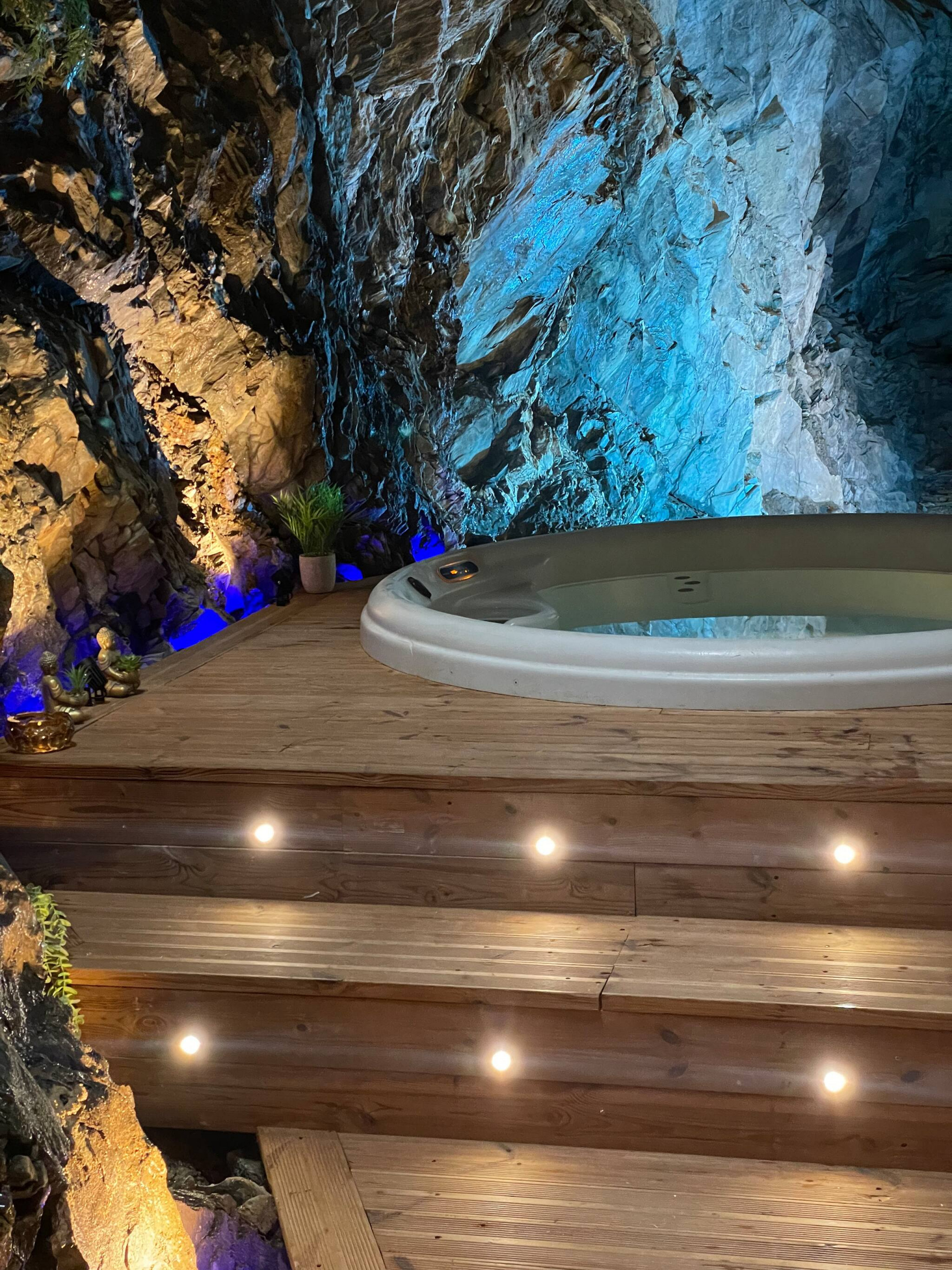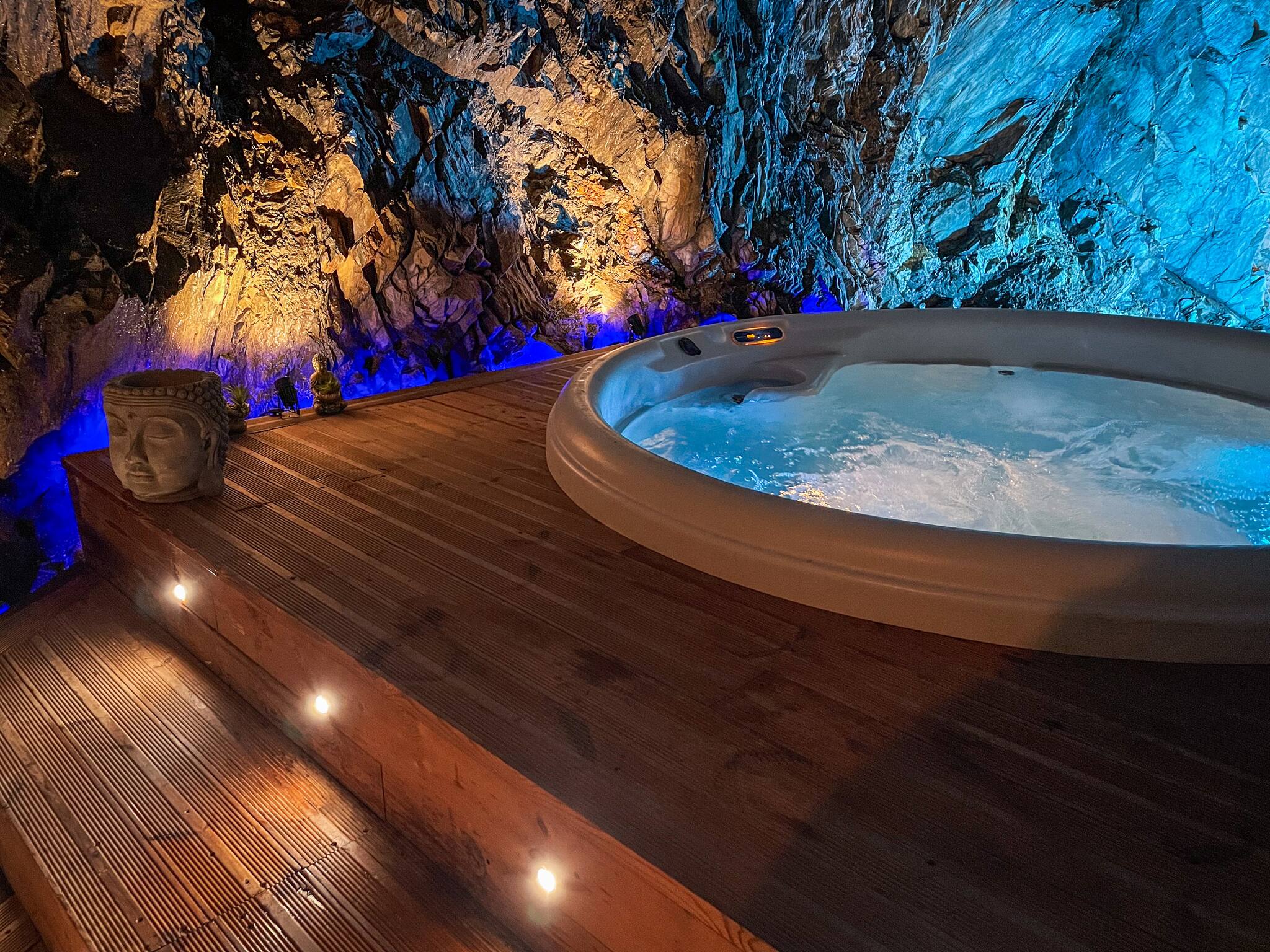 1er étage: séjour avec cuisine ouverte/salon (Tv connectée, wifi, enceinte Bluetooth, jeux de sociétés) avec magnifique vue sur la roche. / buanderie (hammam) / 1WC / accès grotte et jacuzzi / jardinet avec bains de soleil