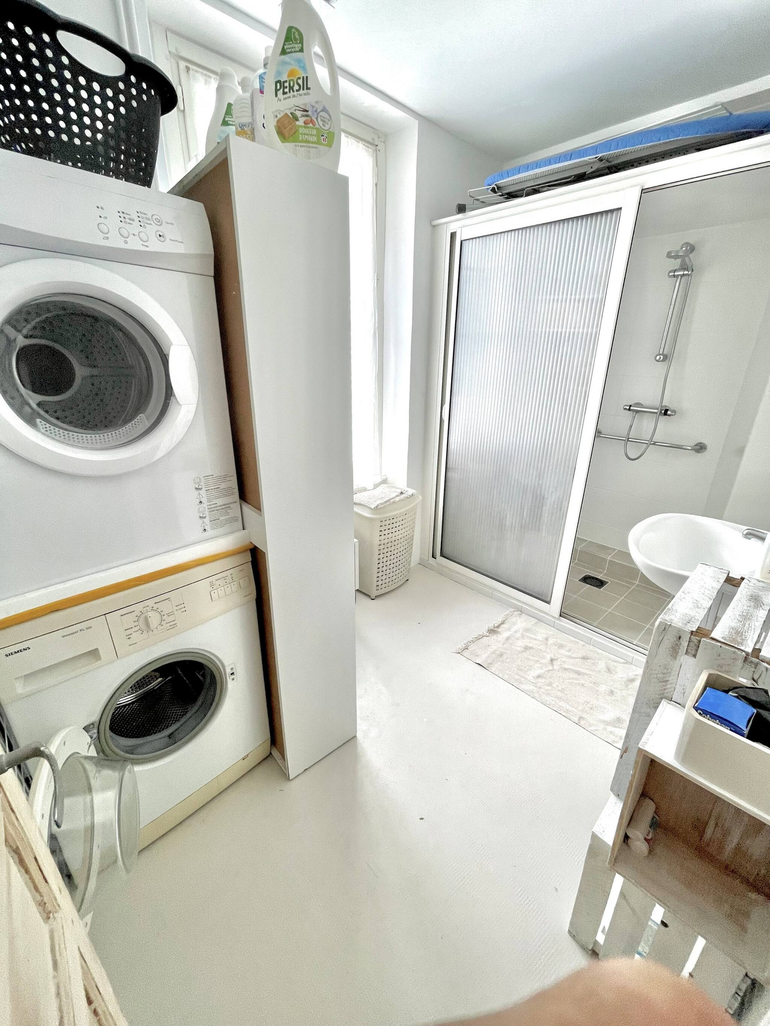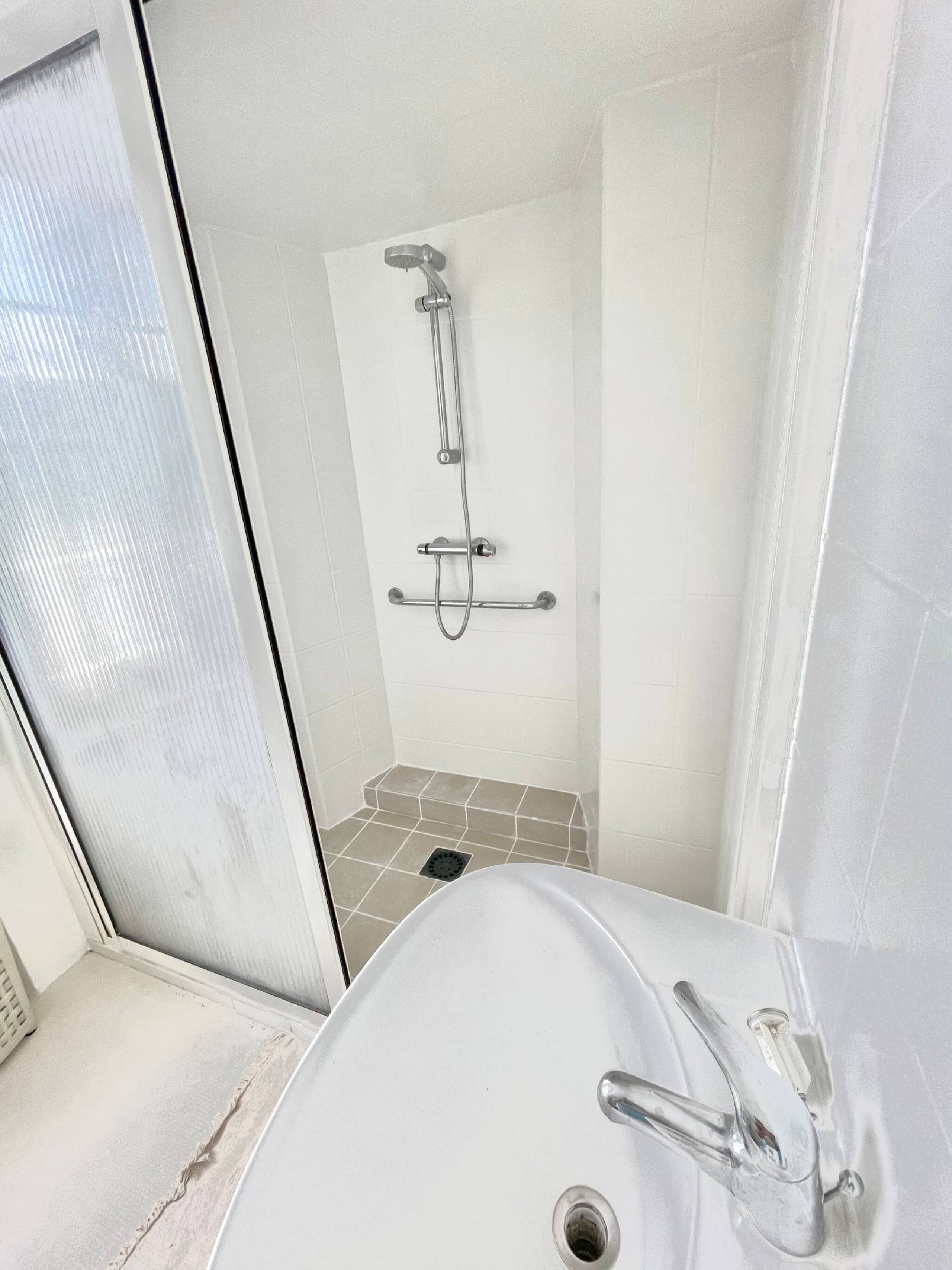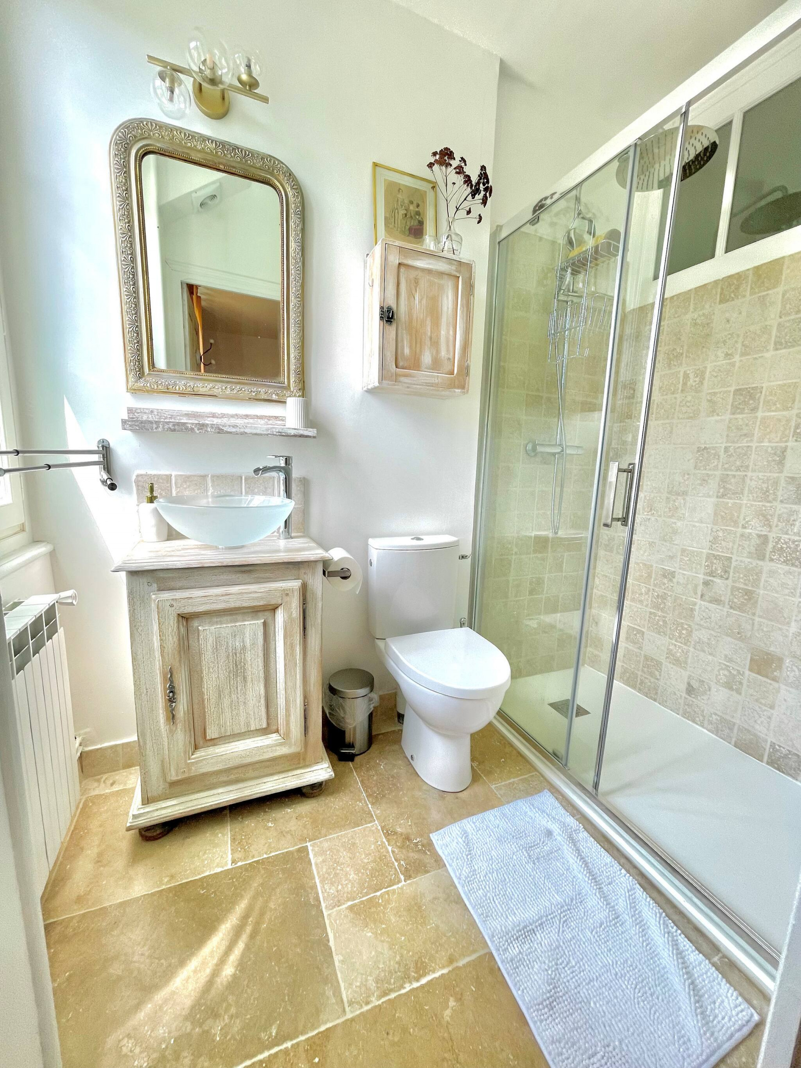 -1 double salle de bain avec : 1 lavabo, 2 douches indépendantes, 1 lavabo enfant, 1 wc enfant, 1 chauffage sèche-serviettes