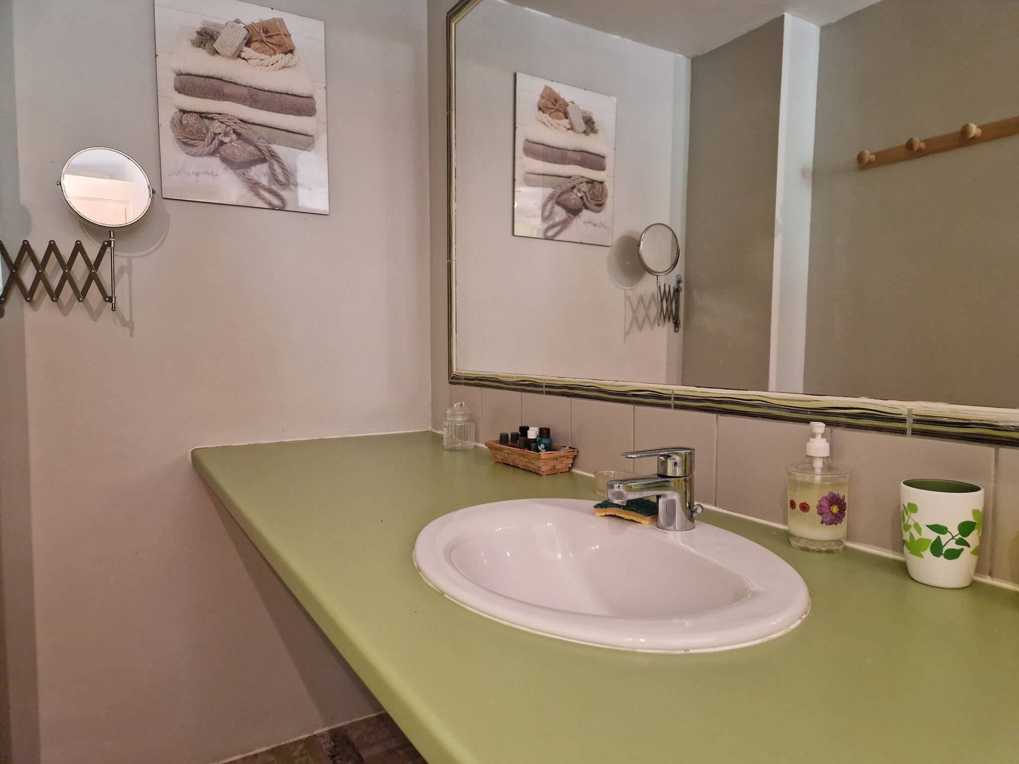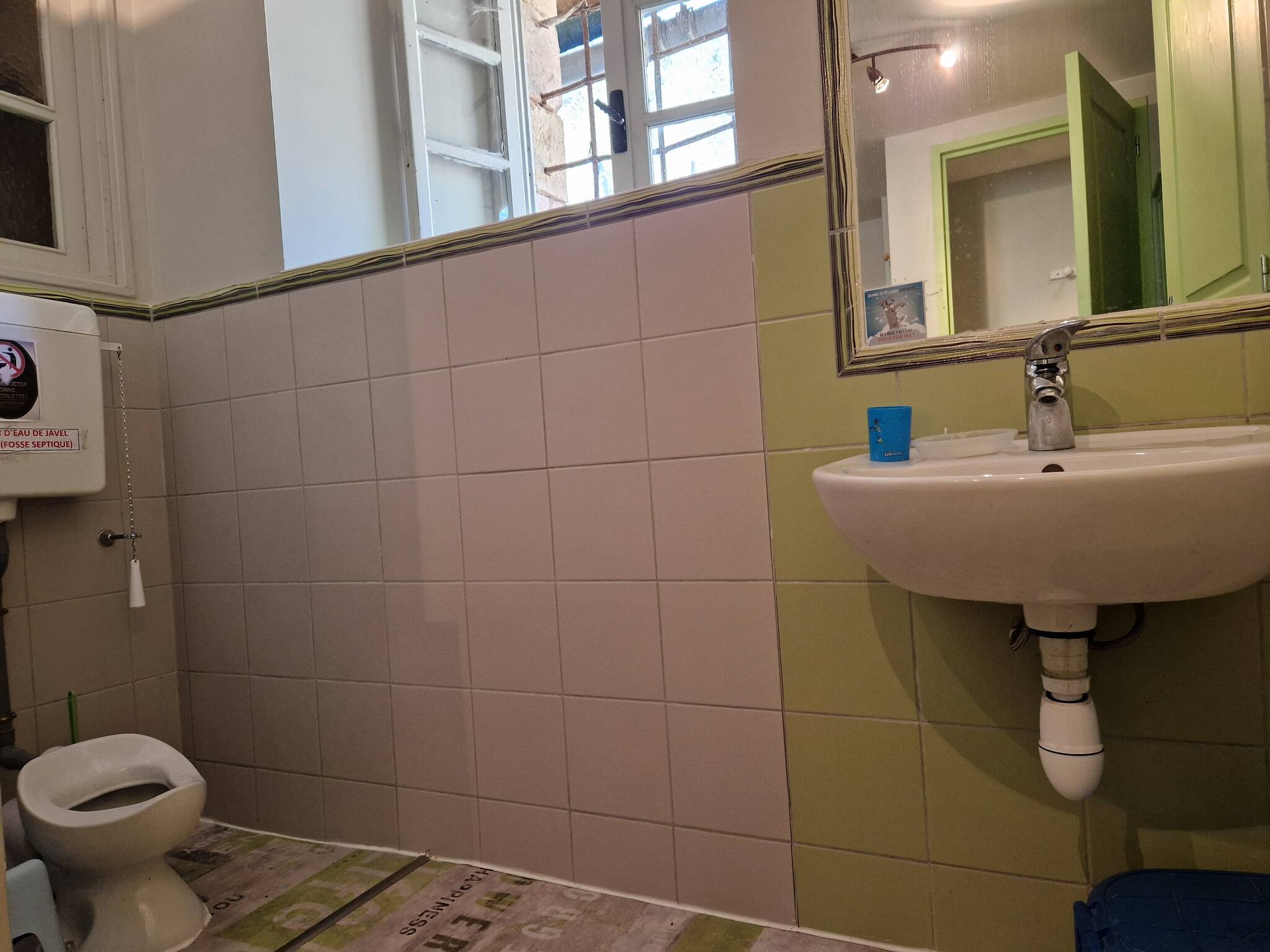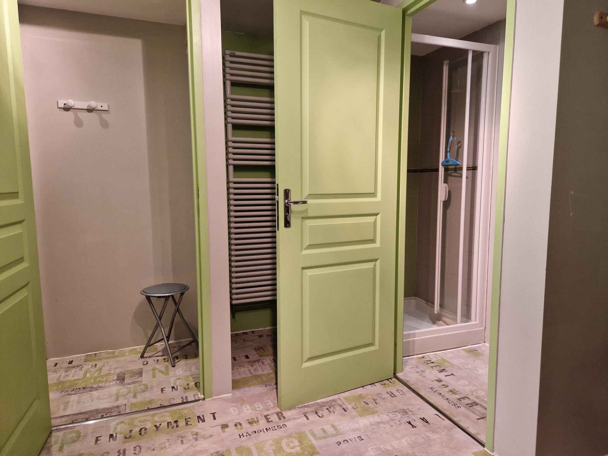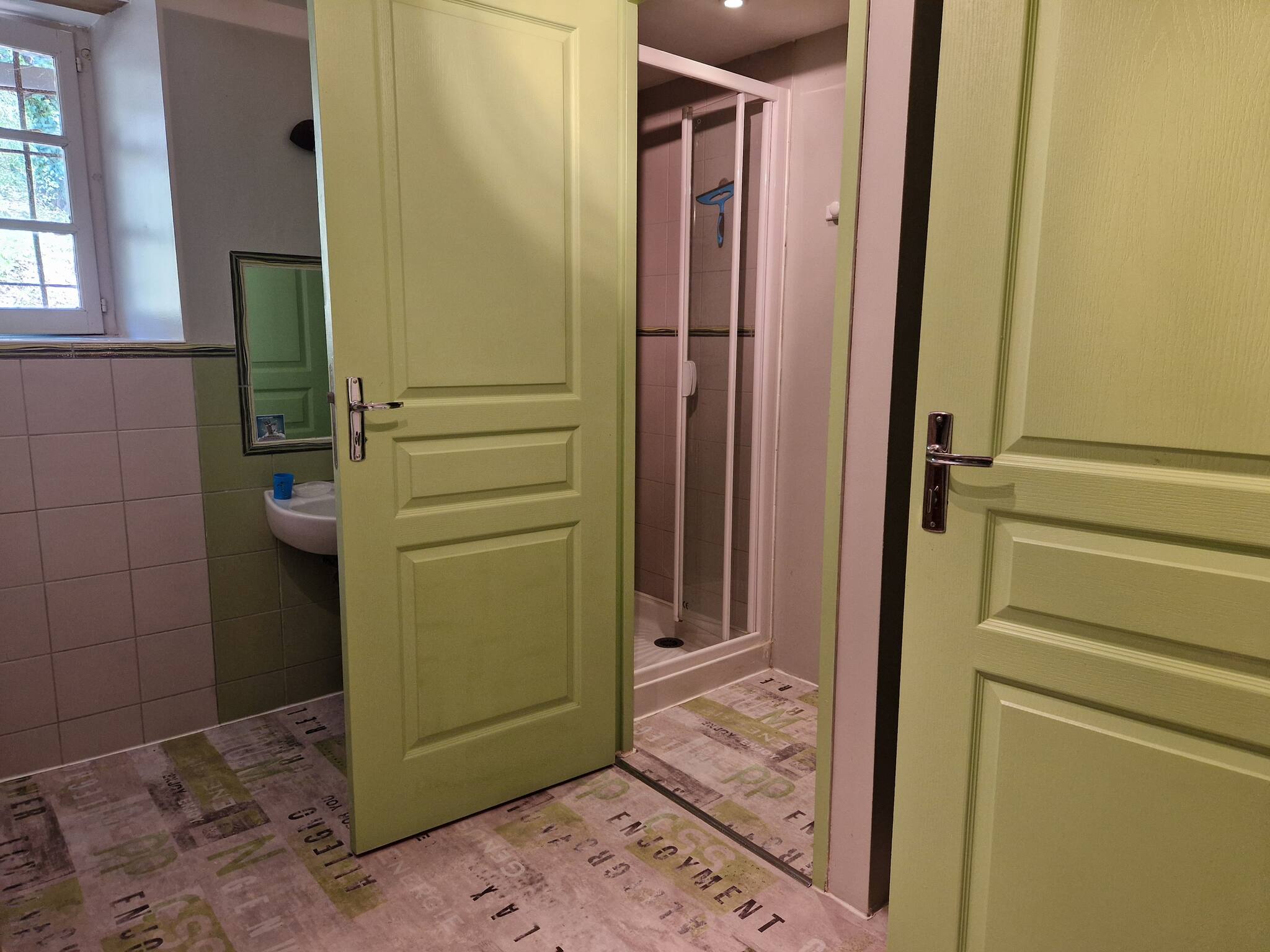 -1 double salle de bain avec : 1 lavabo, 2 douches indépendantes, 1 lavabo enfant, 1 wc enfant, 1 chauffage sèche-serviettes