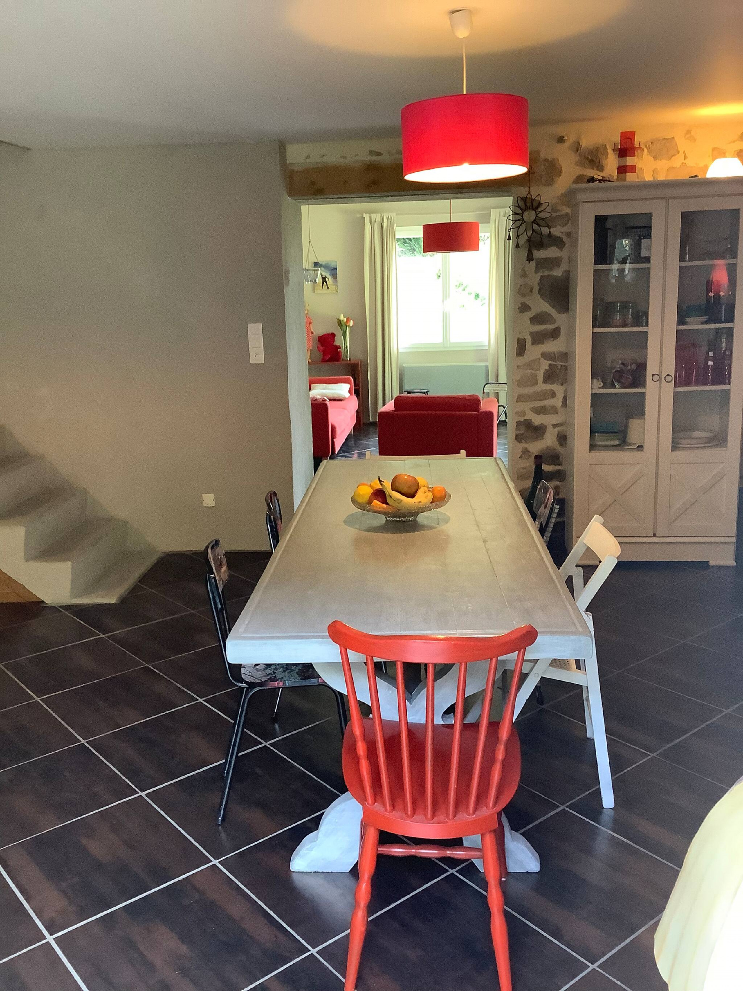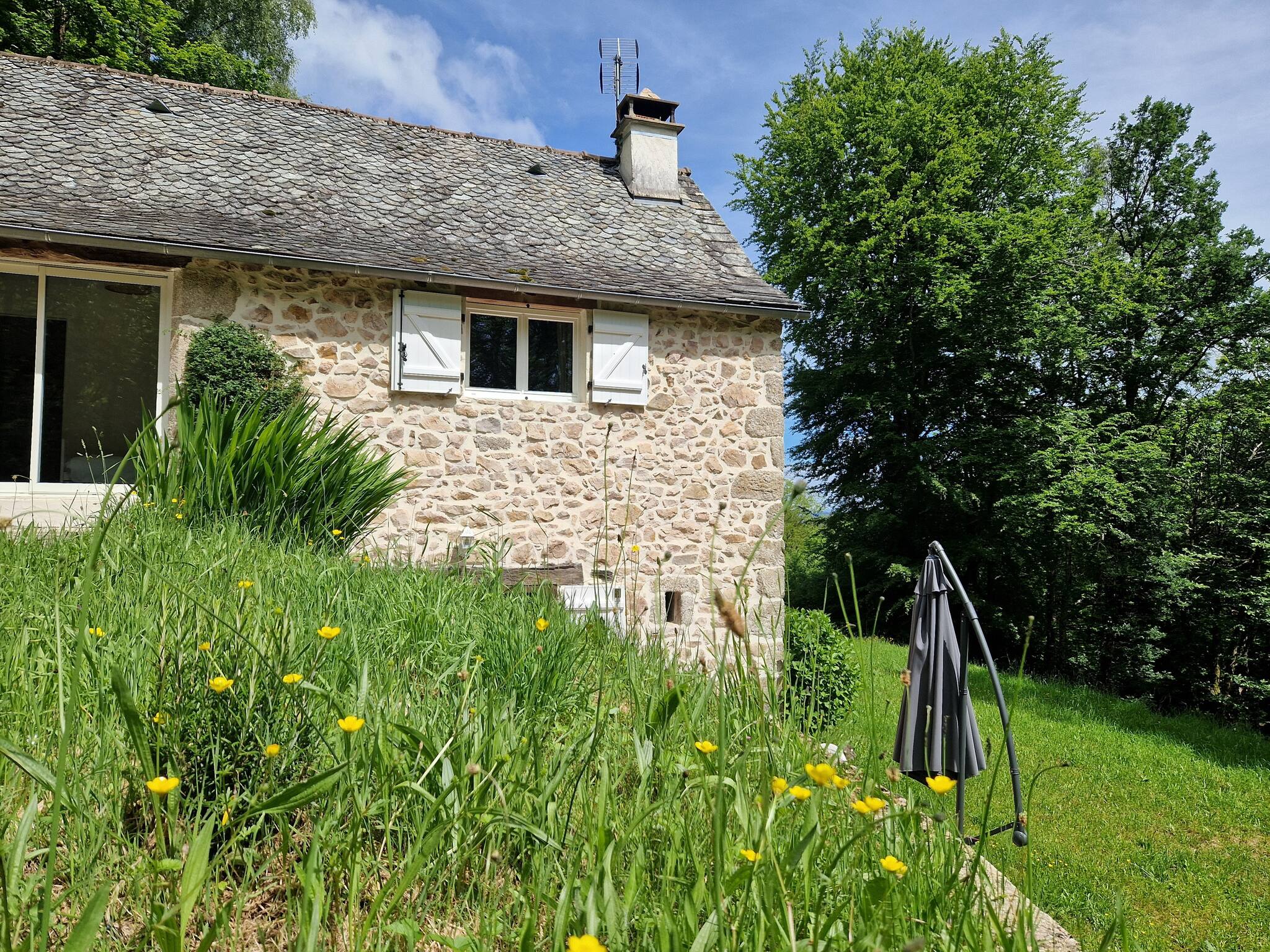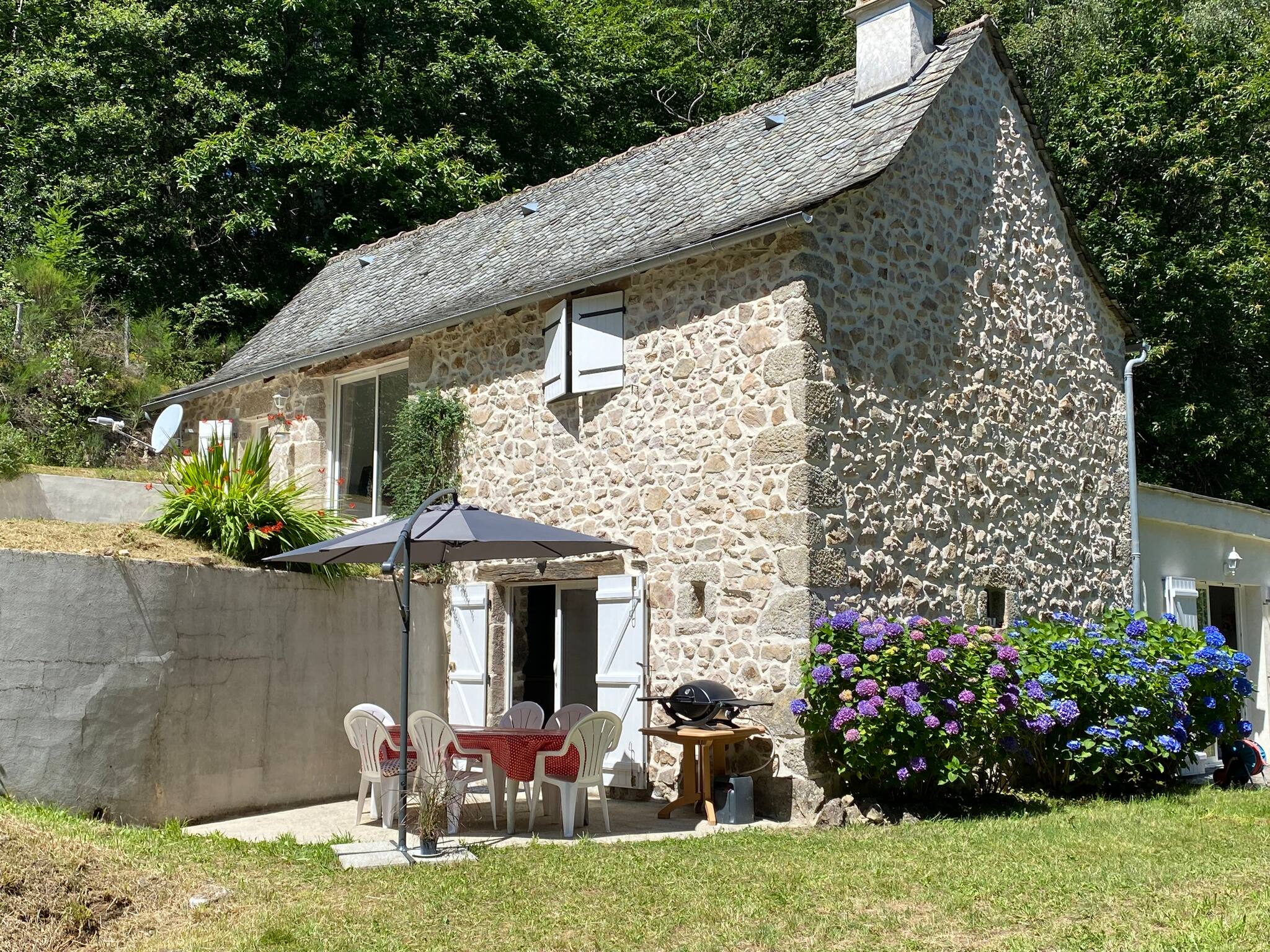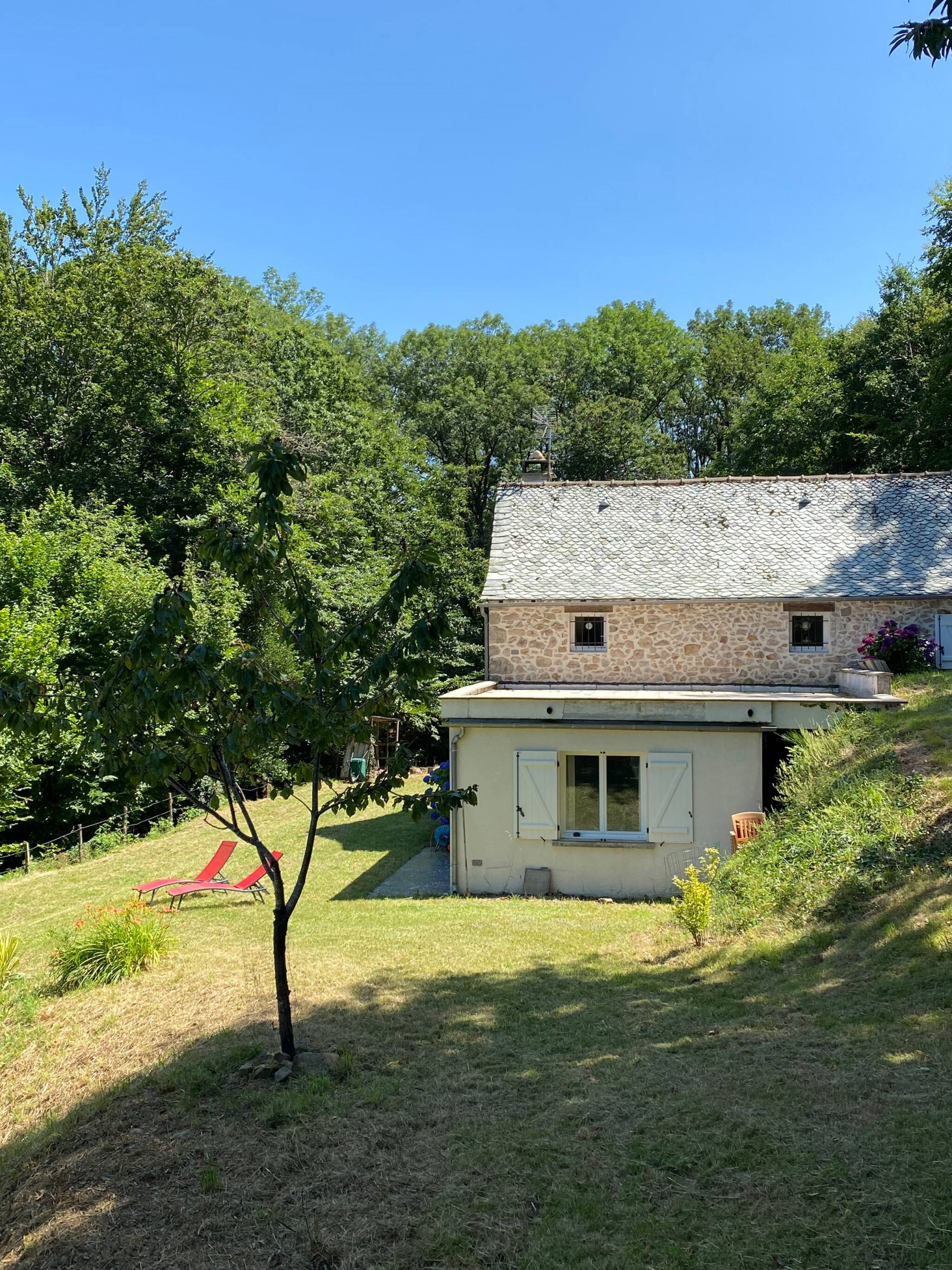 Notre charmante maison, répartie sur deux étages, offre trois chambres confortables : deux avec lits doubles et une avec un lit simple. L'espace de vie chaleureux et moderne crée une ambiance accueillante pour tous les invités. Profitez de moments de détente sur la jolie terrasse équipée d'un barbecue, idéale pour des repas en plein air. Le spacieux parc de 9000m² qui enveloppe la propriété crée un havre de paix au cœur de la nature aveyronnaise.