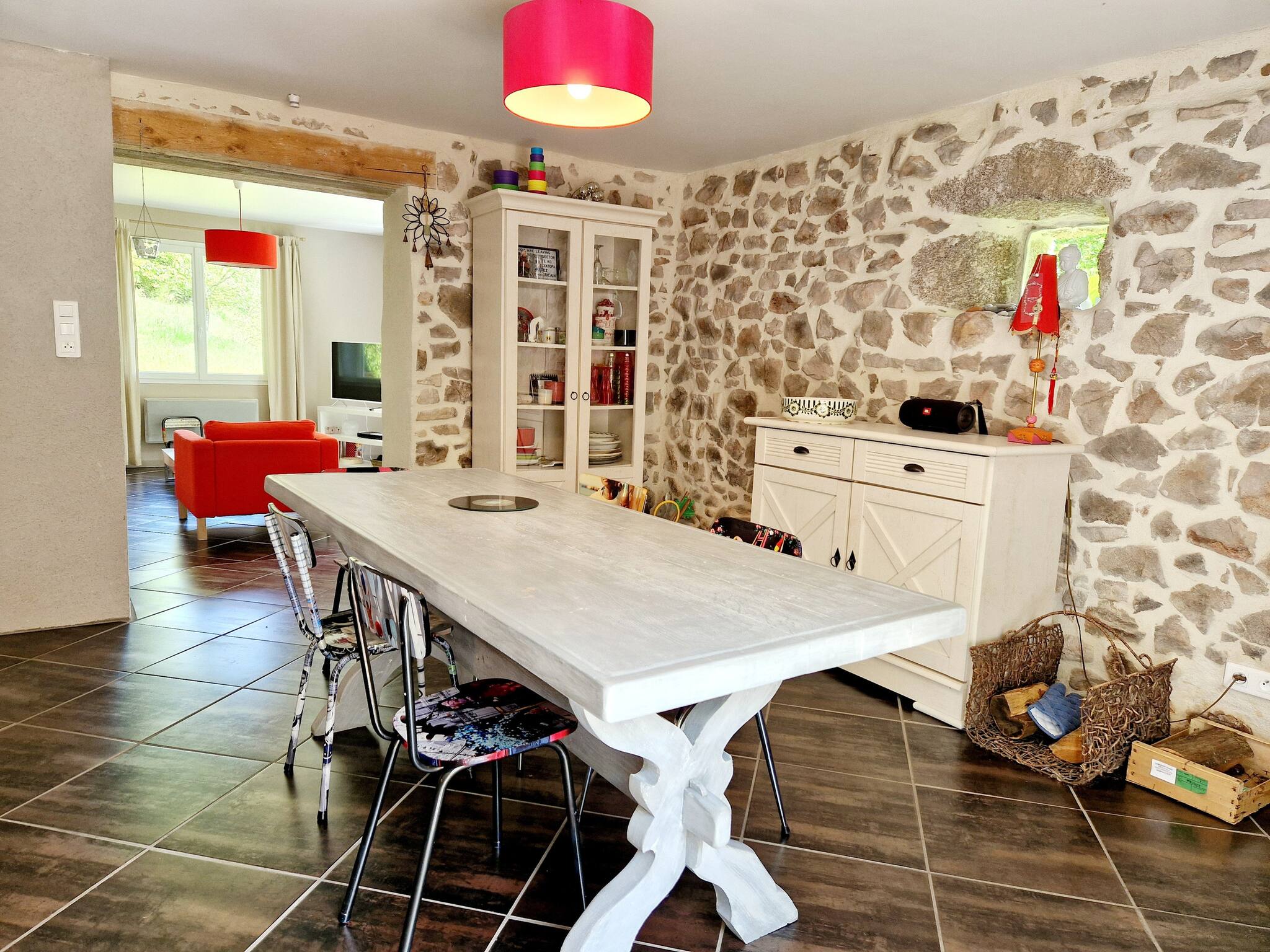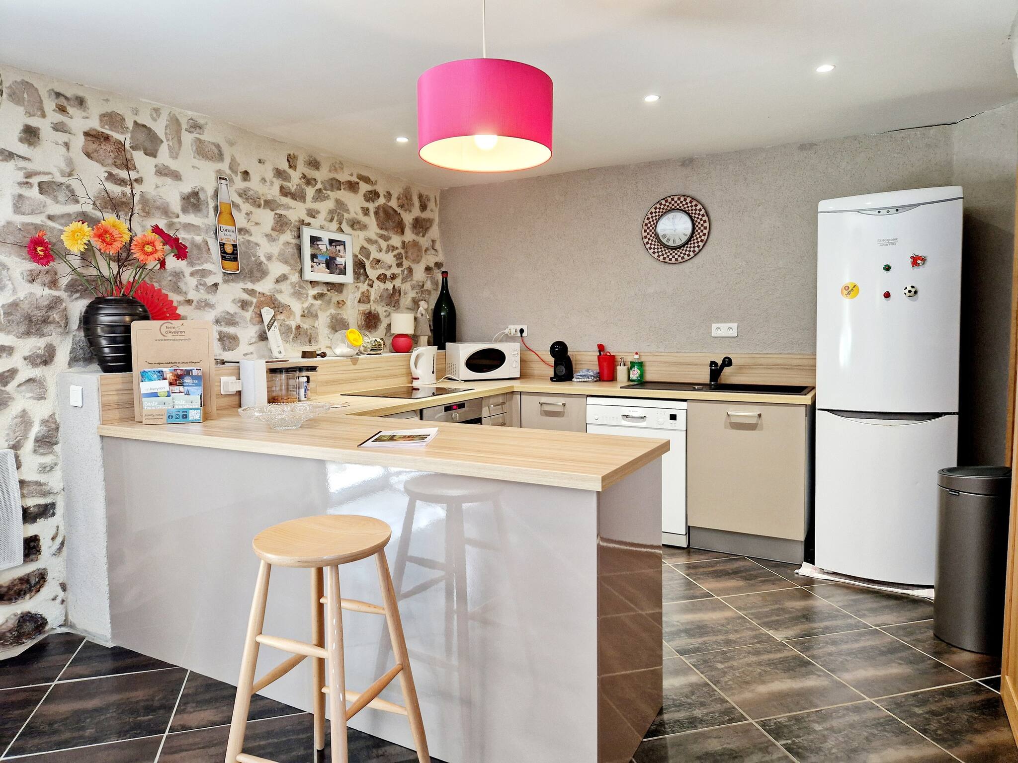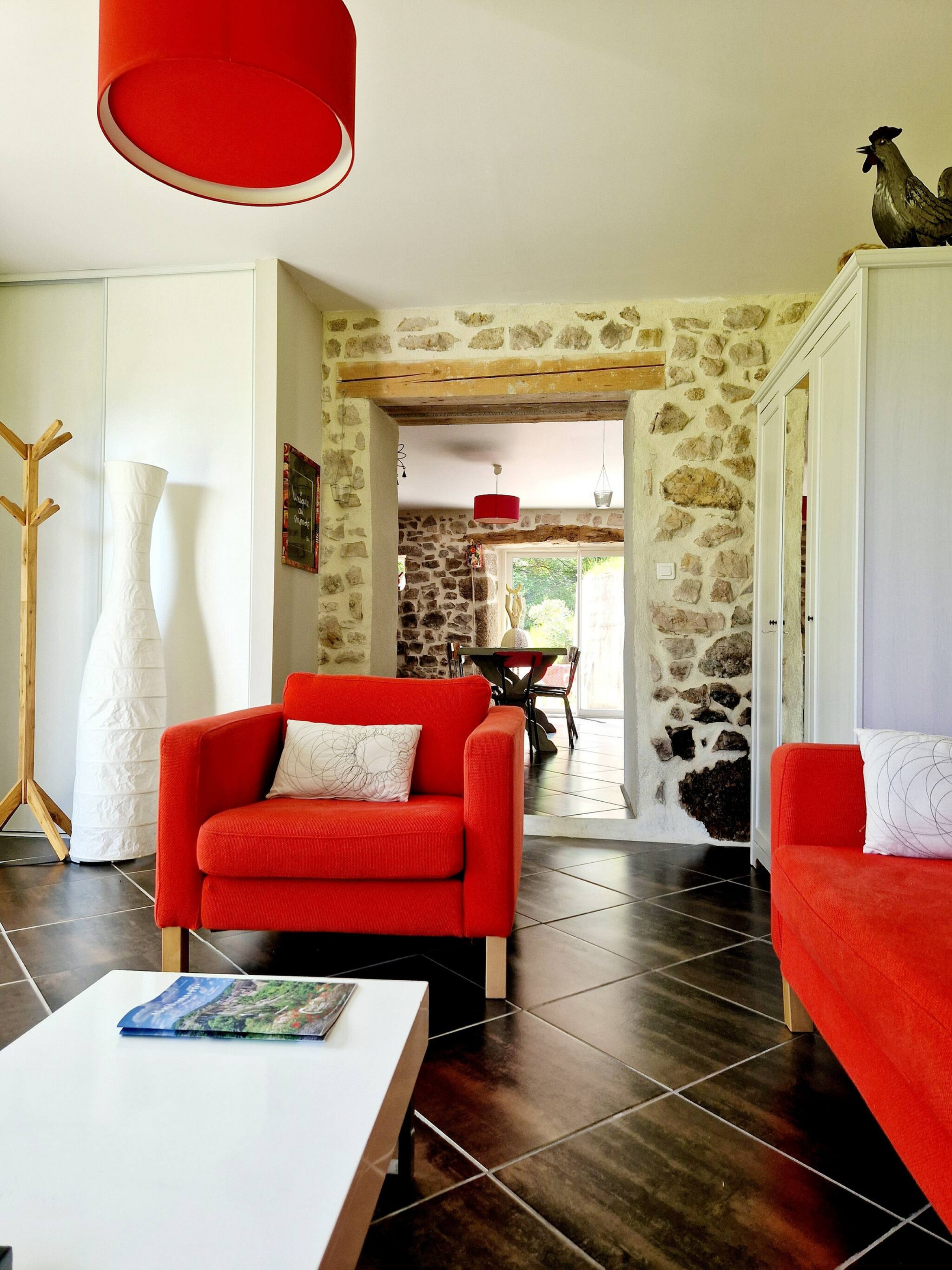 Notre charmante maison, répartie sur deux étages, offre trois chambres confortables : deux avec lits doubles et une avec un lit simple. L'espace de vie chaleureux et moderne crée une ambiance accueillante pour tous les invités. Profitez de moments de détente sur la jolie terrasse équipée d'un barbecue, idéale pour des repas en plein air. Le spacieux parc de 9000m² qui enveloppe la propriété crée un havre de paix au cœur de la nature aveyronnaise.