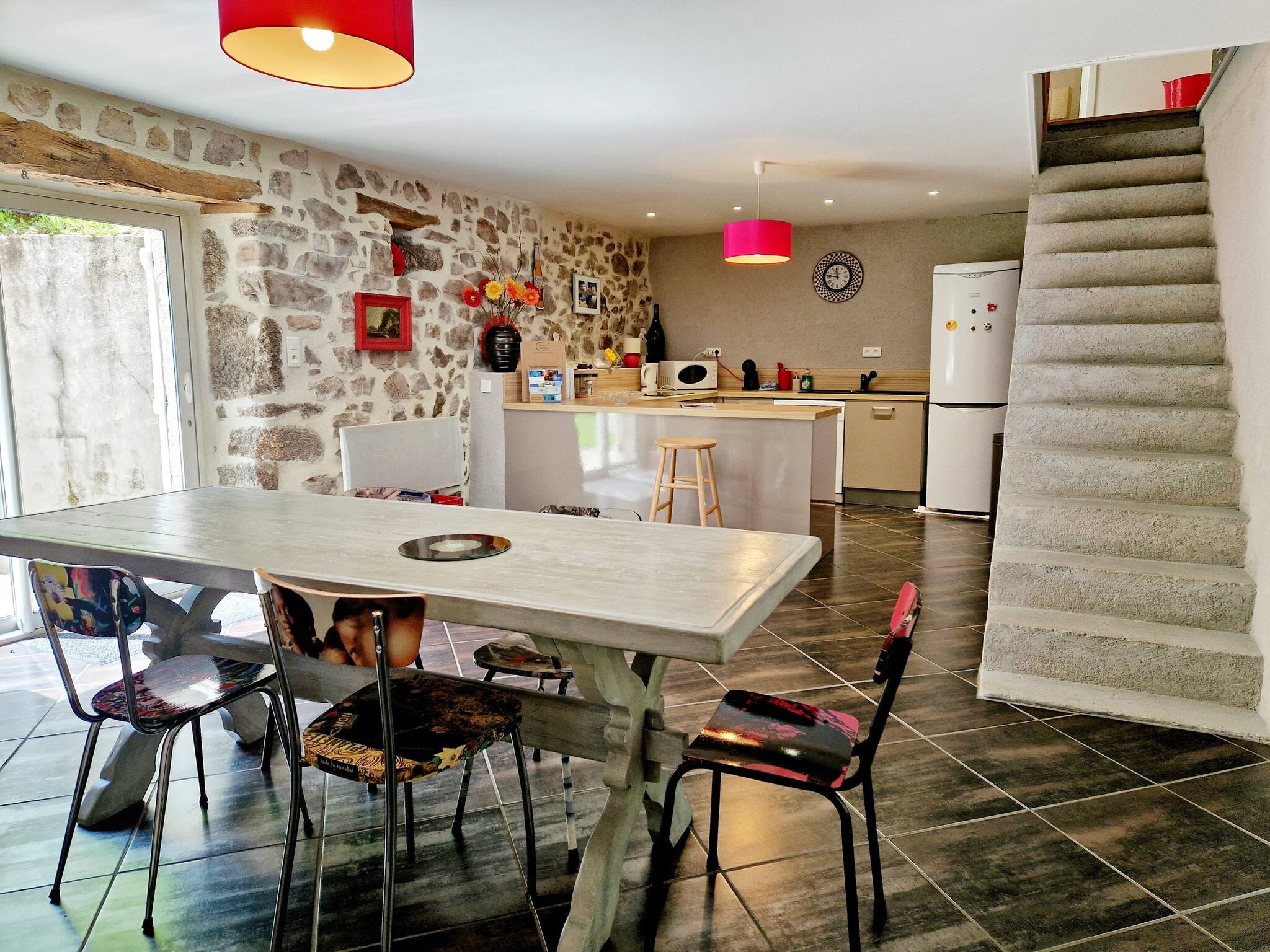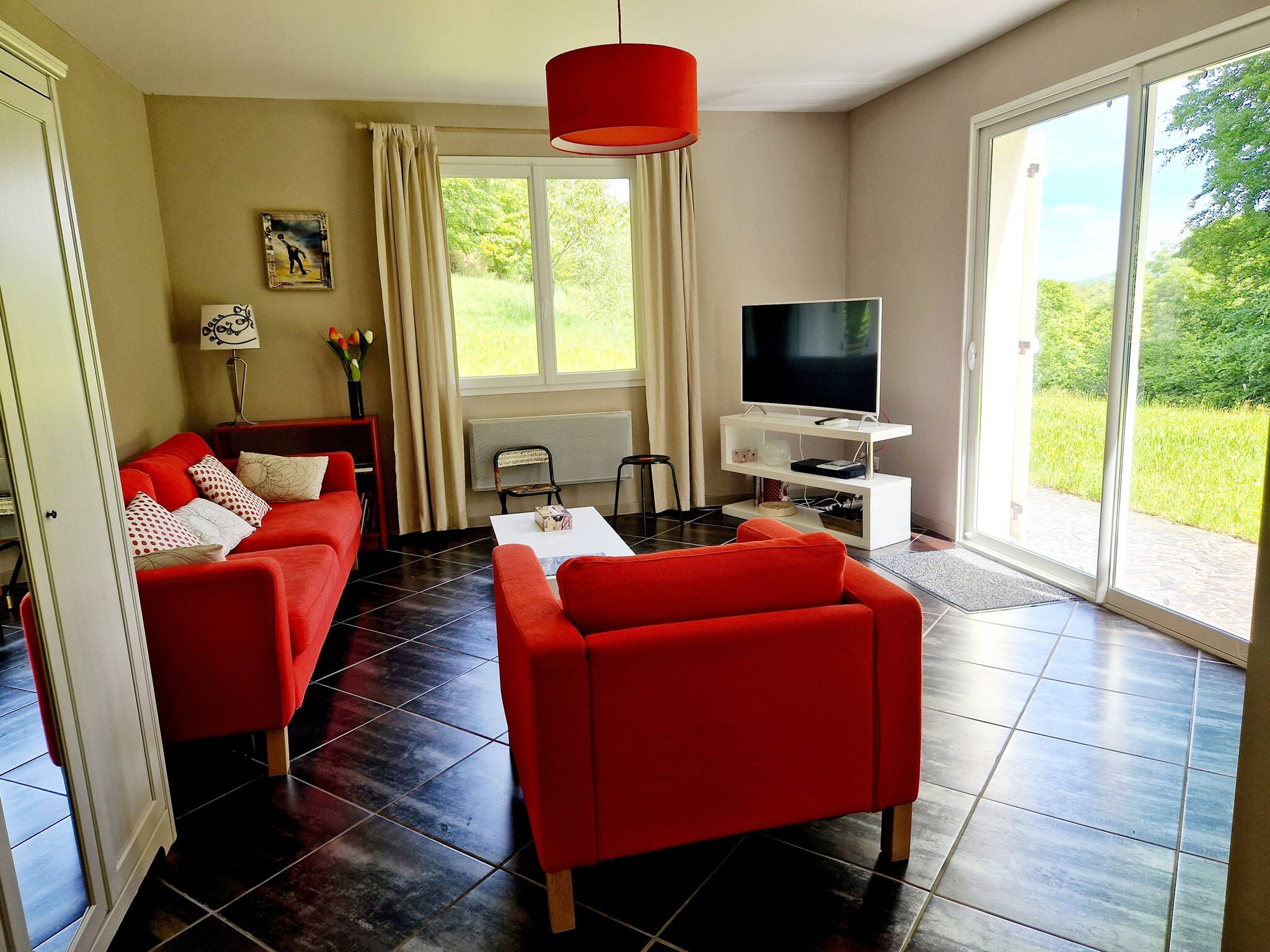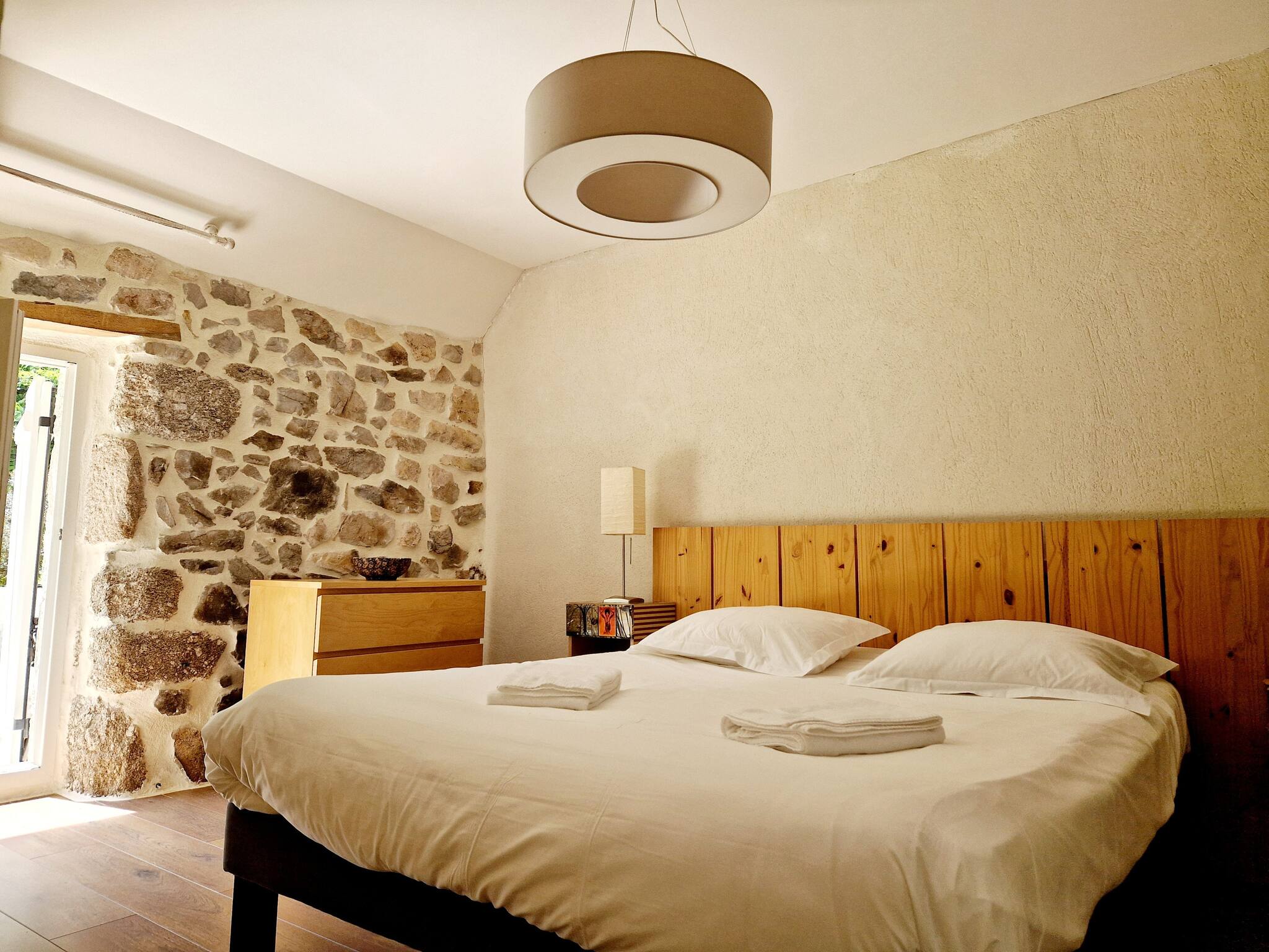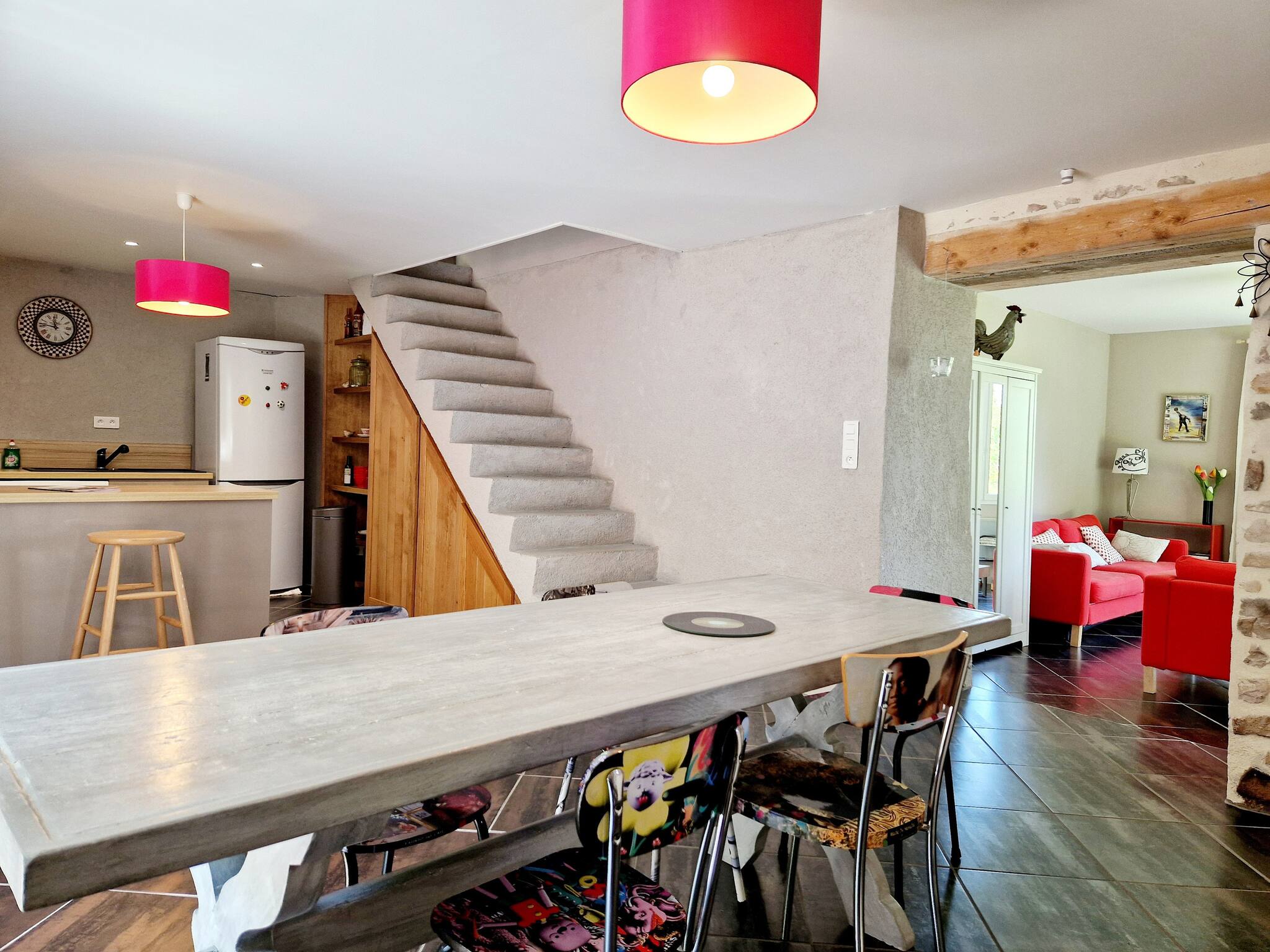 Notre charmante maison, répartie sur deux étages, offre trois chambres confortables : deux avec lits doubles et une avec un lit simple. L'espace de vie chaleureux et moderne crée une ambiance accueillante pour tous les invités. Profitez de moments de détente sur la jolie terrasse équipée d'un barbecue, idéale pour des repas en plein air. Le spacieux parc de 9000m² qui enveloppe la propriété crée un havre de paix au cœur de la nature aveyronnaise.