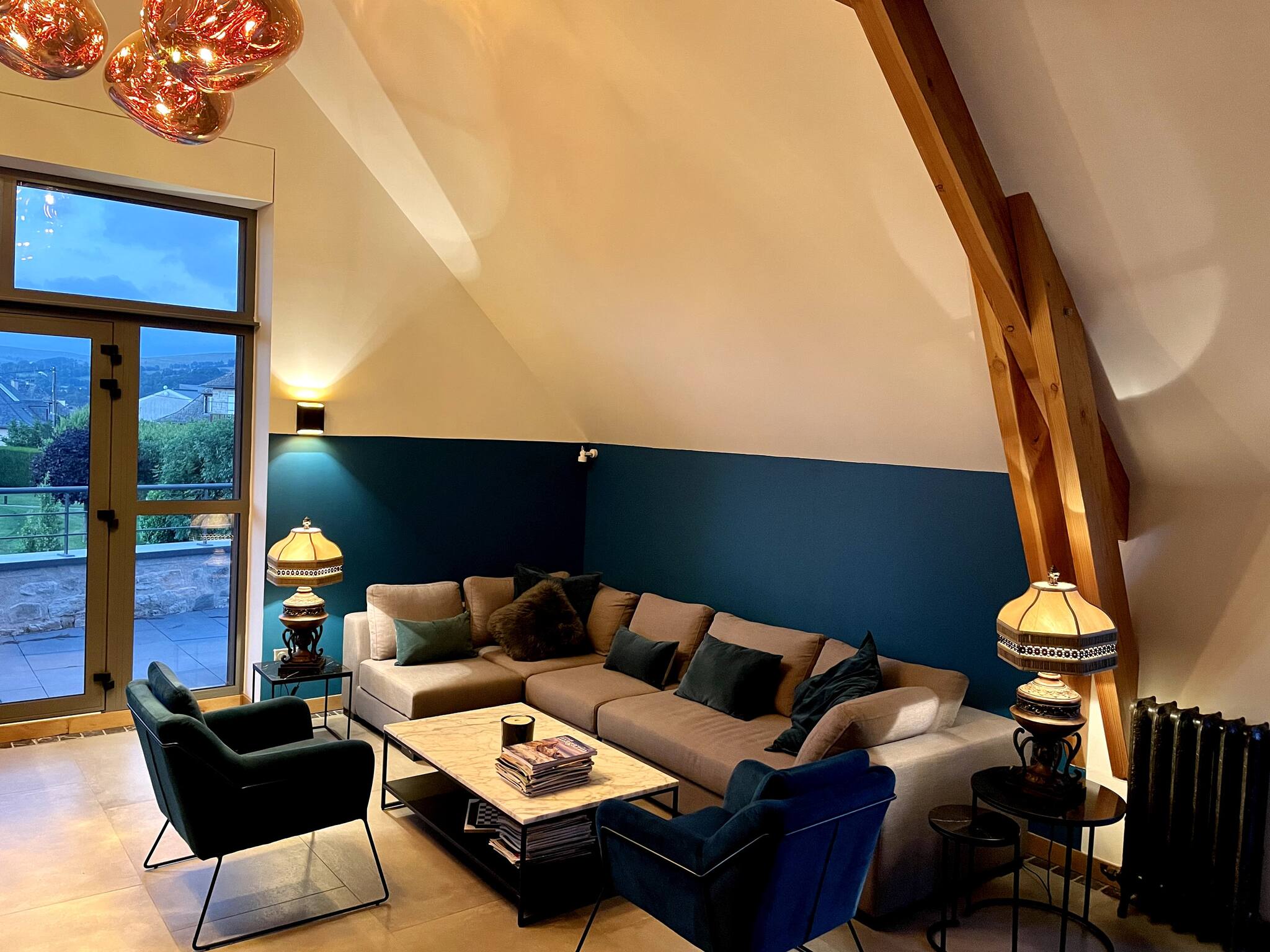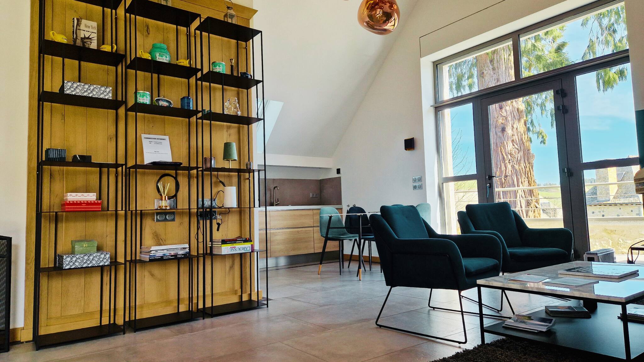 • Pièce à vivre conviviale : cuisine ouverte et salon donnant sur une terrasse avec vue apaisante