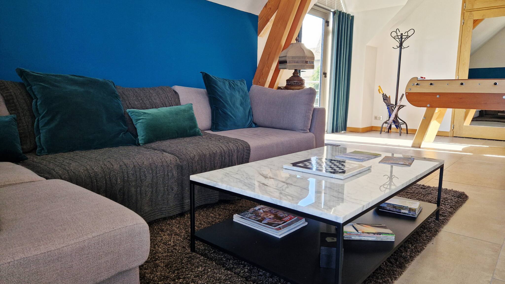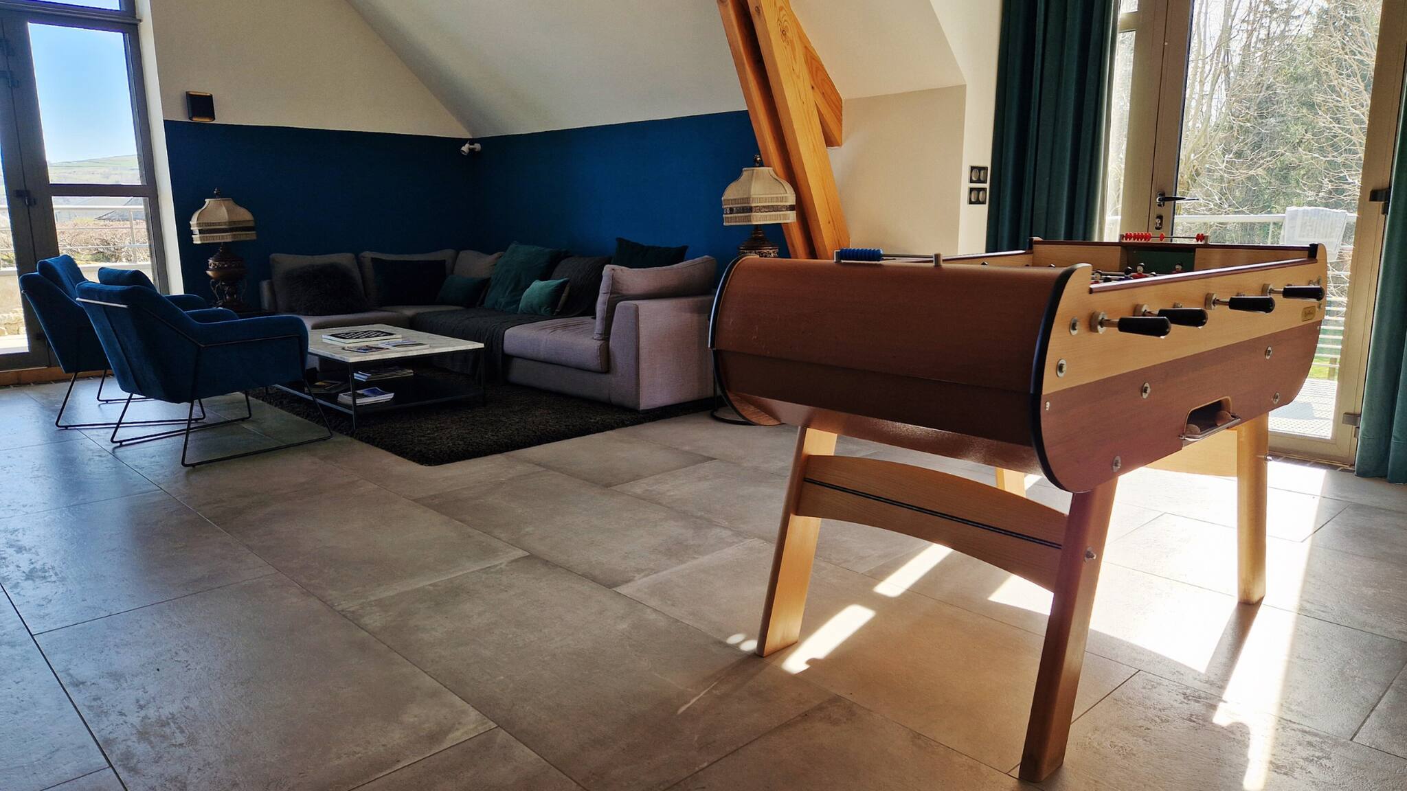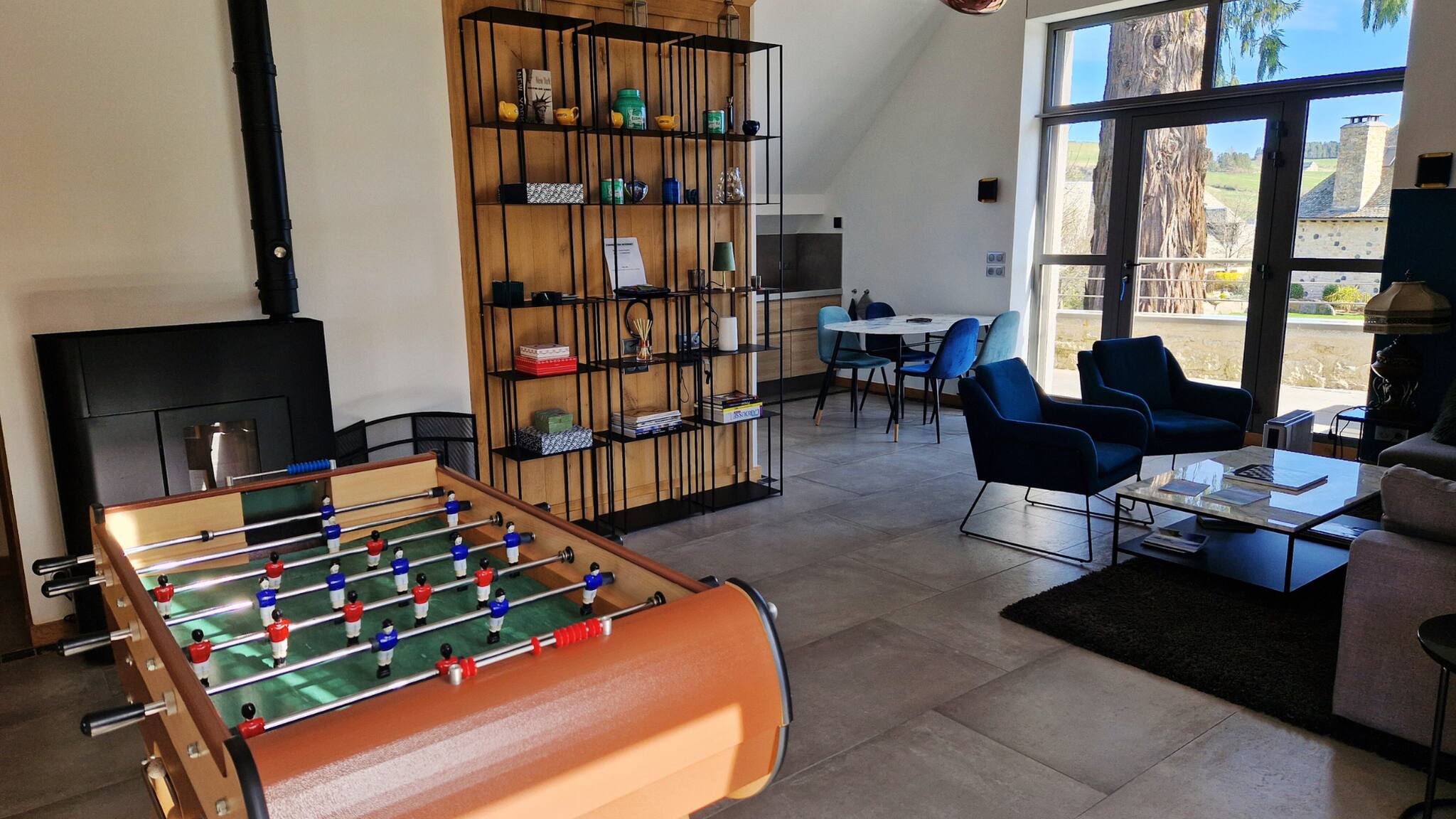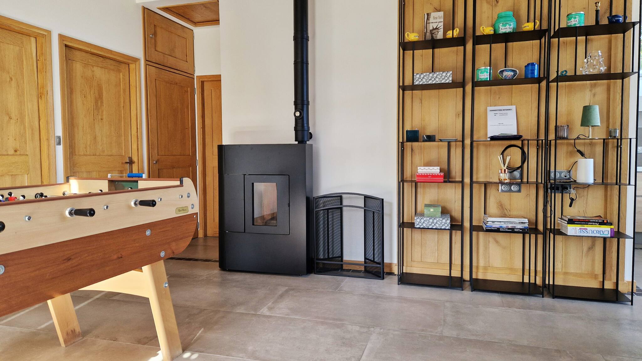 Pour des moments de détente, profitez du baby-foot ou de la chaleur agréable du poêle à granulés.