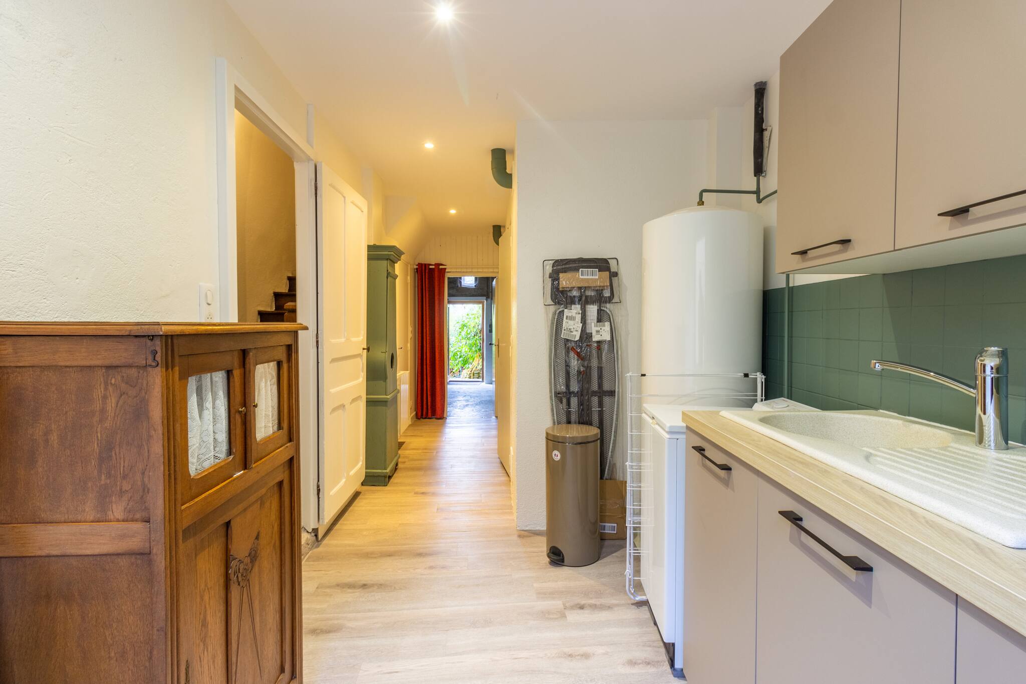Au rez-de-chaussée, un accès privé au jardin vous attend, accompagné d'un local pour les vélos si nécessaire. Une buanderie pratique et une salle d'eau sont également à votre disposition.
