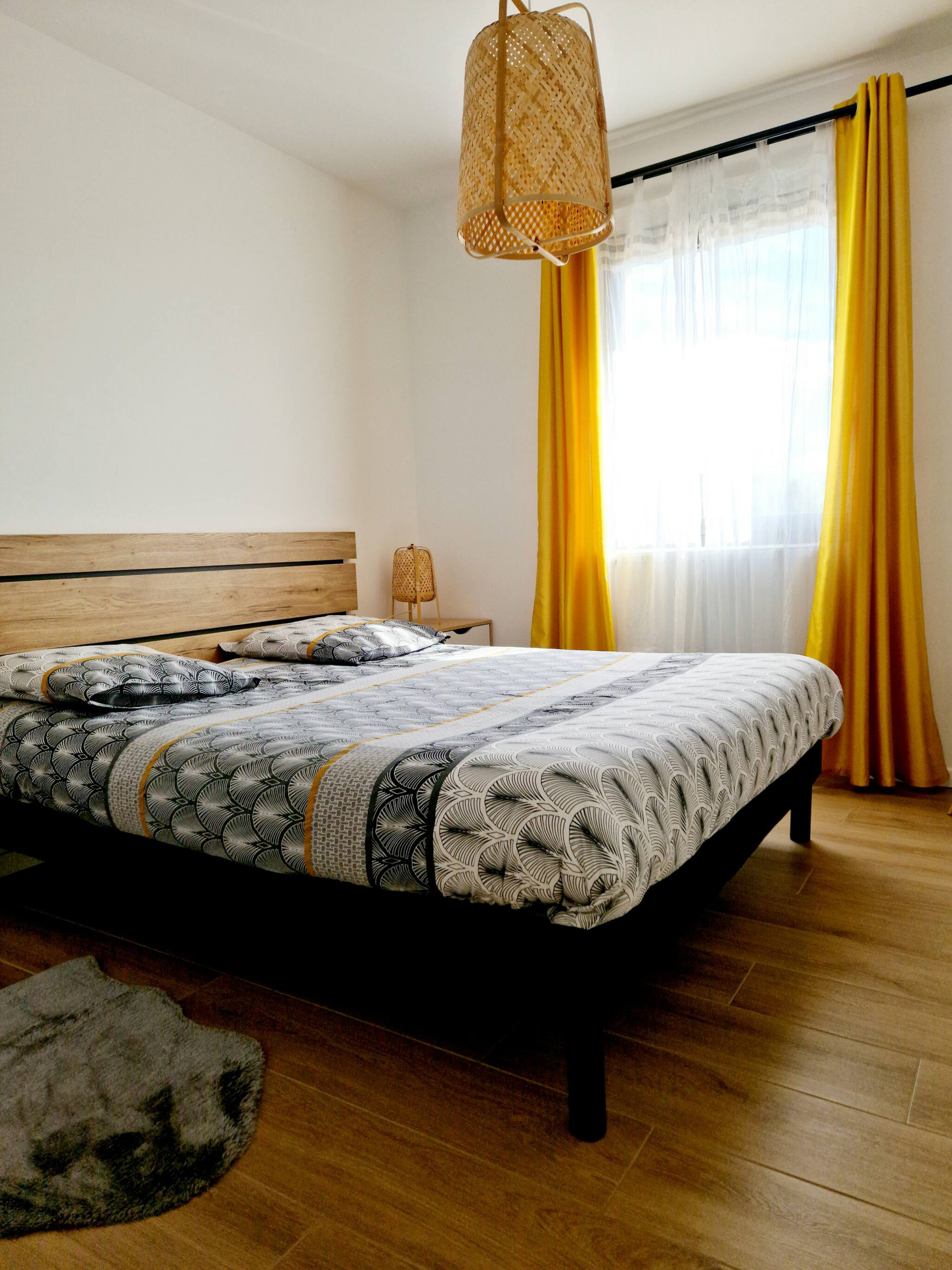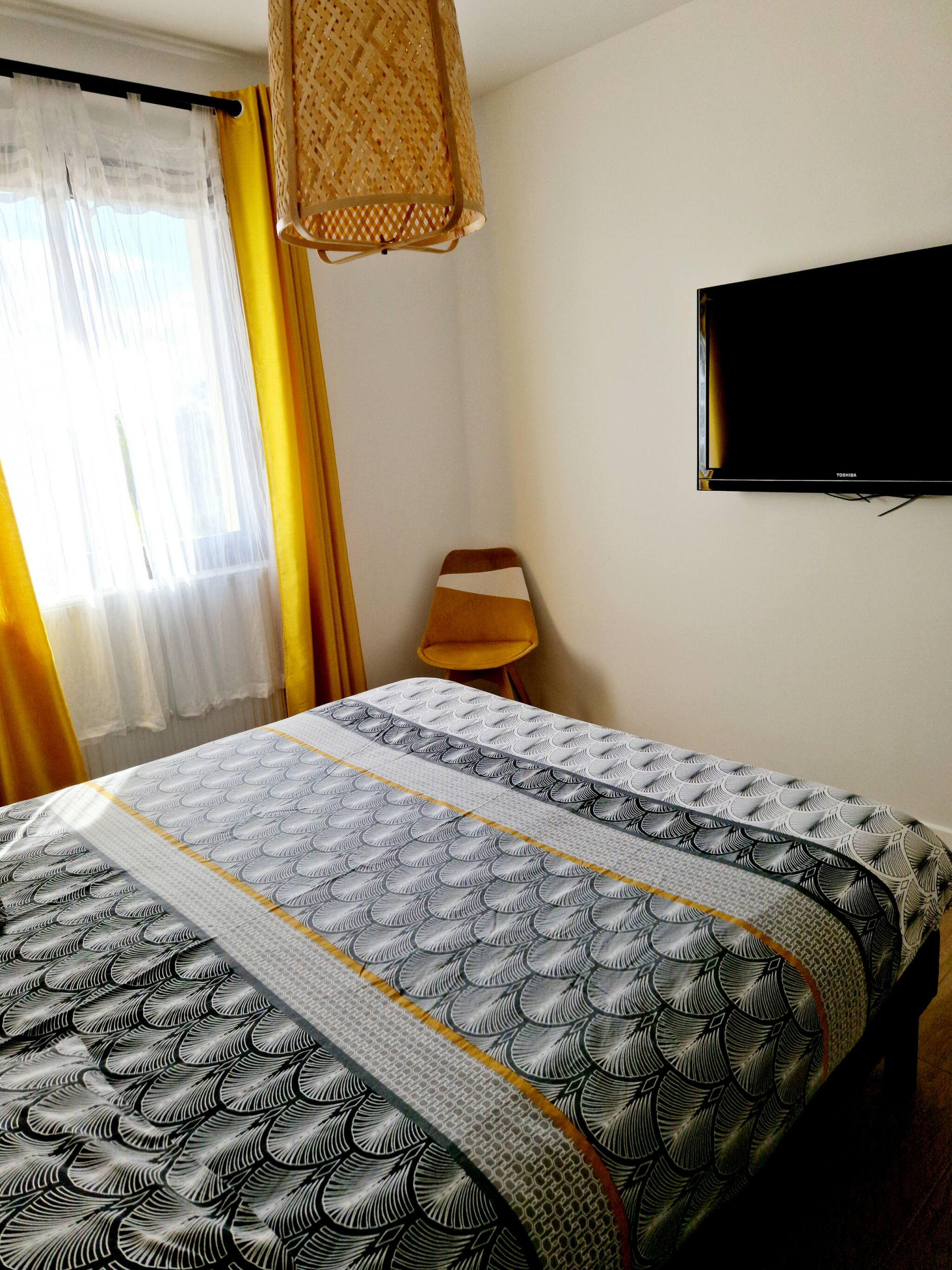 - dans la chambre parentale, un grand lit 160 x 200 et placard de rangement. Tv murale.