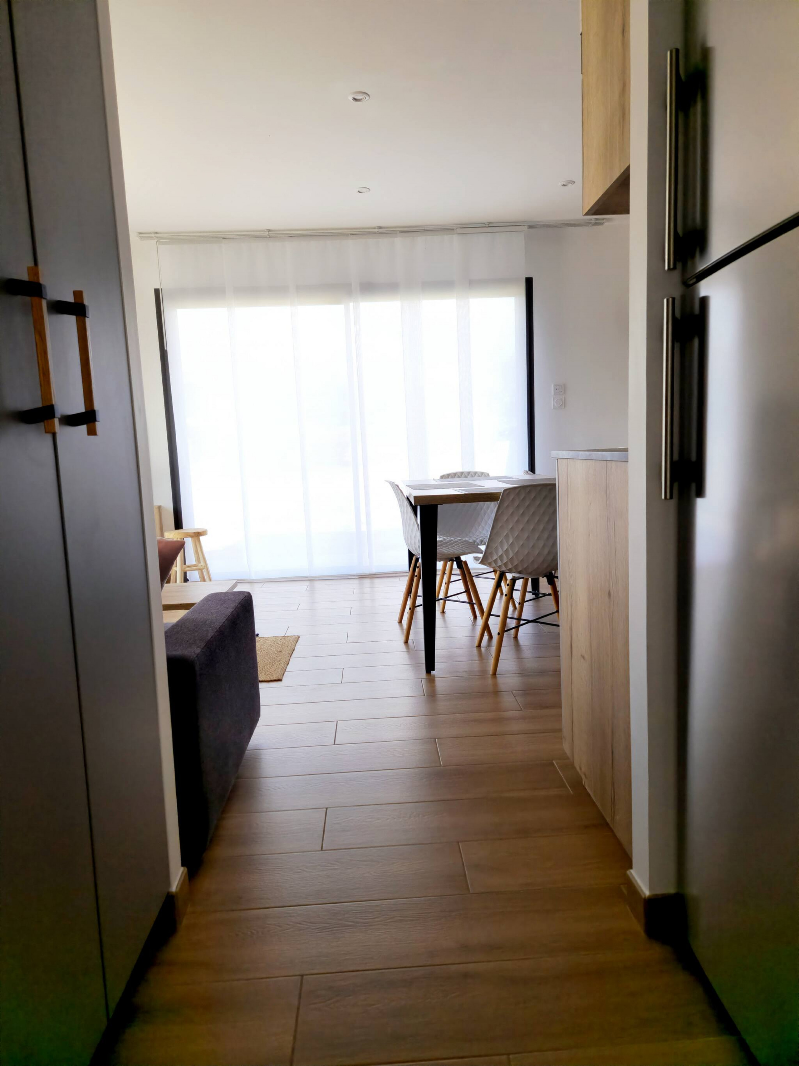 Il est doté d’un espace cuisine/séjour, deux chambres, salle de bain et WC séparés.