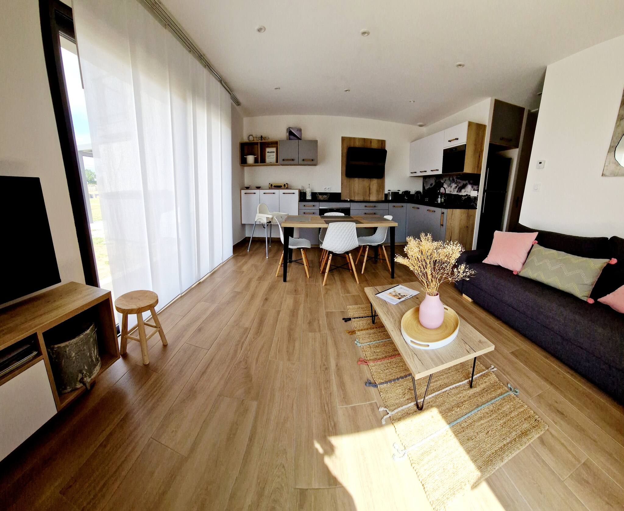 Logement de 55m2 avec terrasse privative de 20m², grand jardin de 000m² accessible et piscine partagée (ouverte du 01/06 au 30/09 de 09h à 19h30). Le gîte est de plain-pied et l’accès est adapté aux personnes à mobilité réduite.