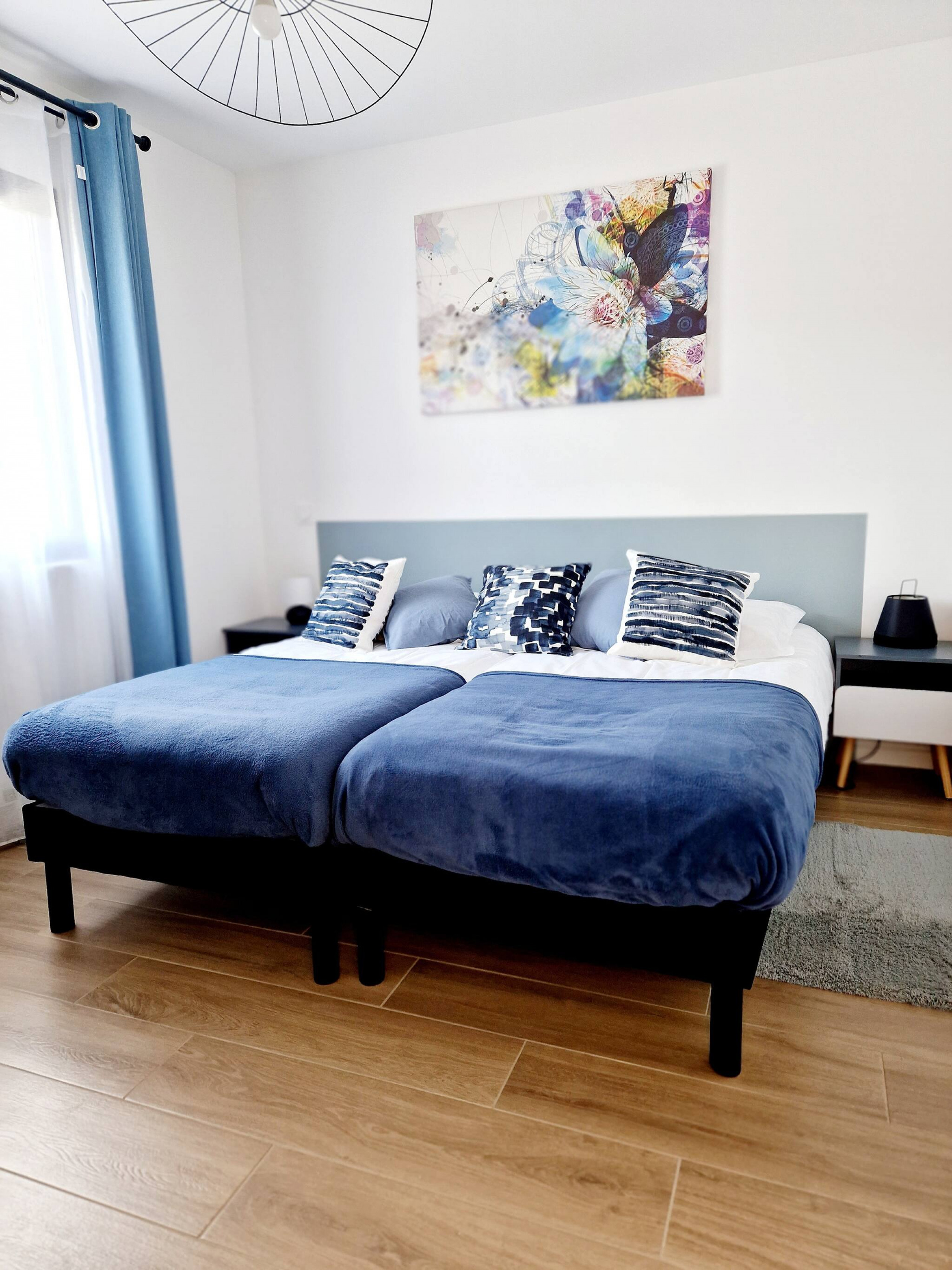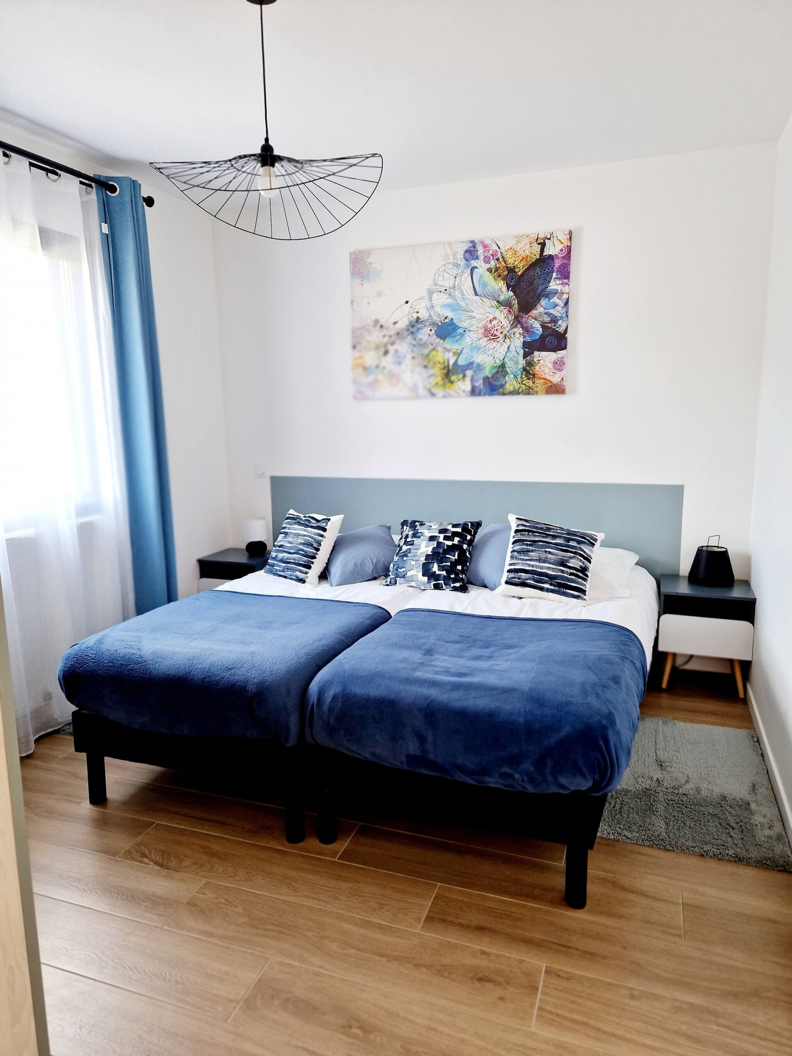 - Dans la seconde chambre, deux lits simples 90 x 200 avec possibilité
