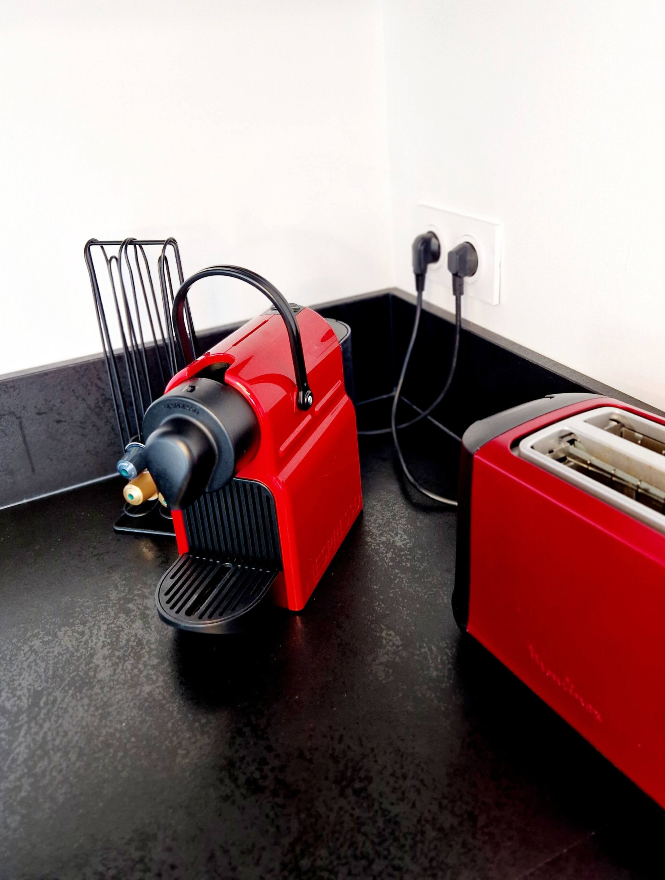 - une bouilloire, une machine à café Nespresso, grille-pain