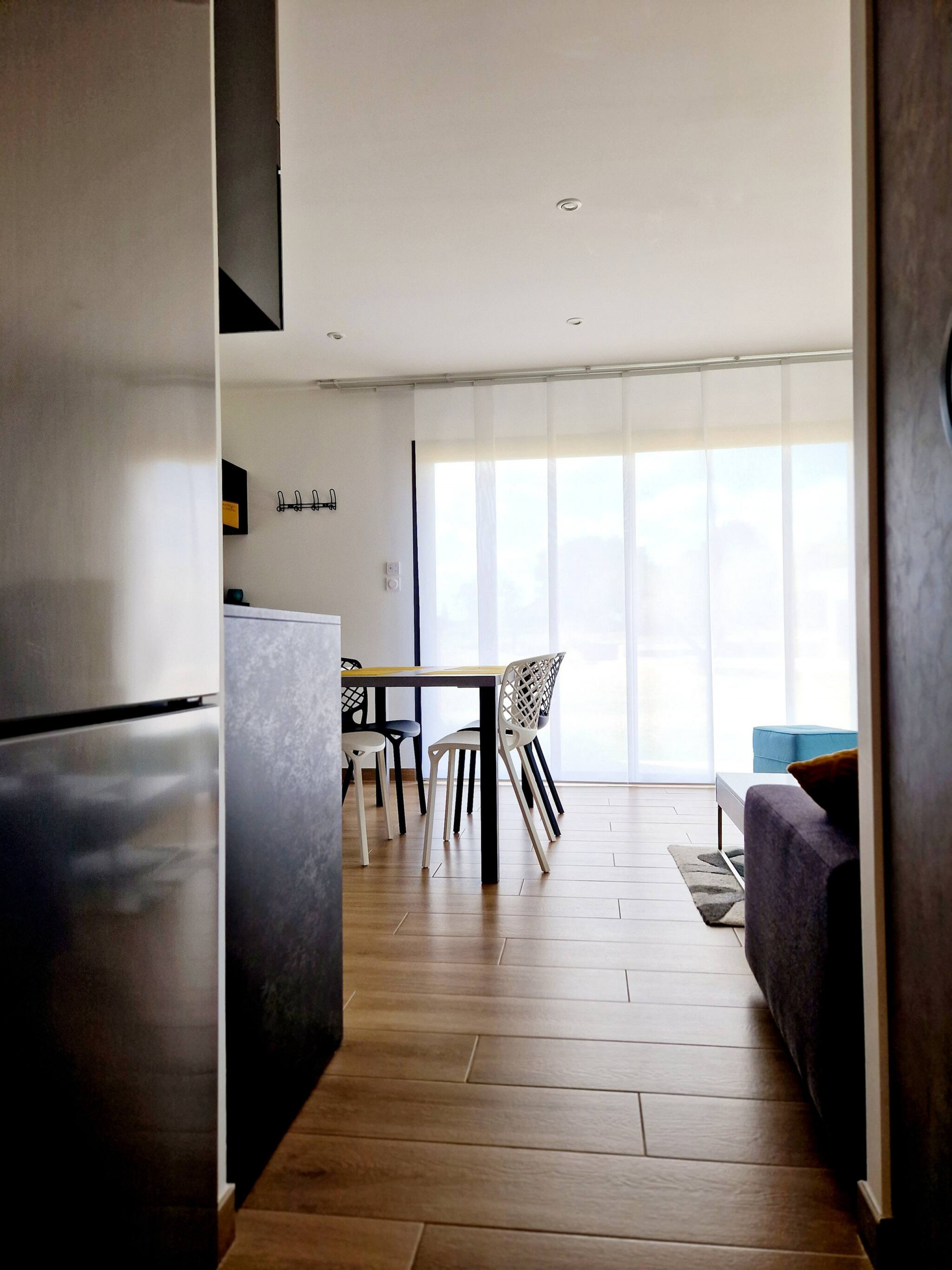 Il est doté d’un espace cuisine/séjour, deux chambres, salle de bain et WC séparés.