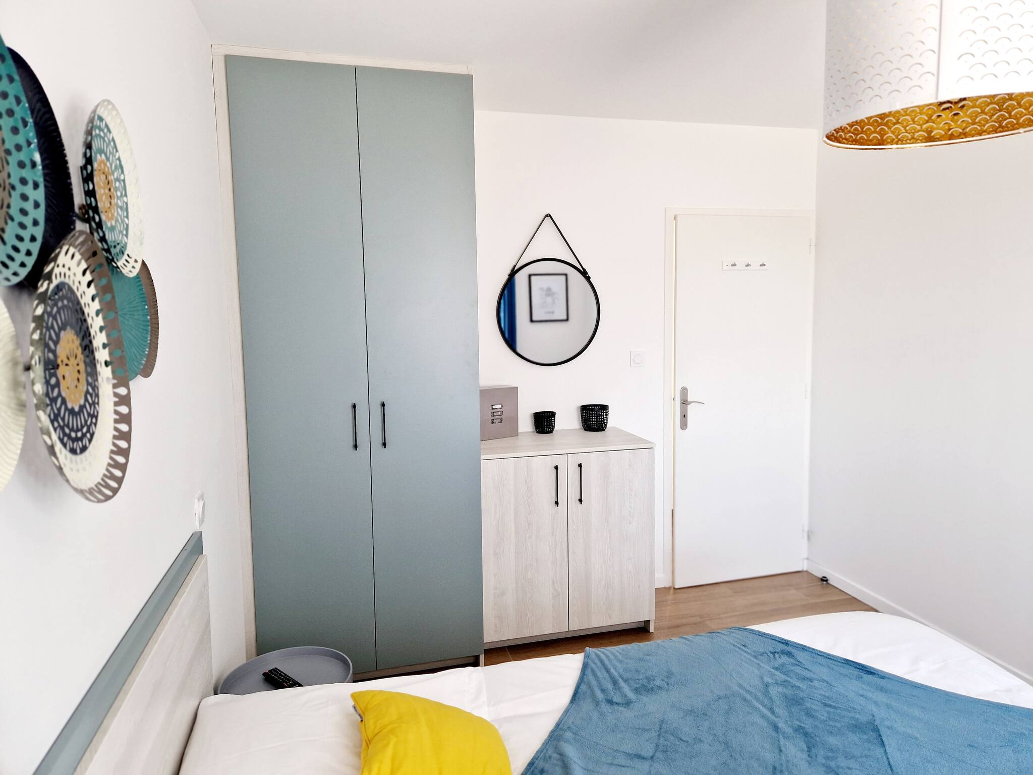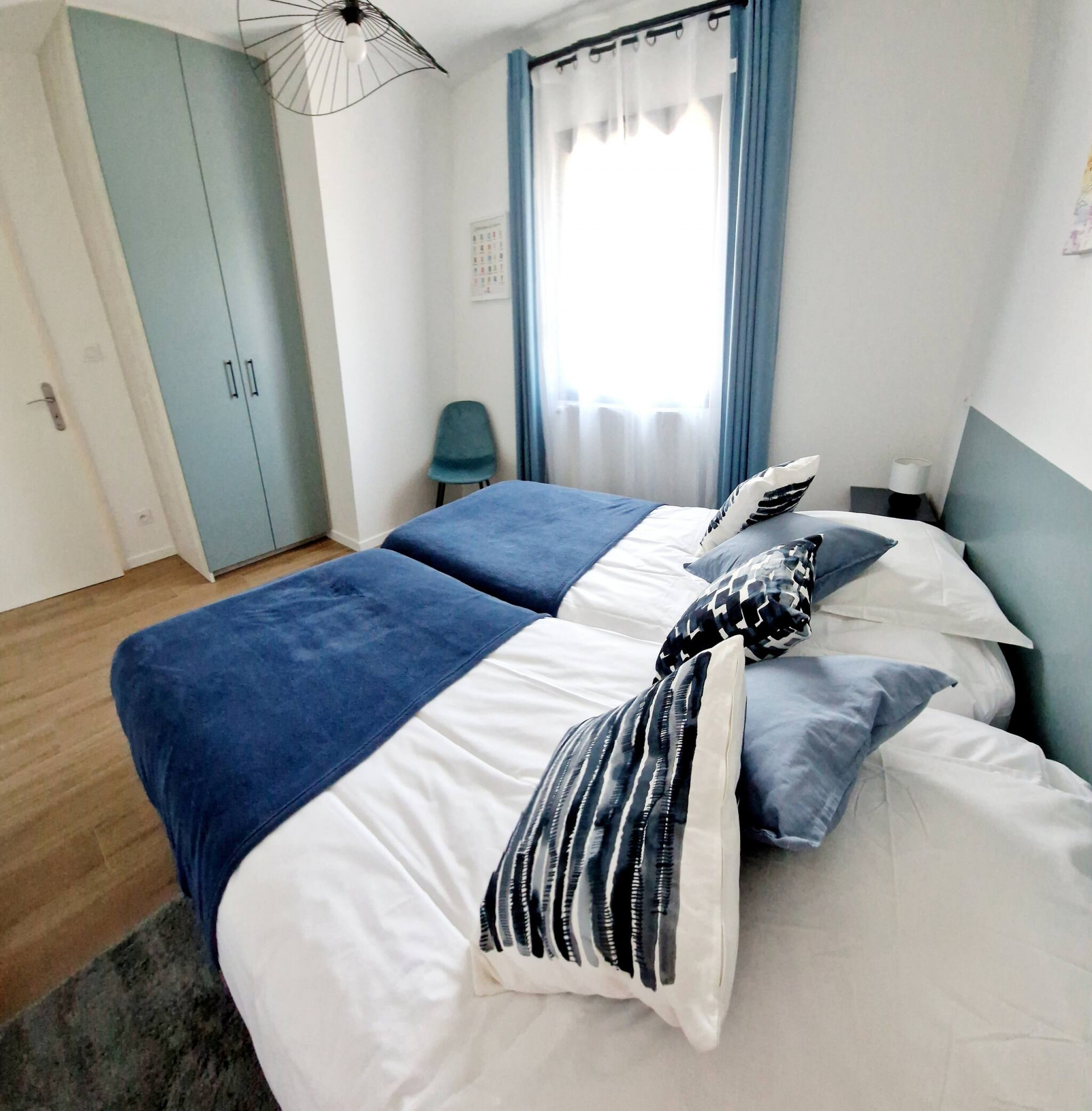 - Dans la seconde chambre, deux lits simples 90 x 200 avec possibilité de jumelage. Placard de rangement.