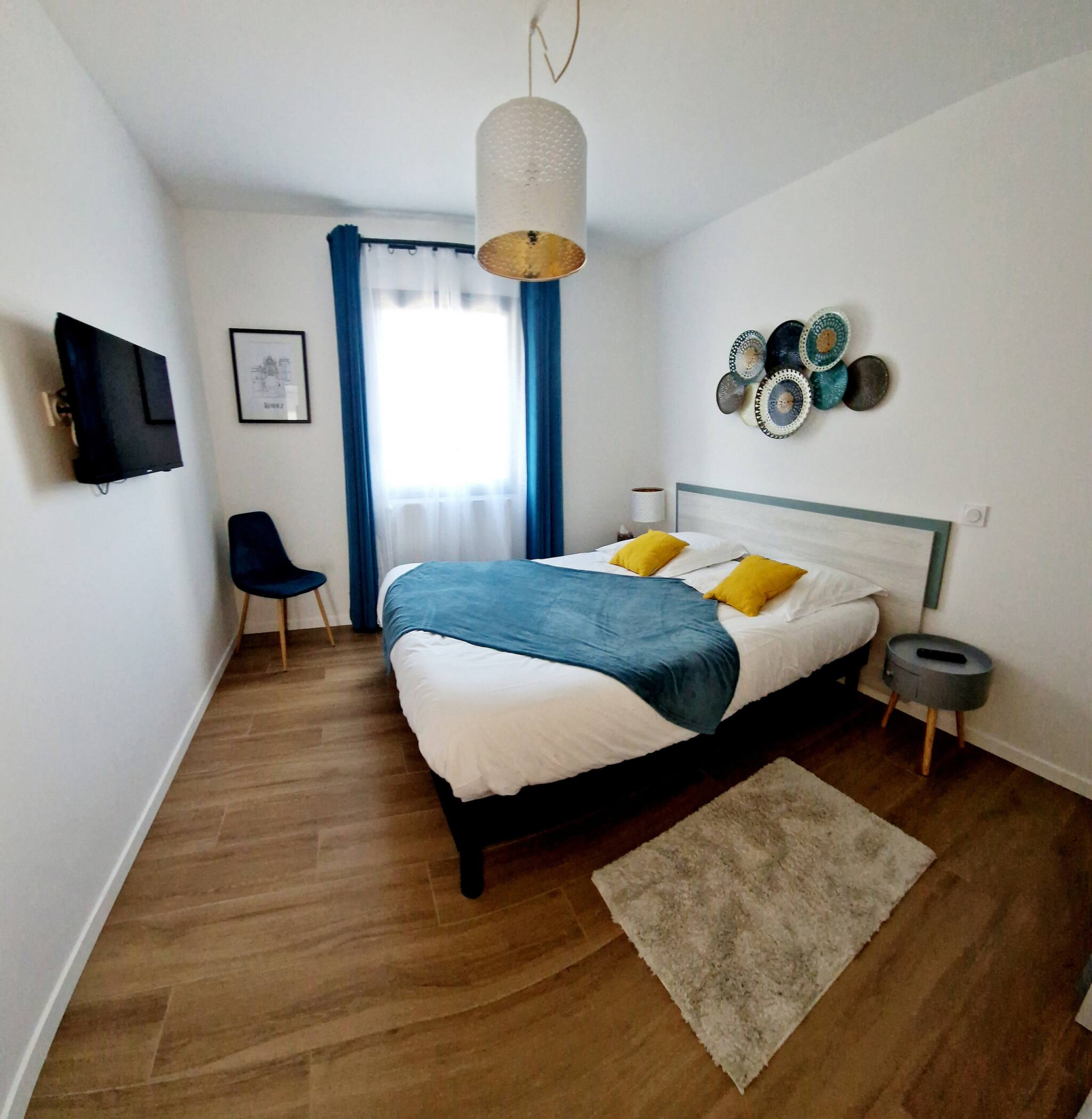 - dans la chambre parentale, un grand lit 160 x 200 et placard de rangement. Tv murale.